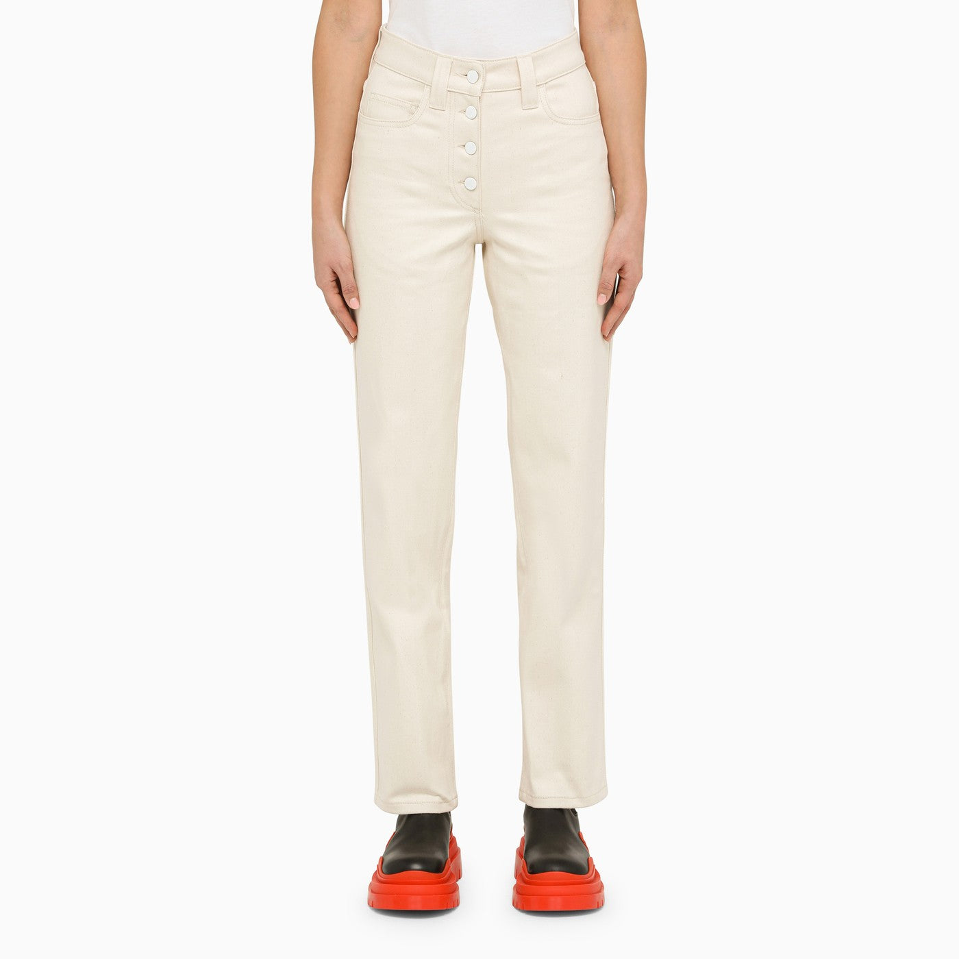 Jeans di Sunnei in Cream Cotton Denim, con una chiusura a bottone anteriore, tre tasche sul davanti e due tasche sul retro.