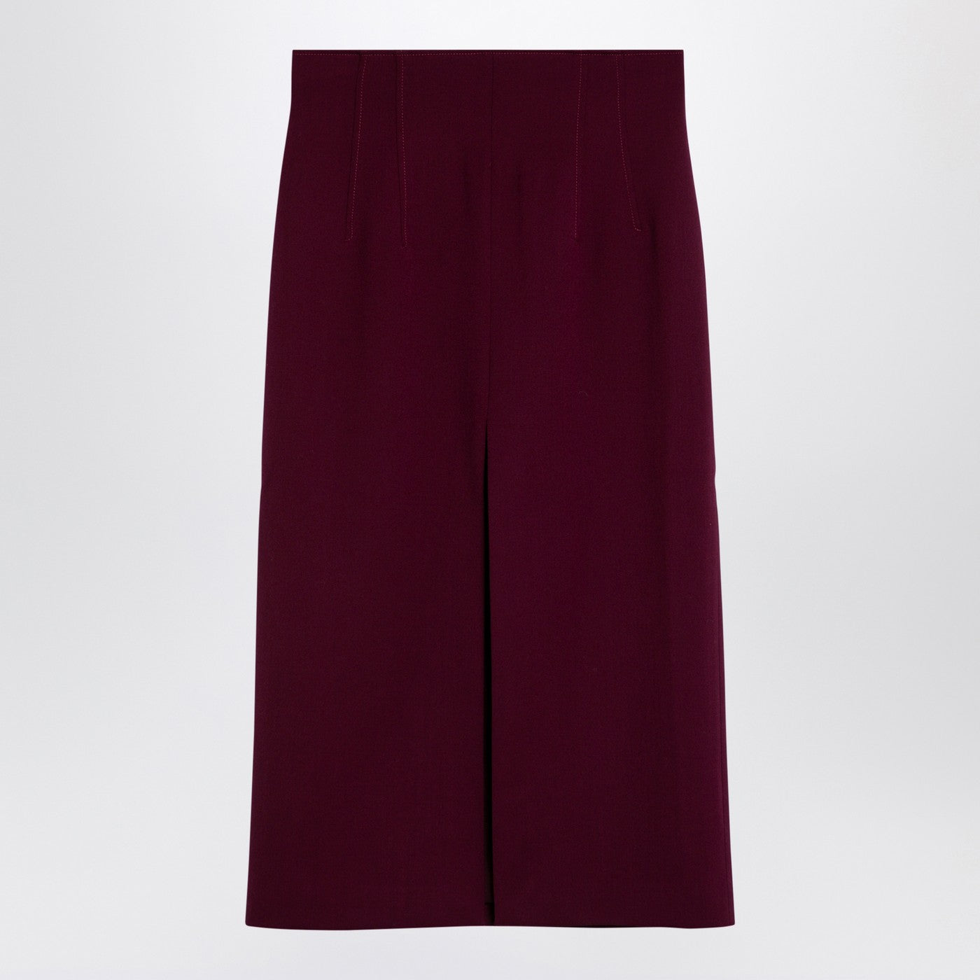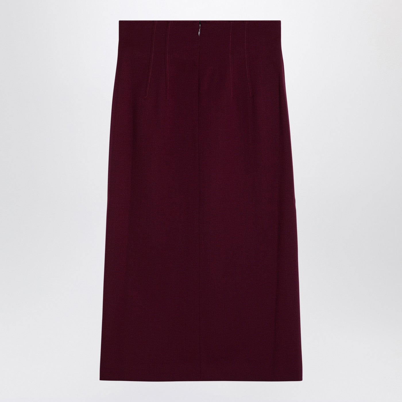 Gonna midi di lana vergine rossa borgogna dell'Andamane con una vita alta, una chiusura a zip posteriore, cuciture tono-su tono e una fessura anteriore.