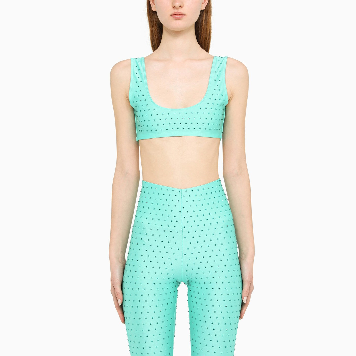 Top corto color Tiffany dall'Andamano con cristalli all-over e adattamento.