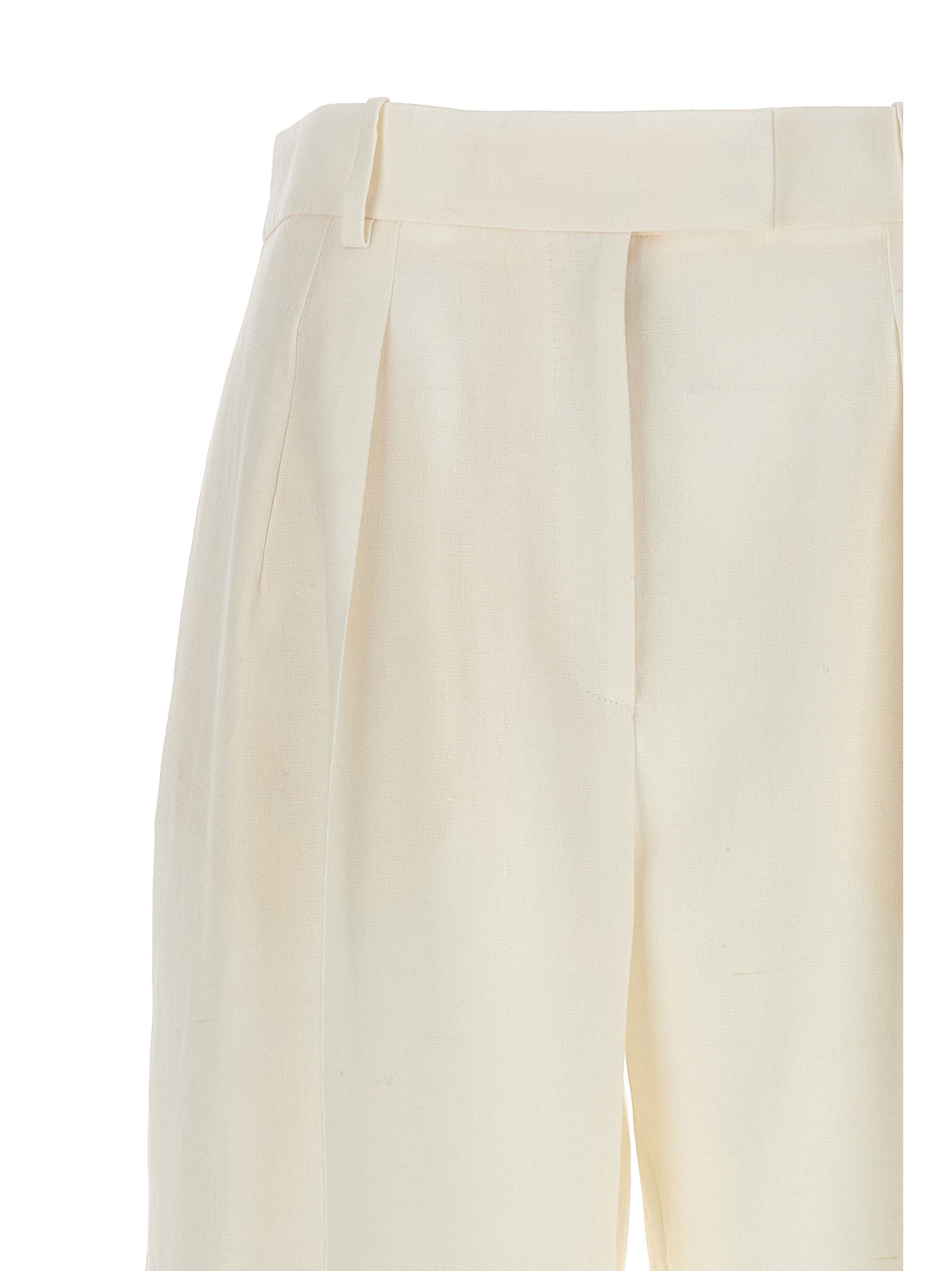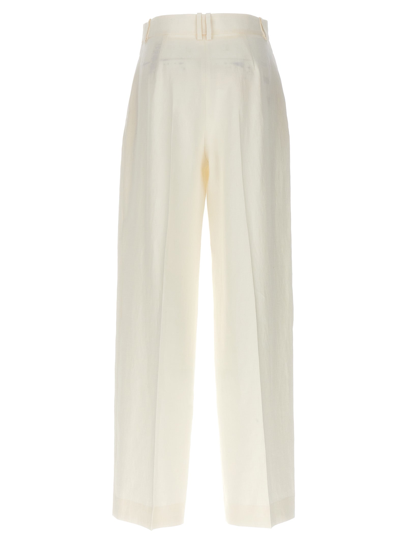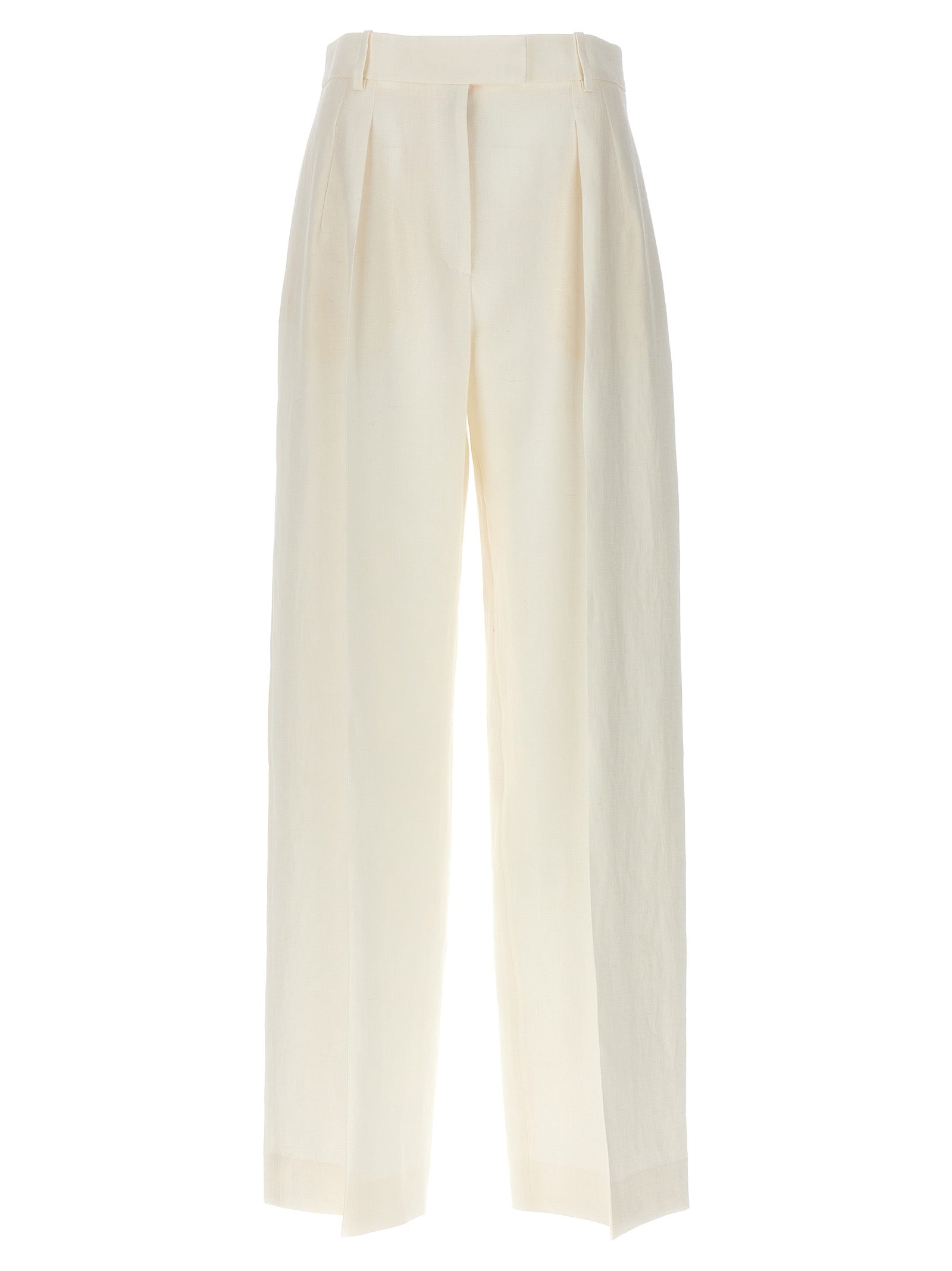 Pantaloni di lino pieghettati a vita alta "Antone", gamba dritta e larga con piega pressata centrale.