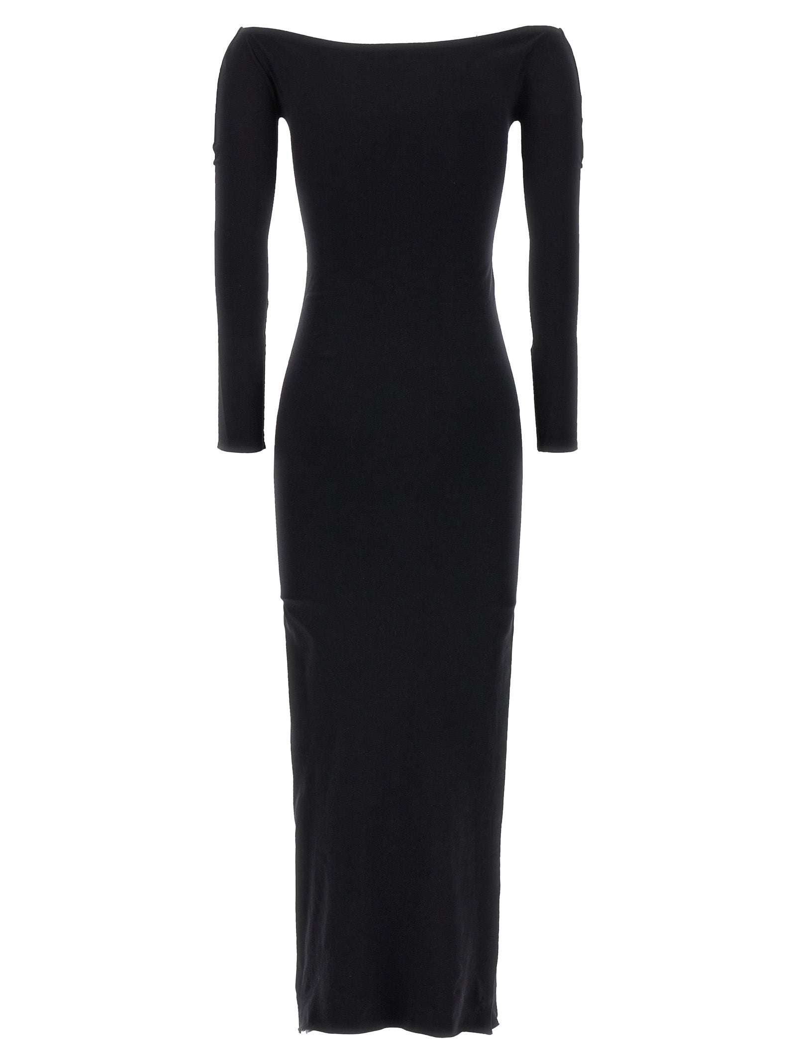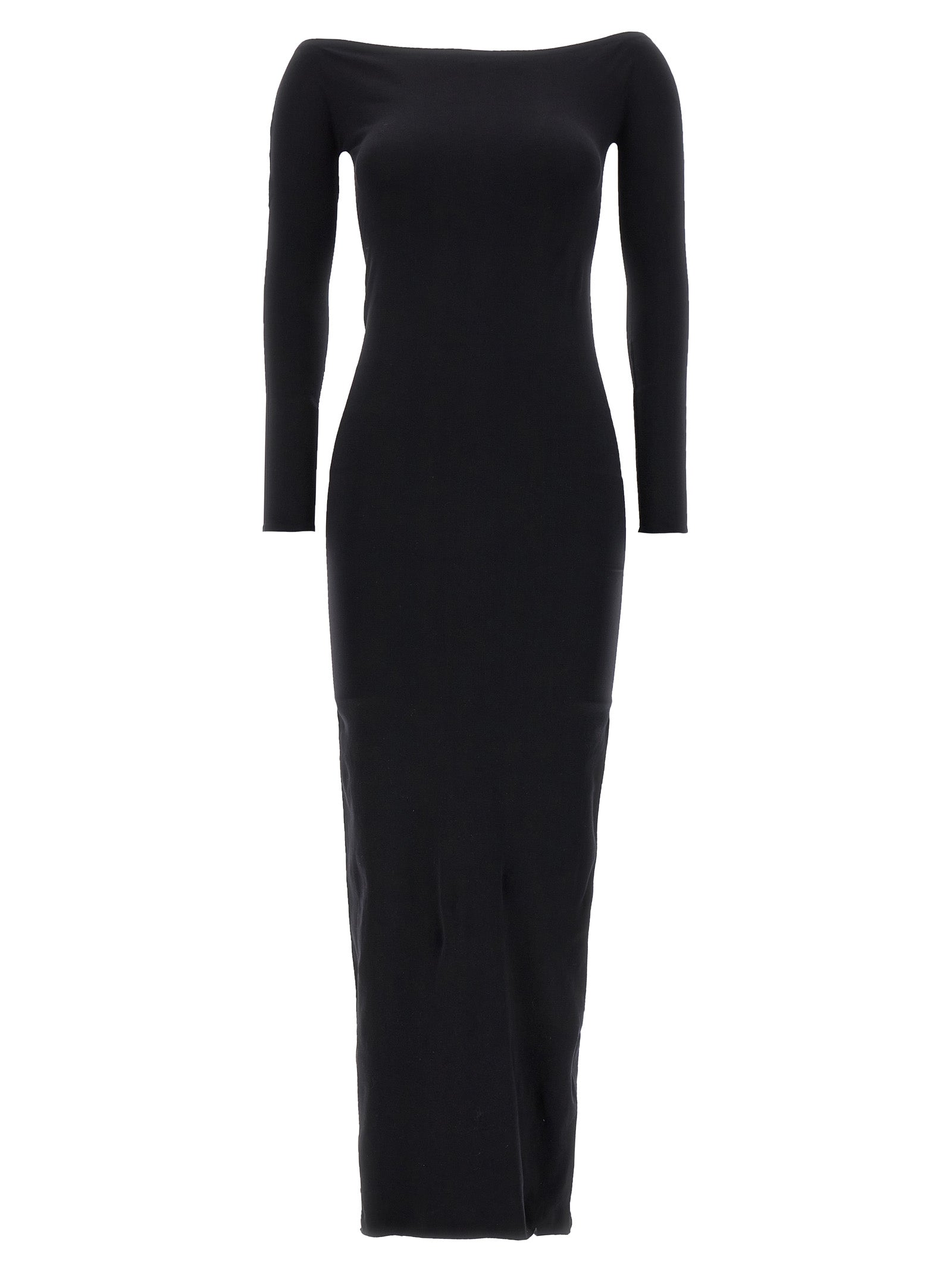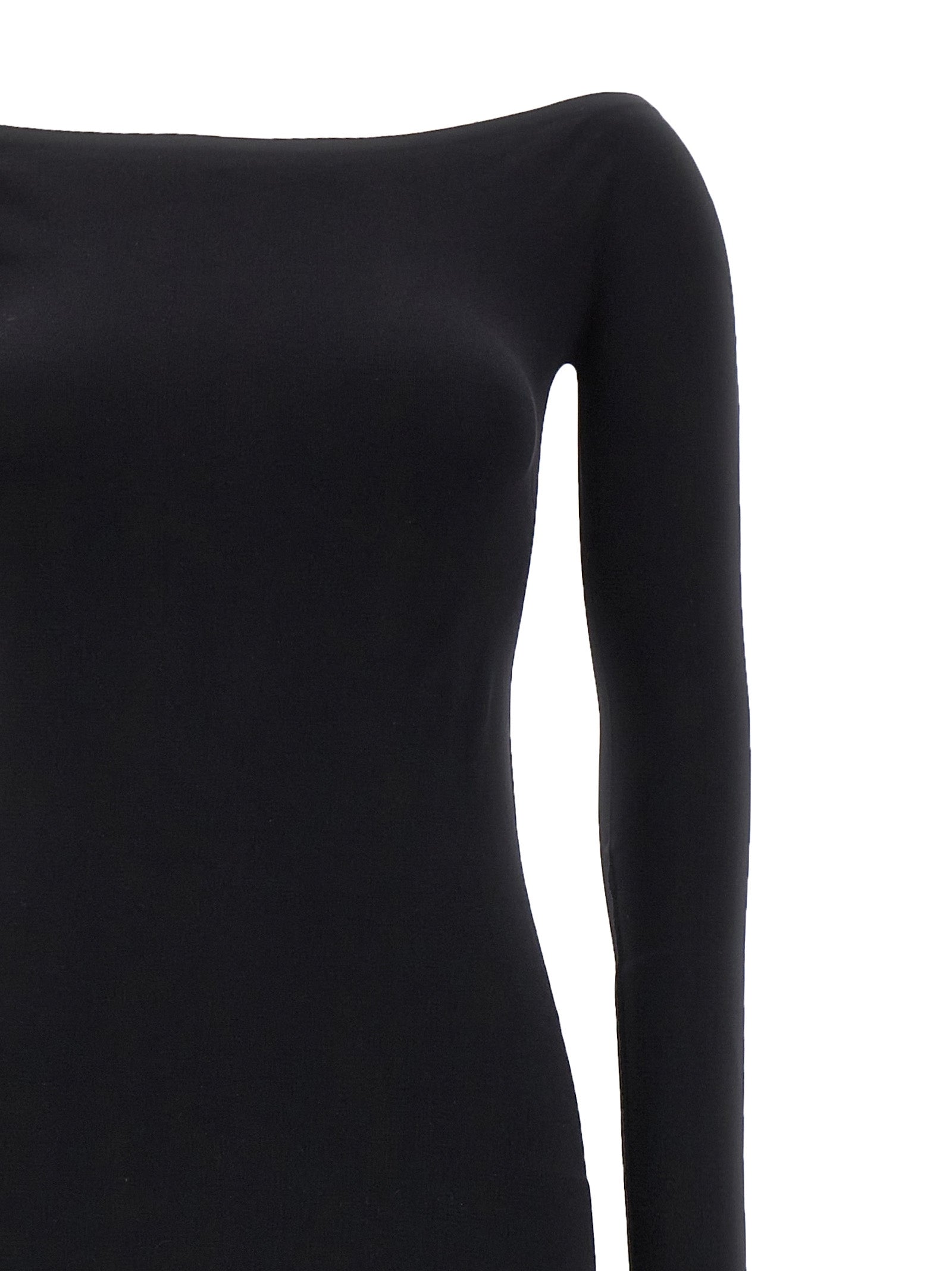 Abito in tessuto essorgia Curitiba 'con scollatura in barca, maniche lunghe e un orlo tagliato laser.
