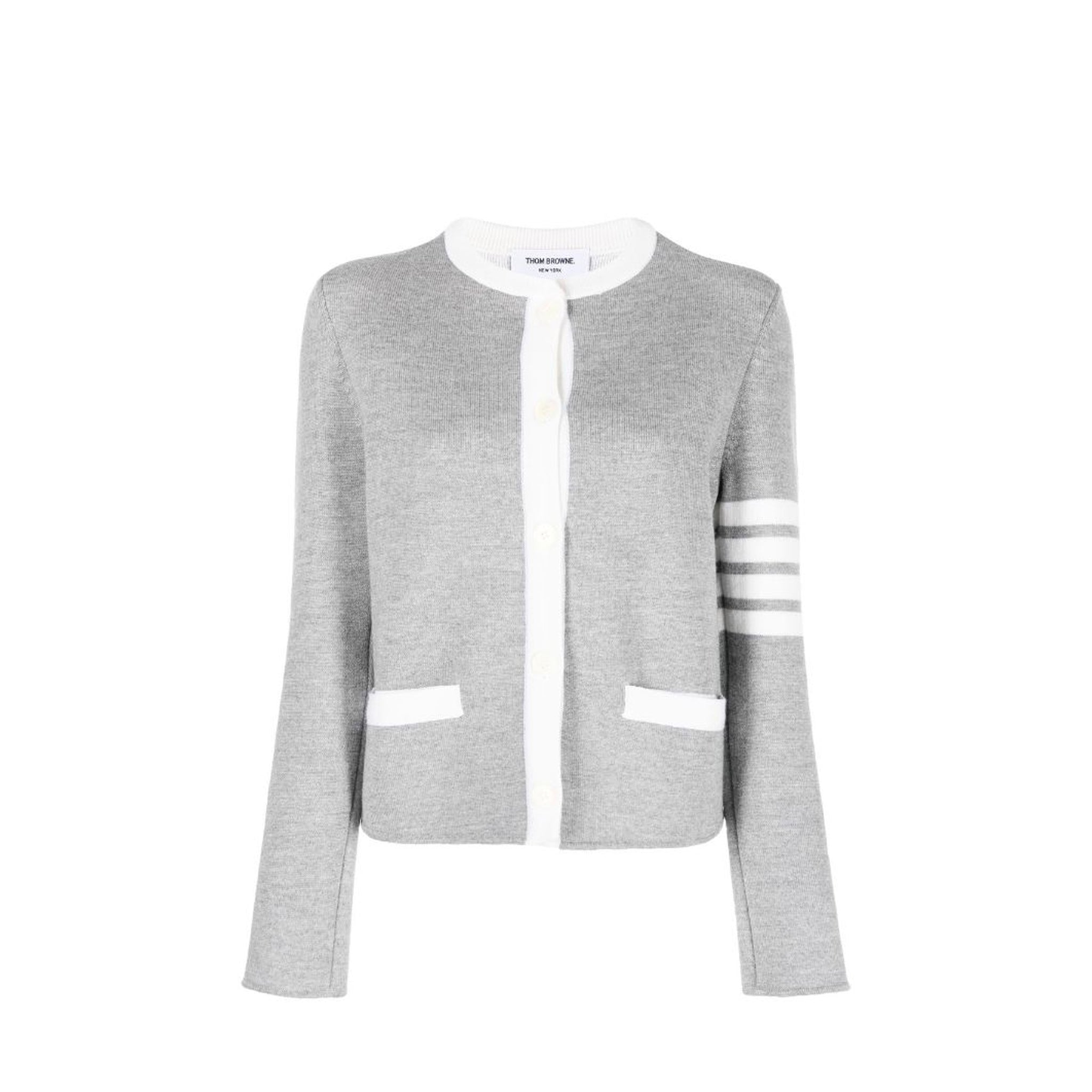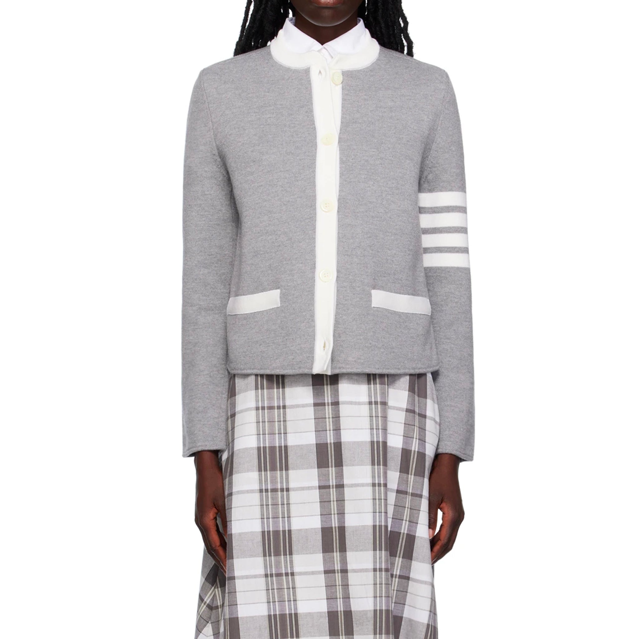 Subversive tailoring and precise proportions—grey suiting, four-bar stripes, and playful preppy codes since 2001.