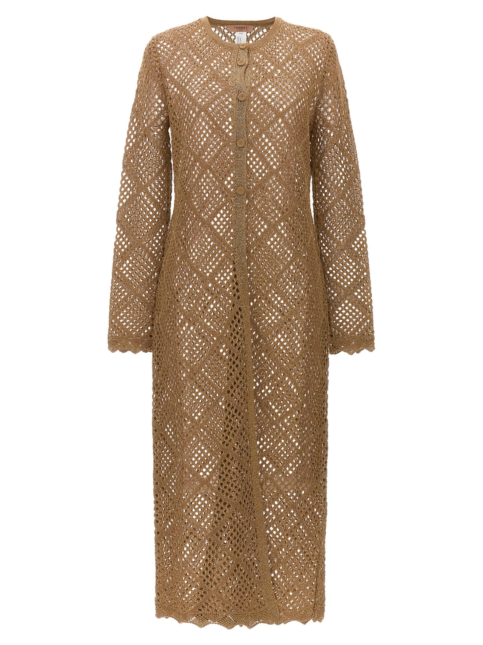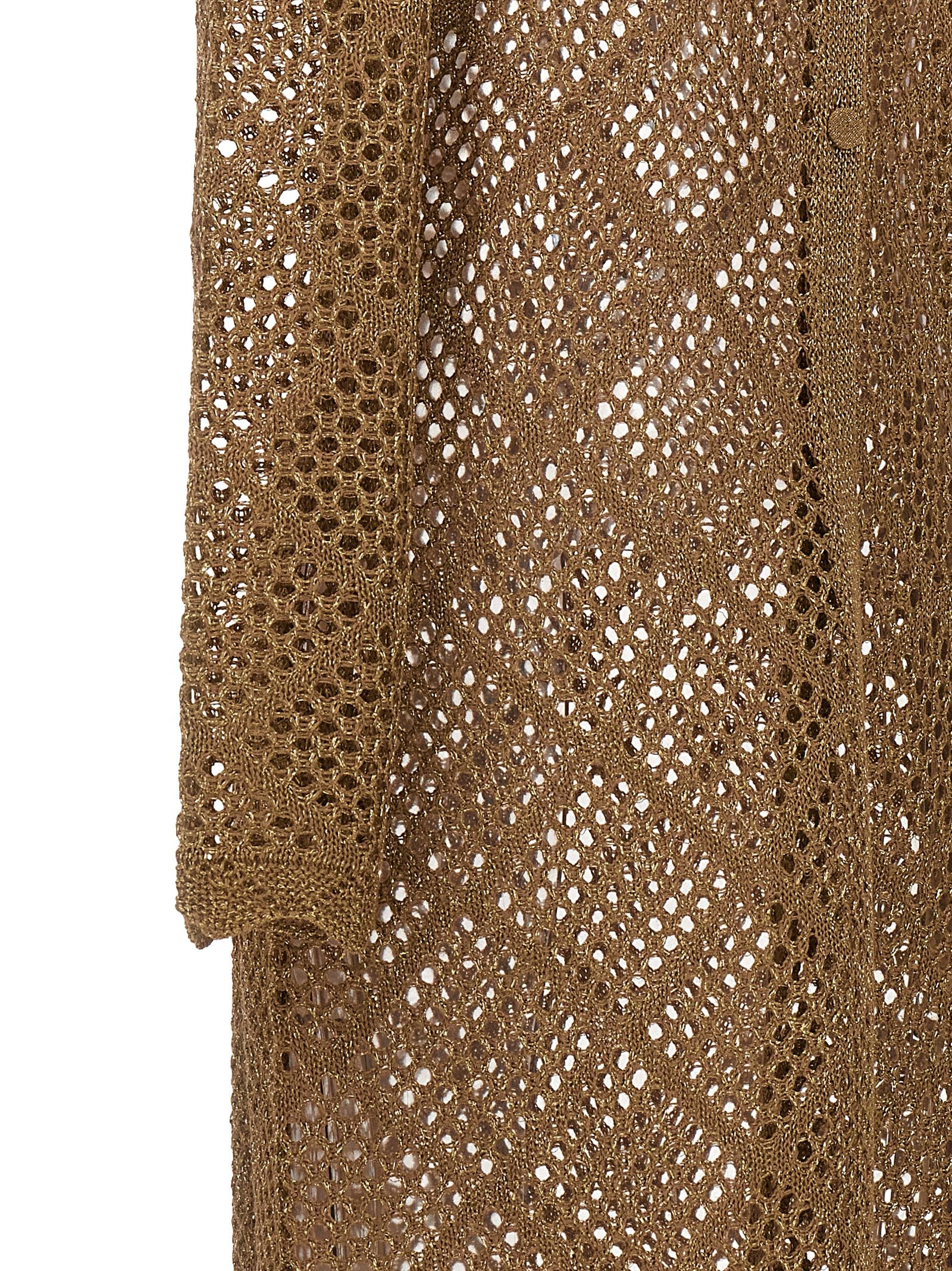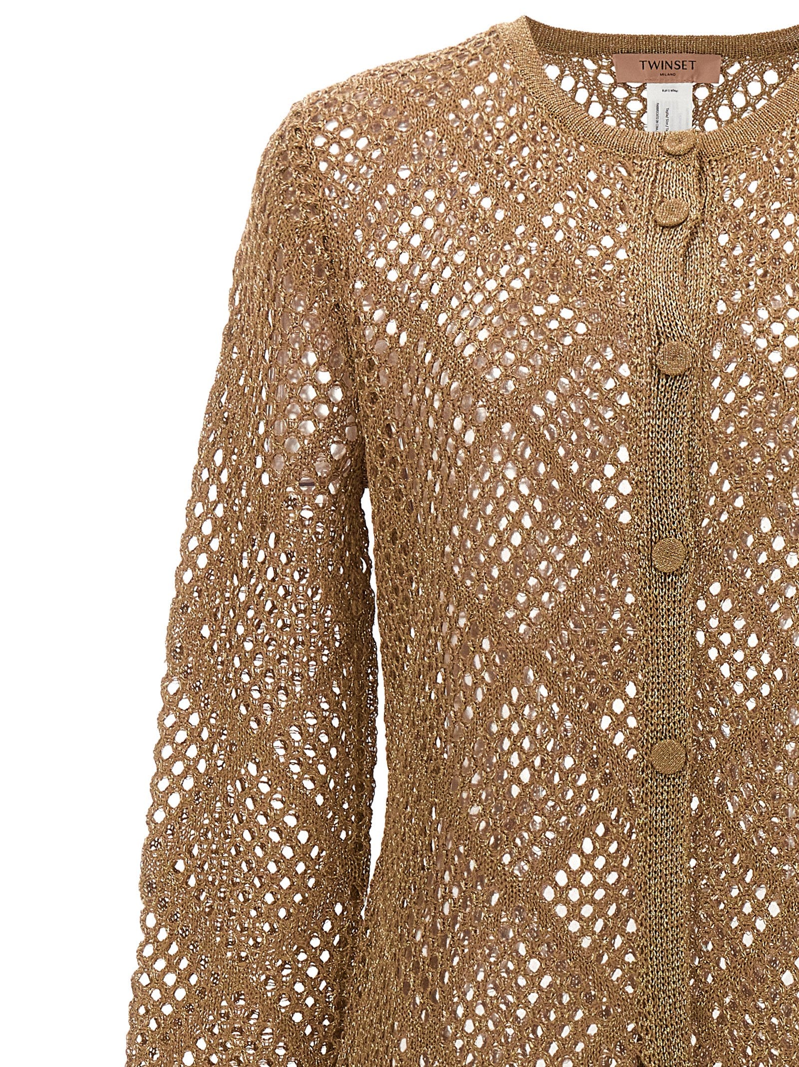 Cardigan a maglia a larghezza lunga con chiusura di Lurex e pulsanti.