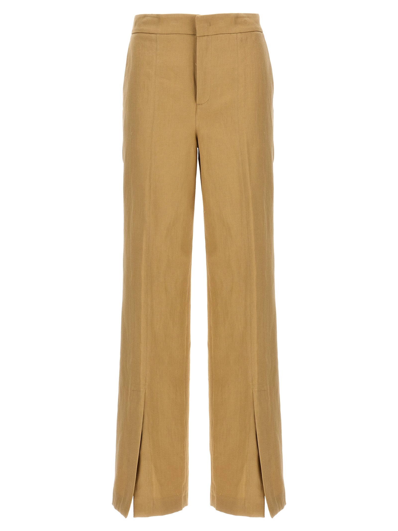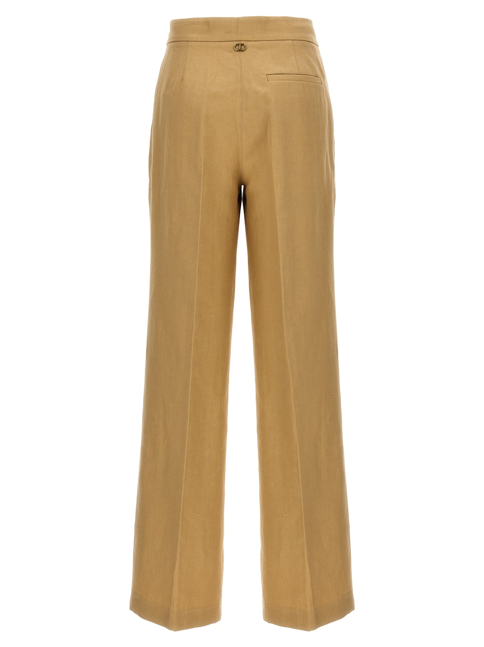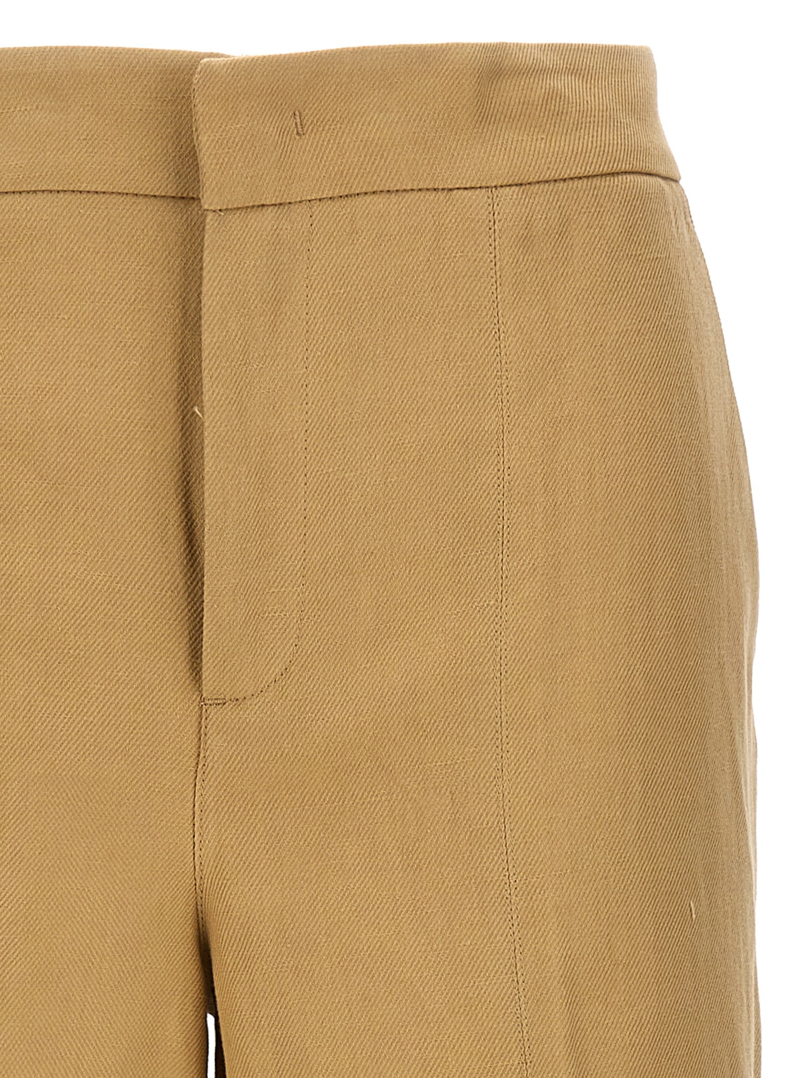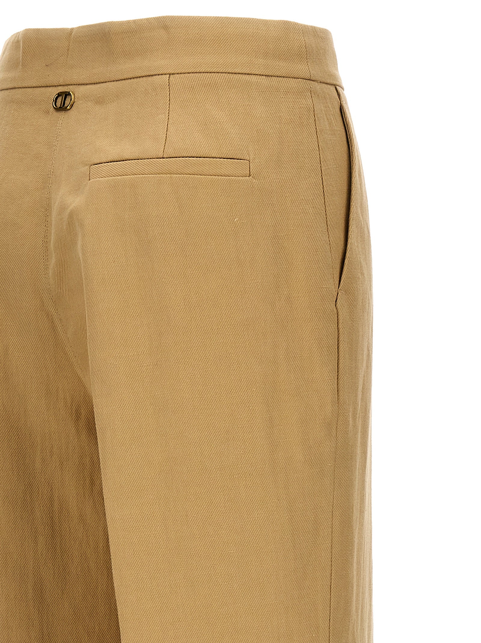 Eleganti pantaloni in cotone germogliato con gamba larga con piega centrale.