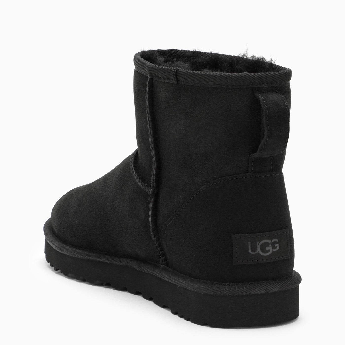 Lo stivale alla caviglia in pelle scamosciata nera di UGG con pelle di pecora e tomaia in pelle scamosciata, punta rotonda, pelle di pecora e suola di tapdala da UGG. Altezza del avvio: 13,97 cm.