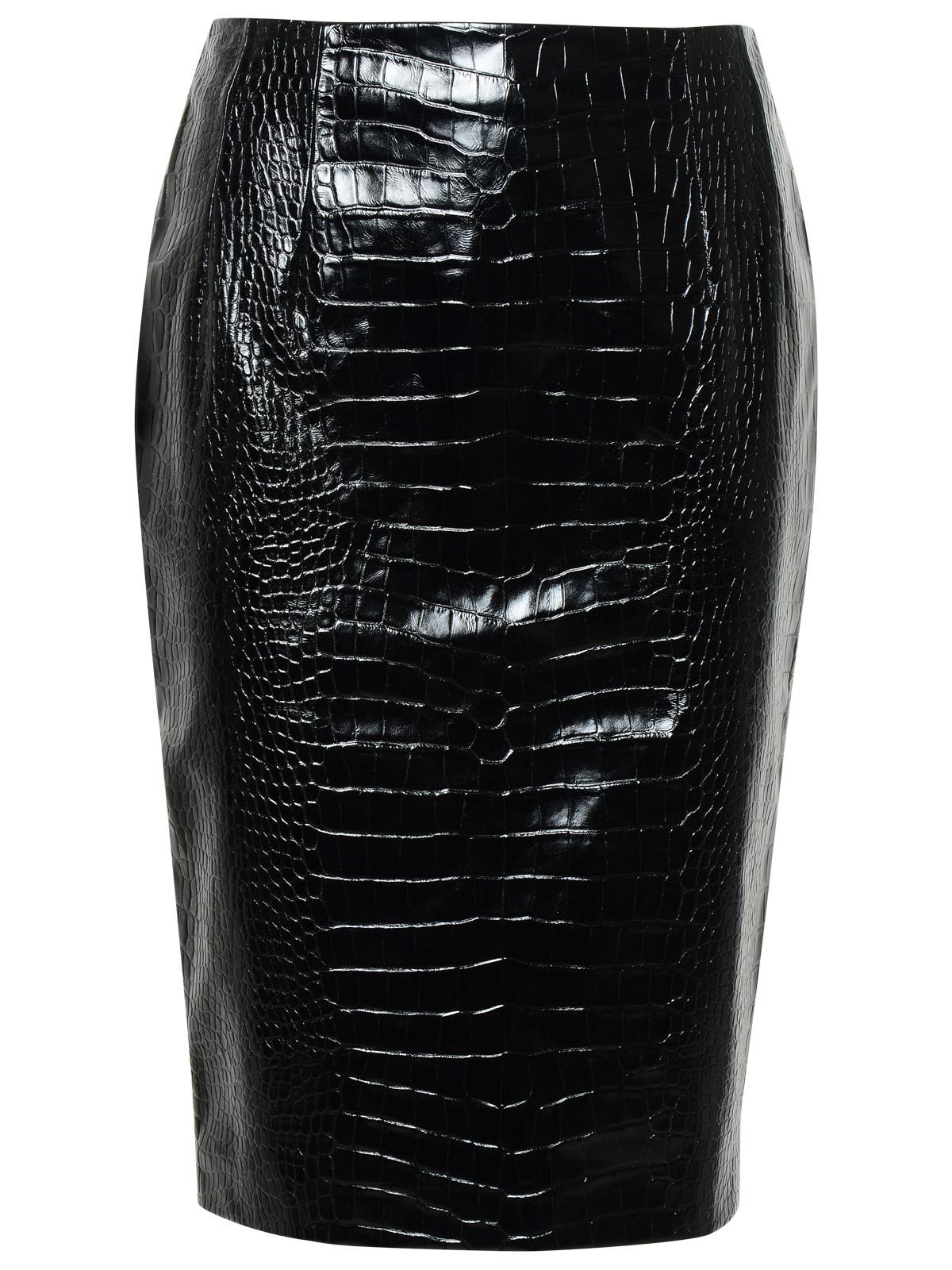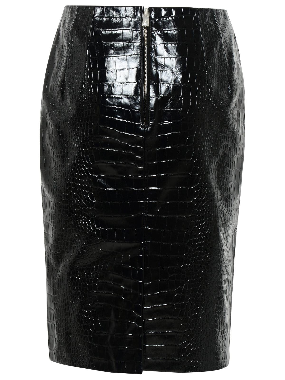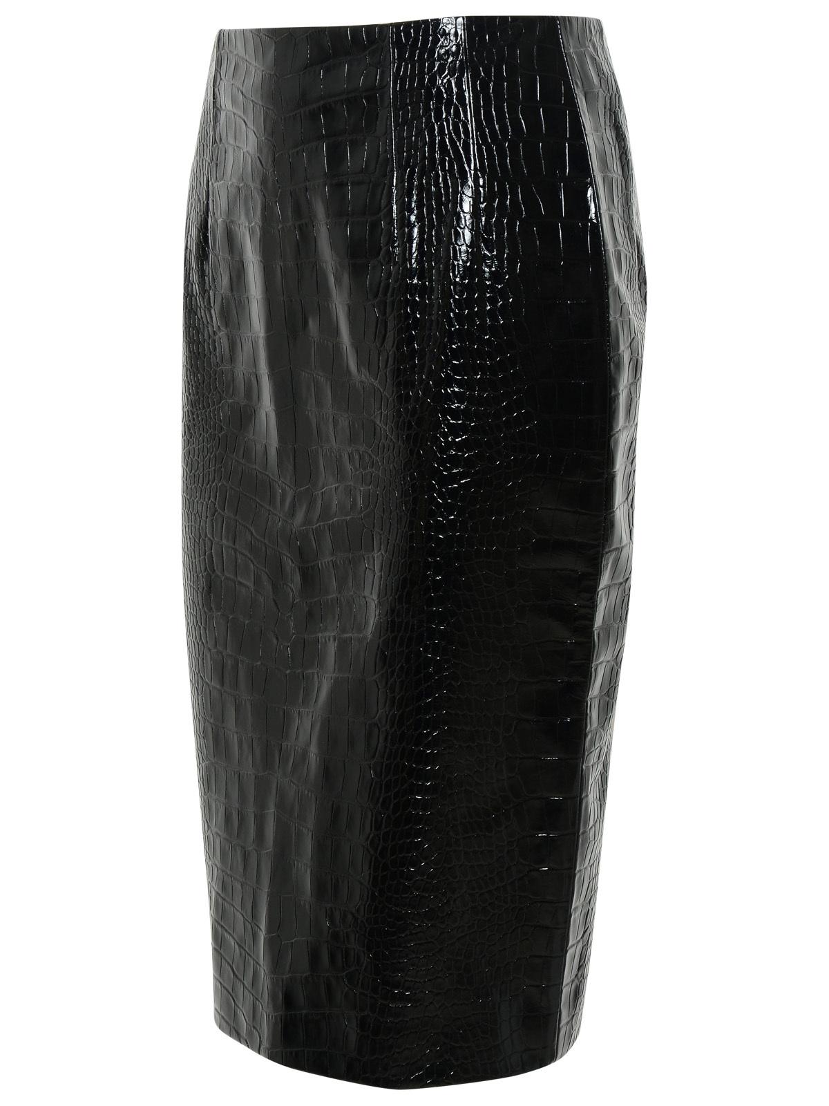 Gonna midi in pelle con effetto crocimmessato, vita alta, chiusura a zip posteriore, sfiato centrale sull'orlo.
