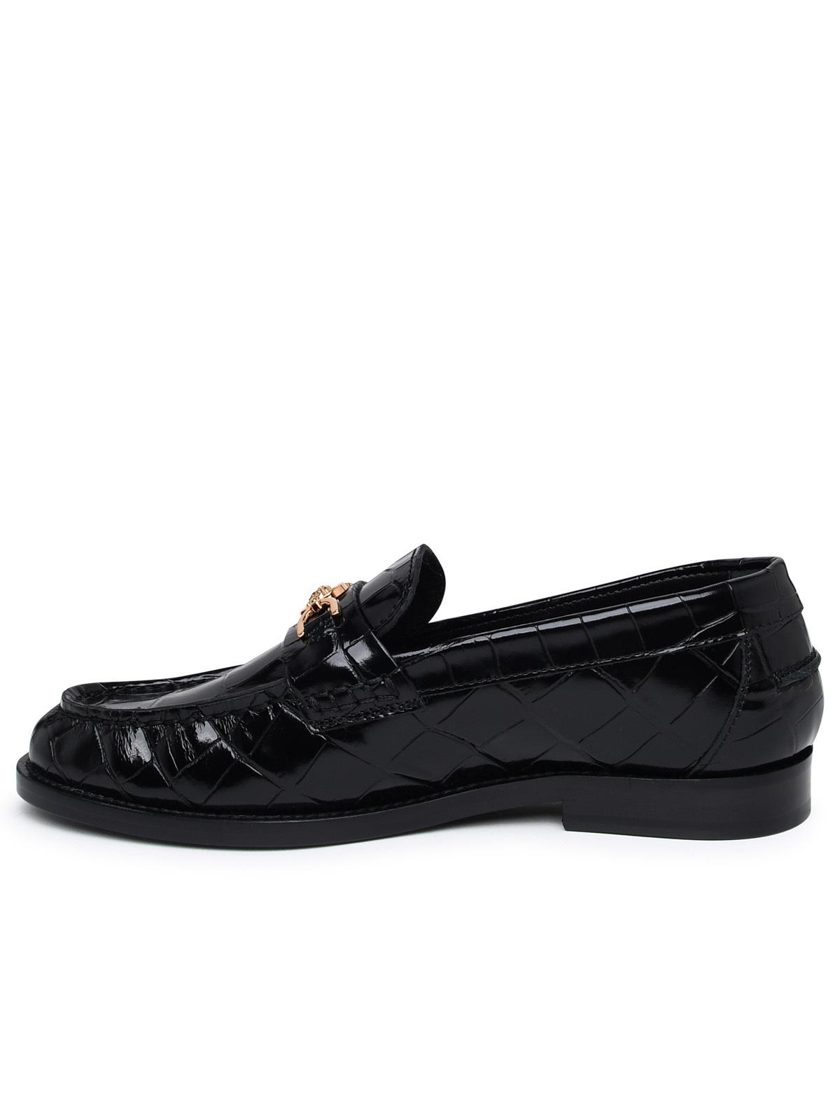 Mocassini in pelle di brevetto effetto coccodrillo, cinturino anteriore con dettaglio "Medusa" 95 ", tallone piatto, suola in pelle