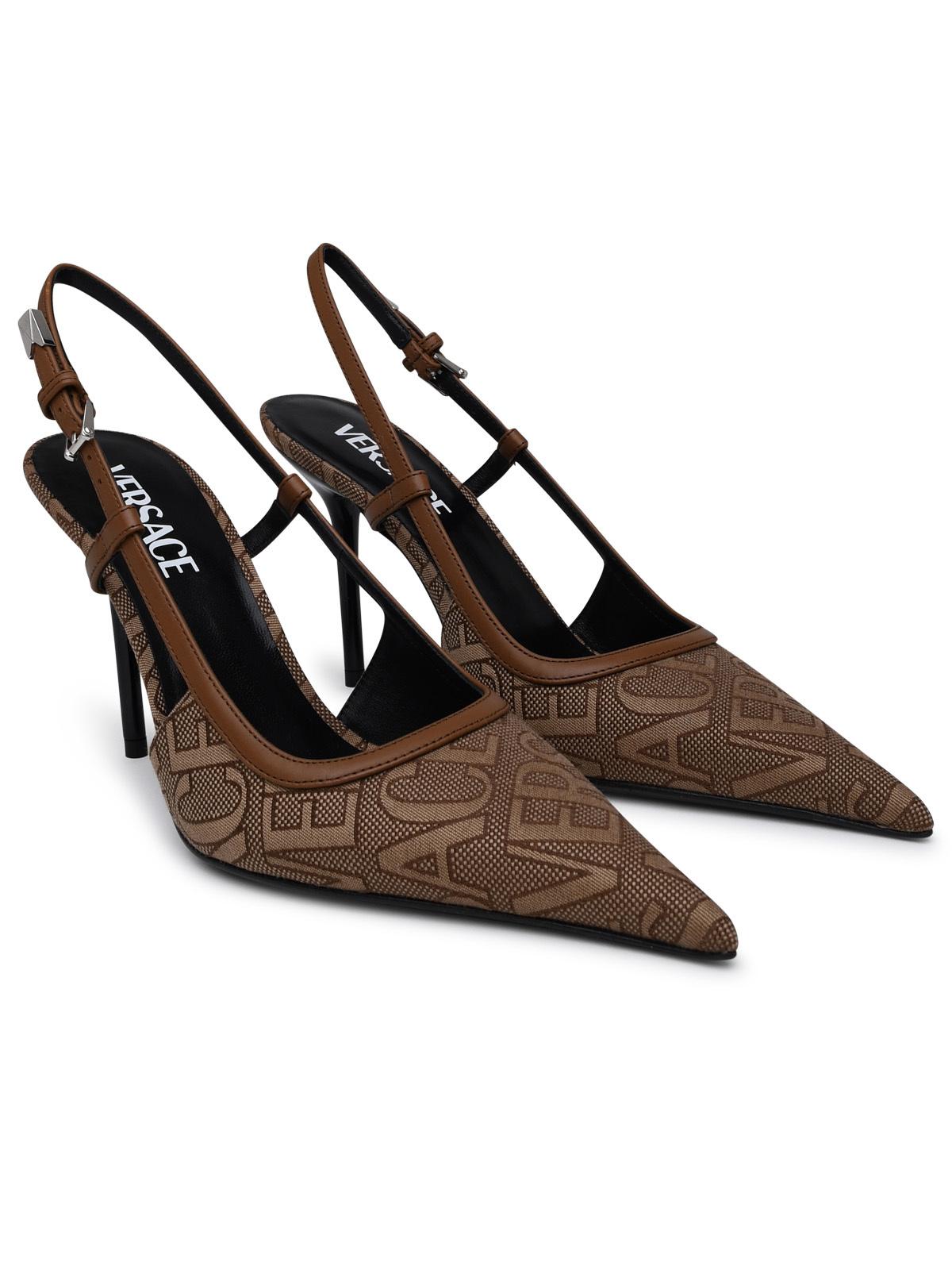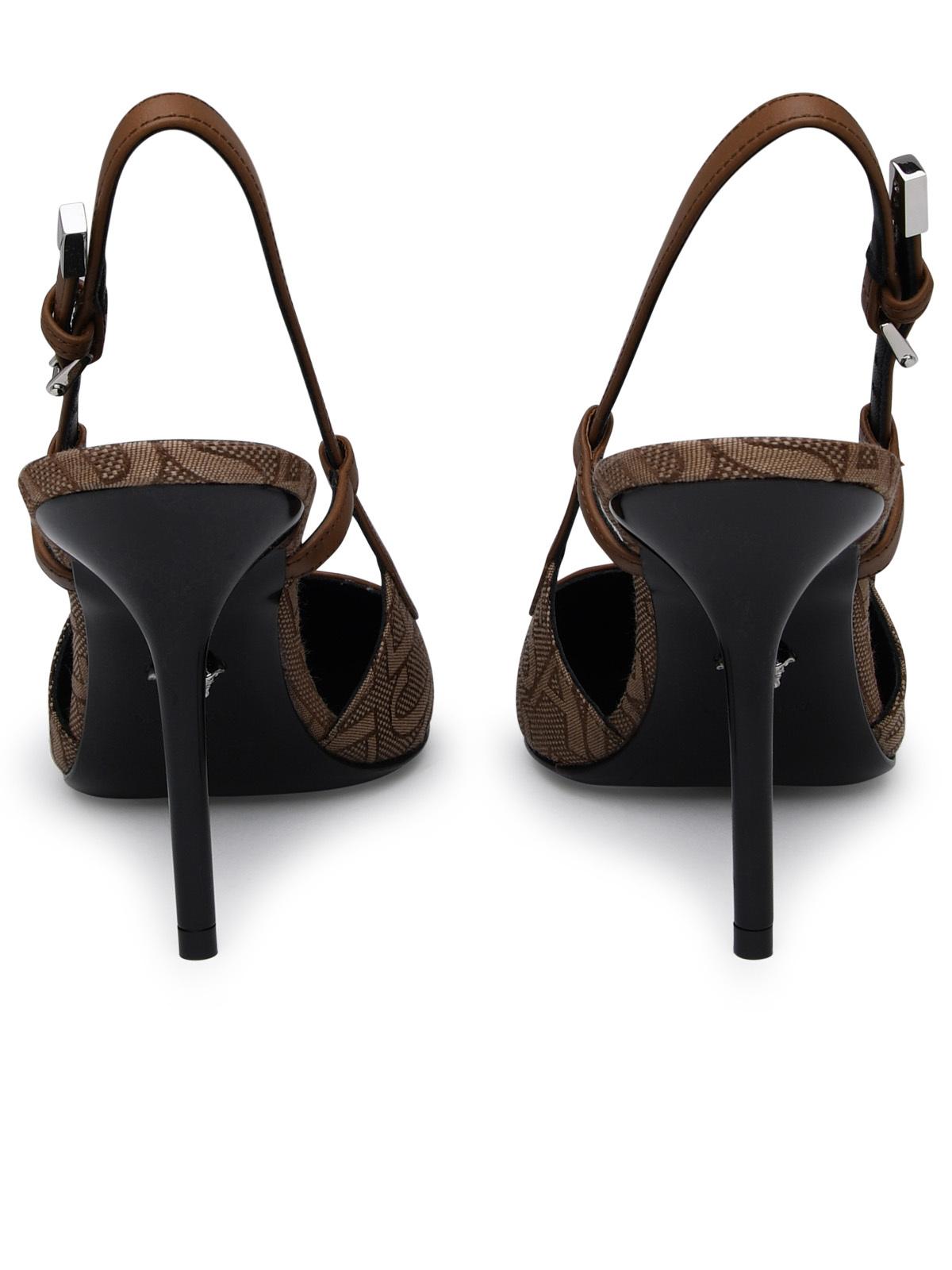 Punta allungata, Versace su tutto il logo Stampa, cinghia sulla caviglia con fibbia regolabile, logo stampato sotto il piede, Appliqué Medusa sulla suola \ nheel altezza 9,5 cm
