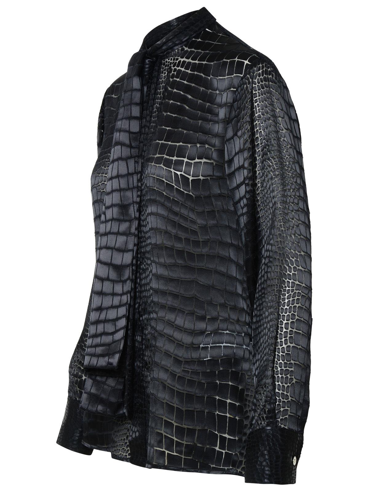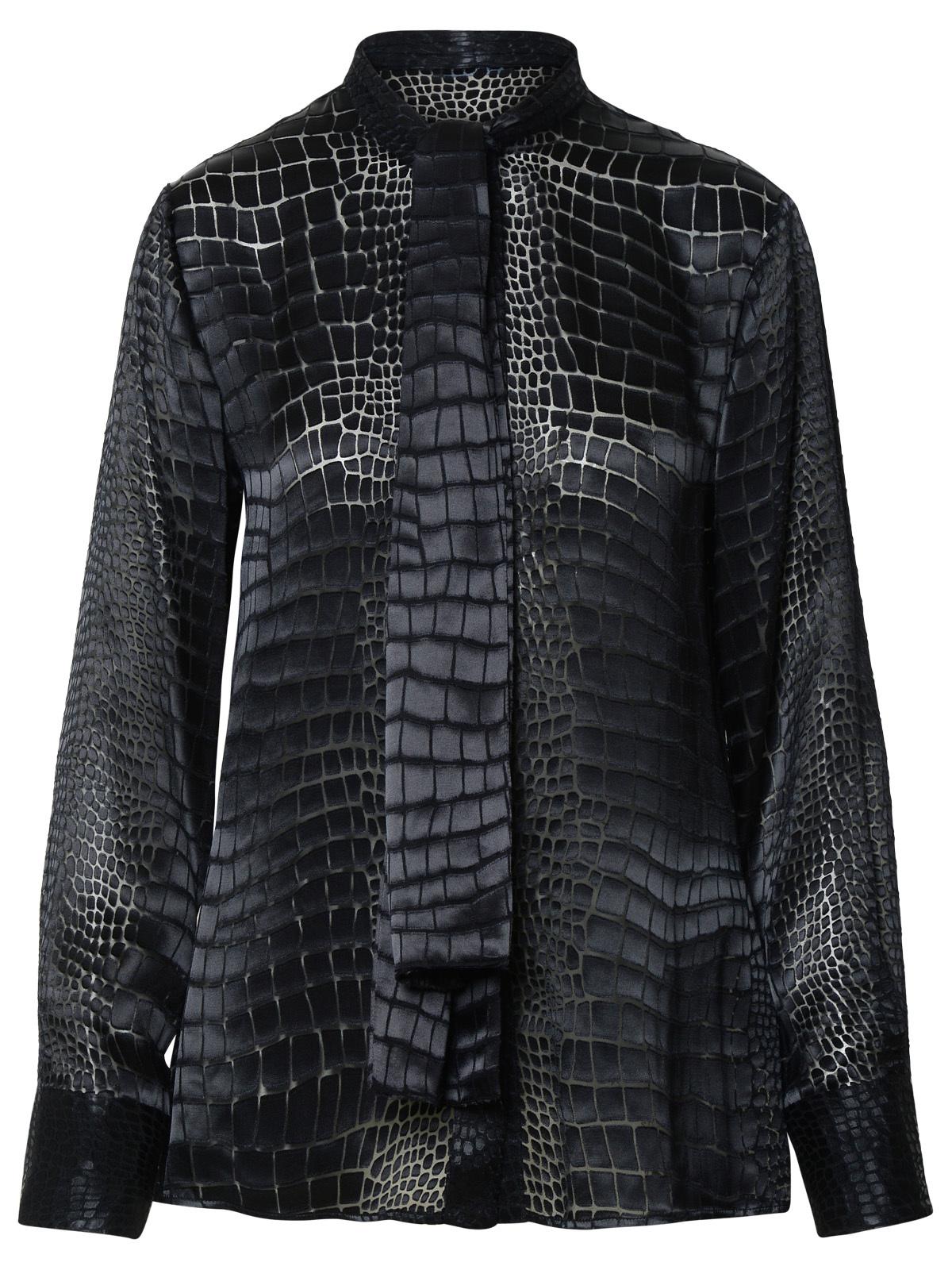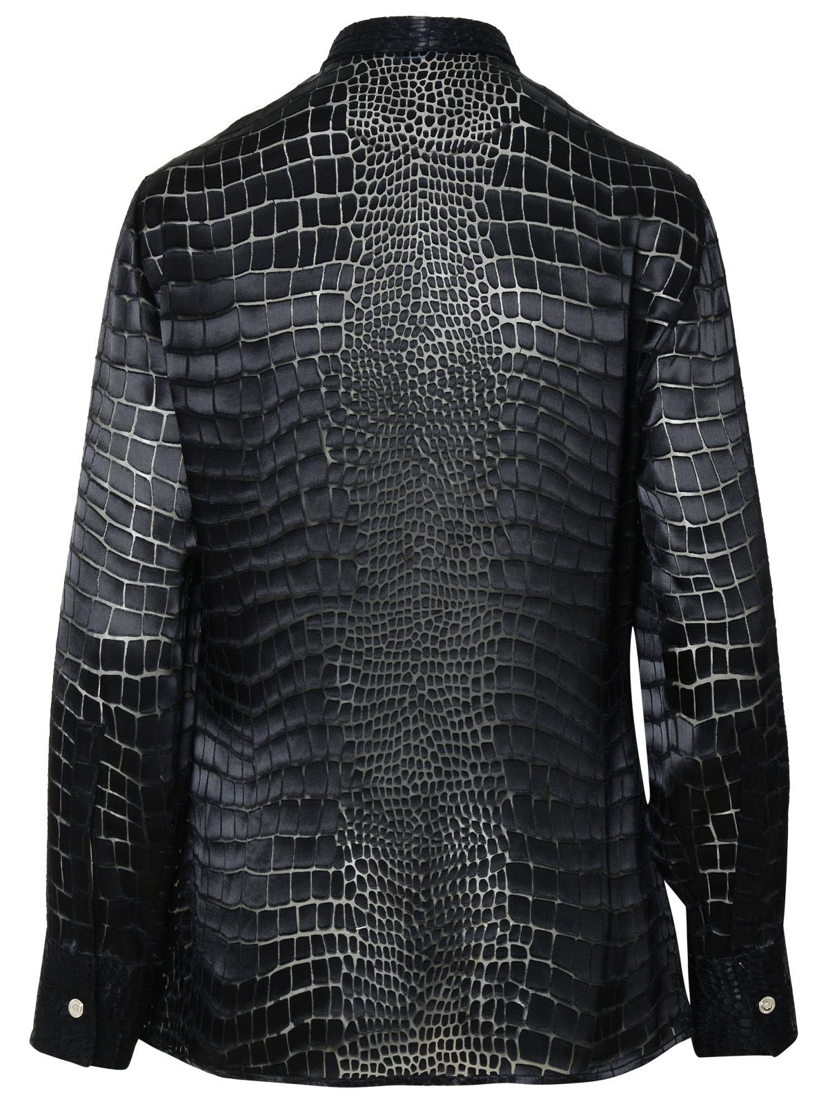 Versace 'Croco' Shirt di miscela di seta nera