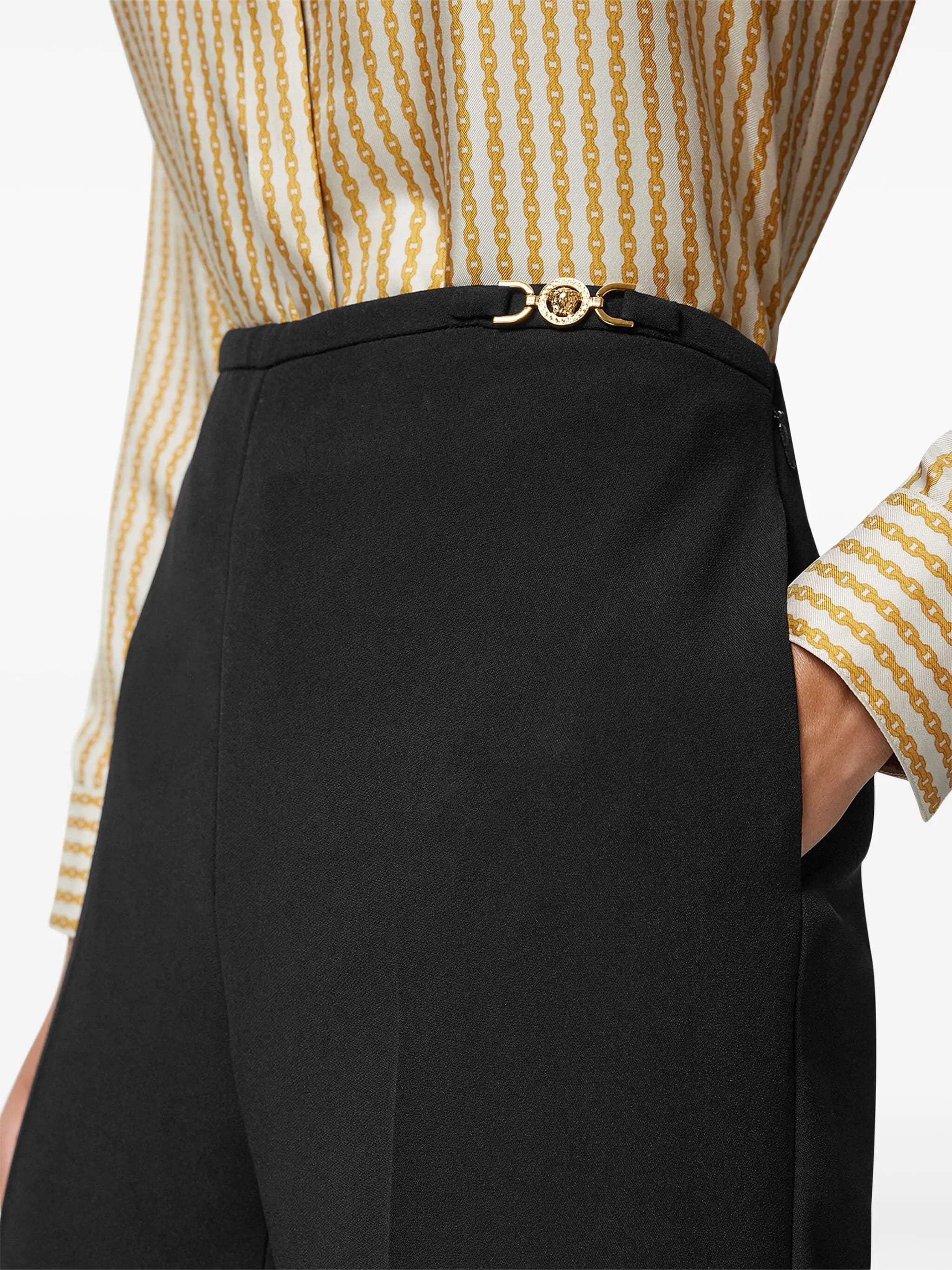 Questi pantaloni a gamba larga a doppia cady offrono una vestibilità elegante e confortevole. L'hardware in vita Medusa `95 aggiunge un tocco distintivo, mentre la chiusura della zip laterale e le tasche tagliate completano il design sofisticato.
