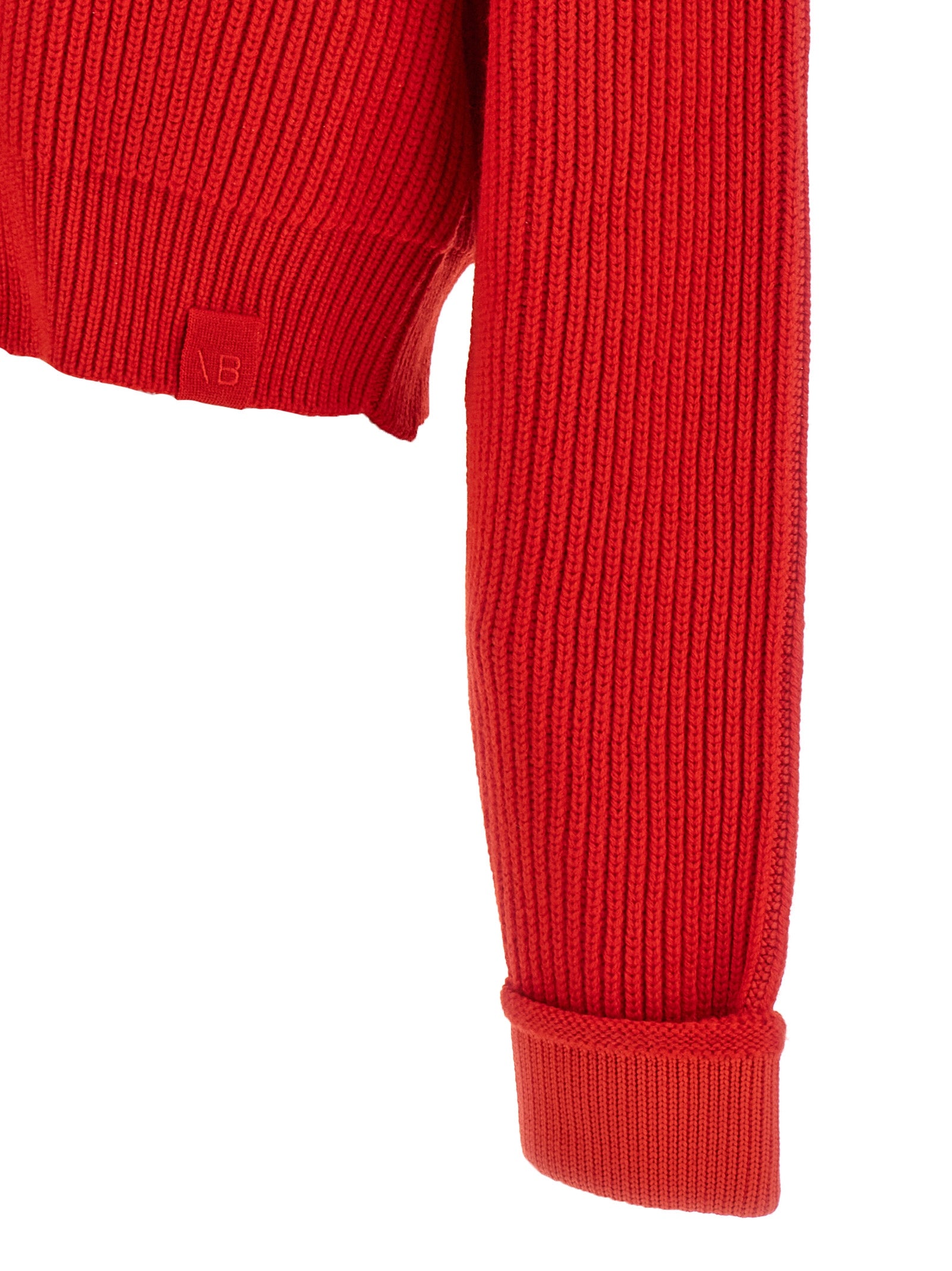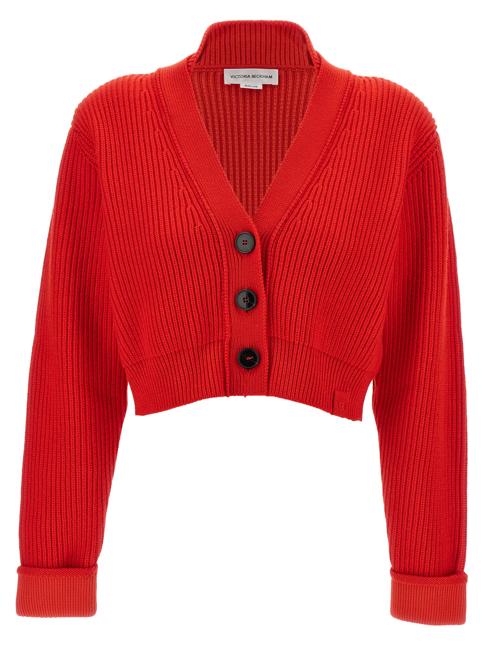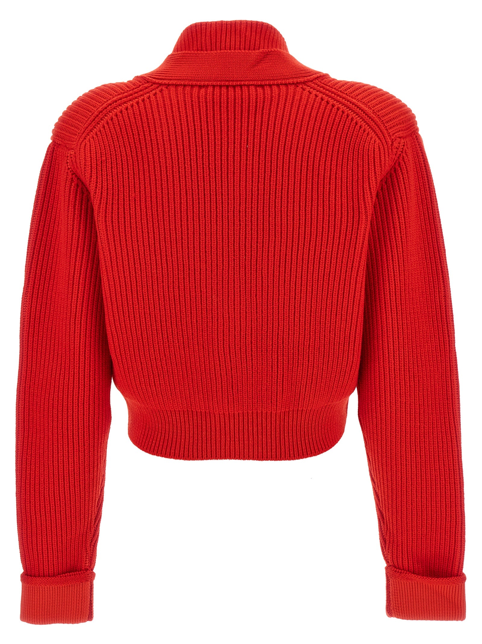 Cardigan con miscela di lana ritagliata con chiusura di bottoni, spalle imbottite, maniche cantaccanti lunghe.