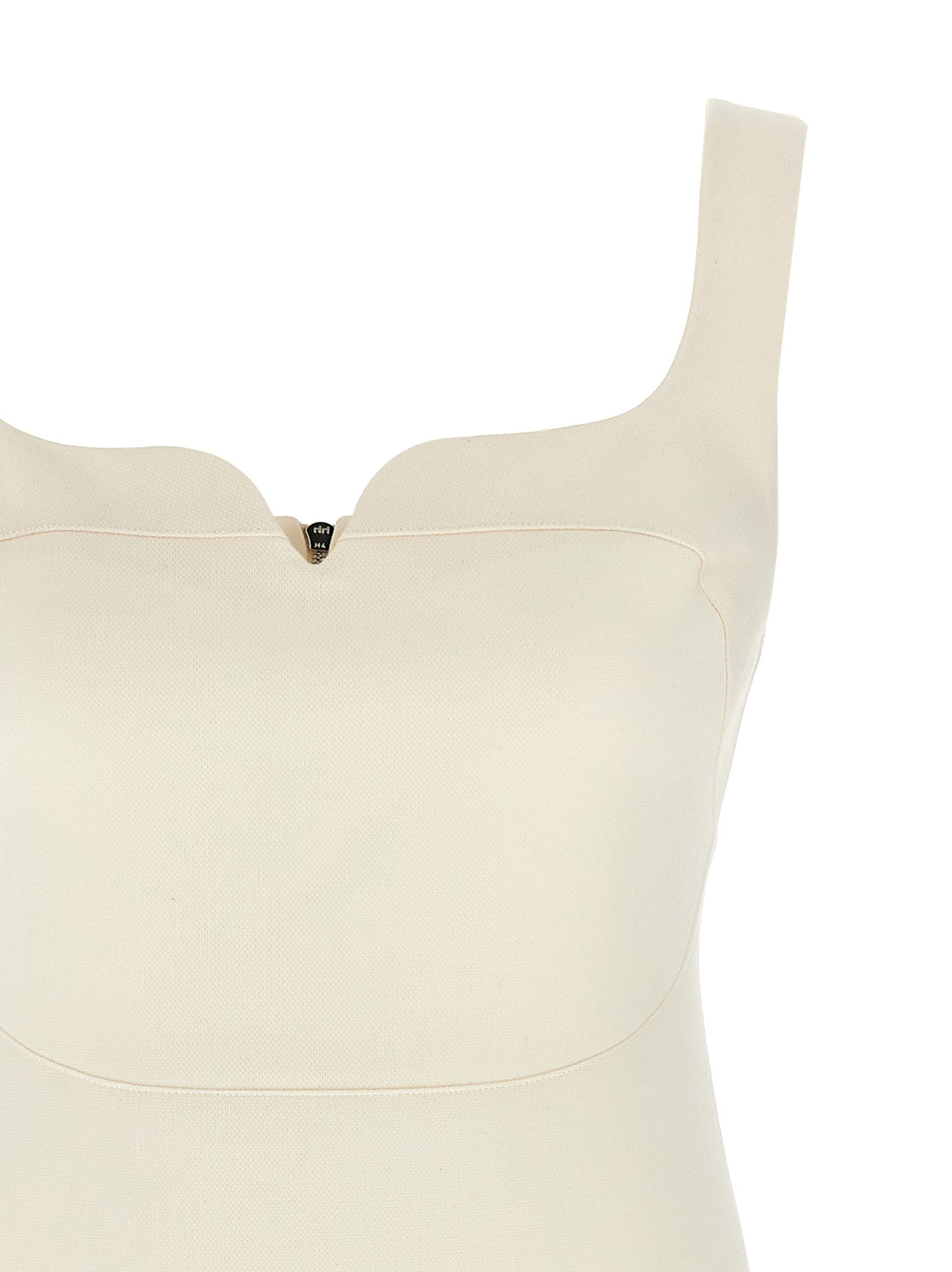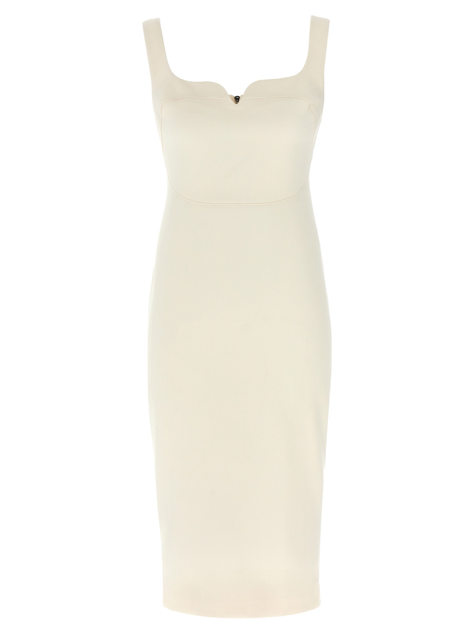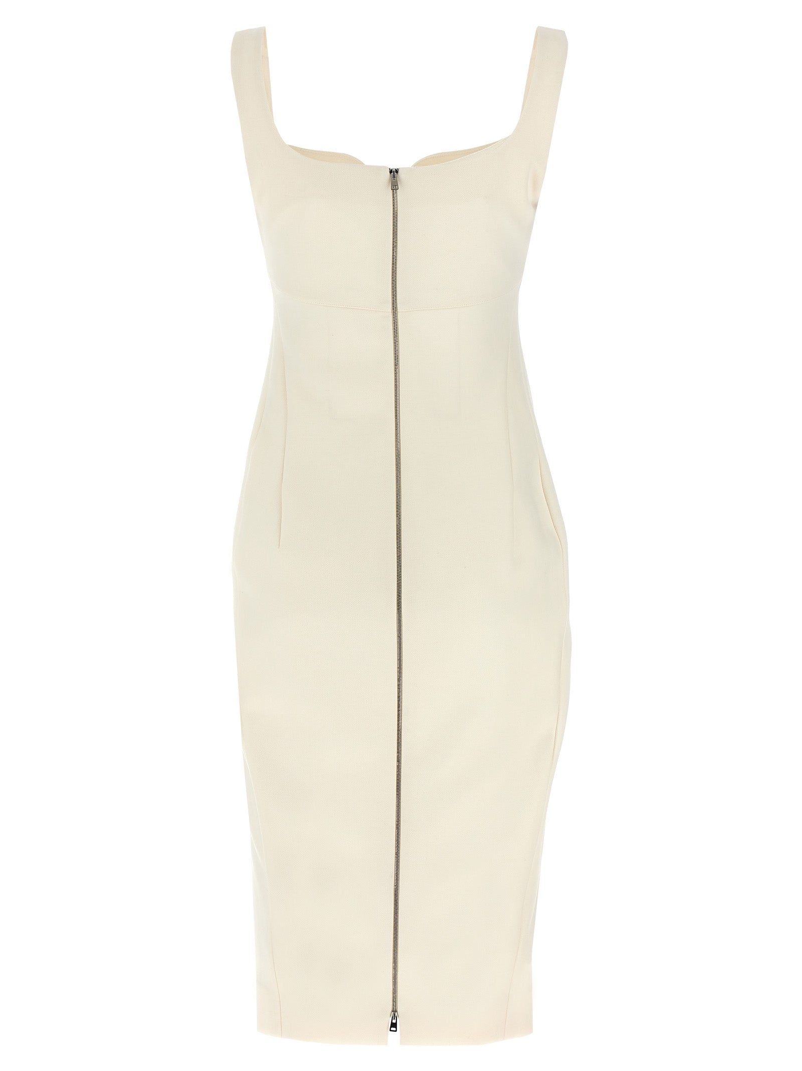 Abito di miscela di lana con scollo a cuore, spalline, chiusura alla zip posteriore lungo l'intera lunghezza del vestito.