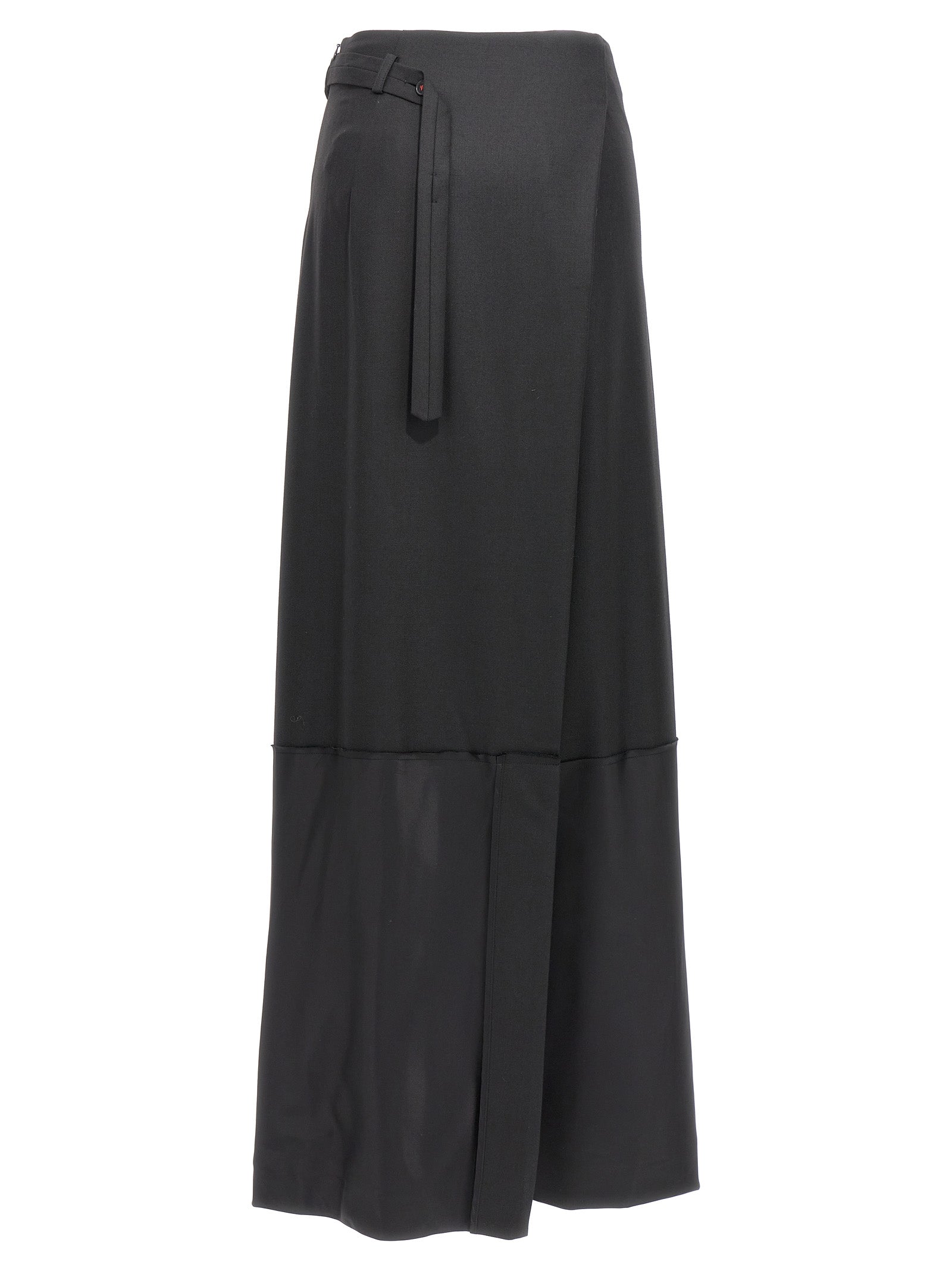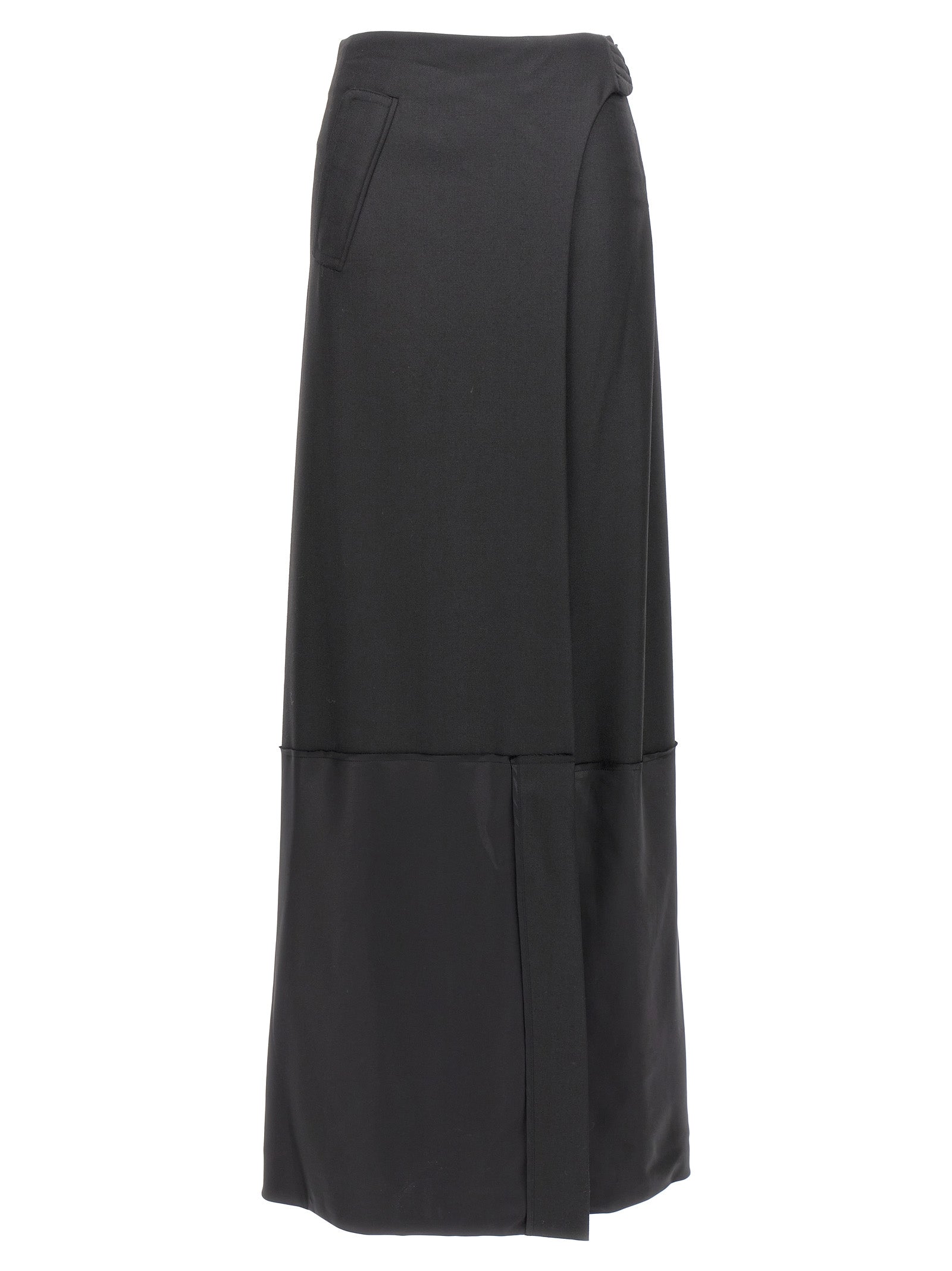 Gonna di miscela di lana lunga Infinity con zip laterale e chiusura a bottone, diviso, inserto satinato sull'orlo inferiore.