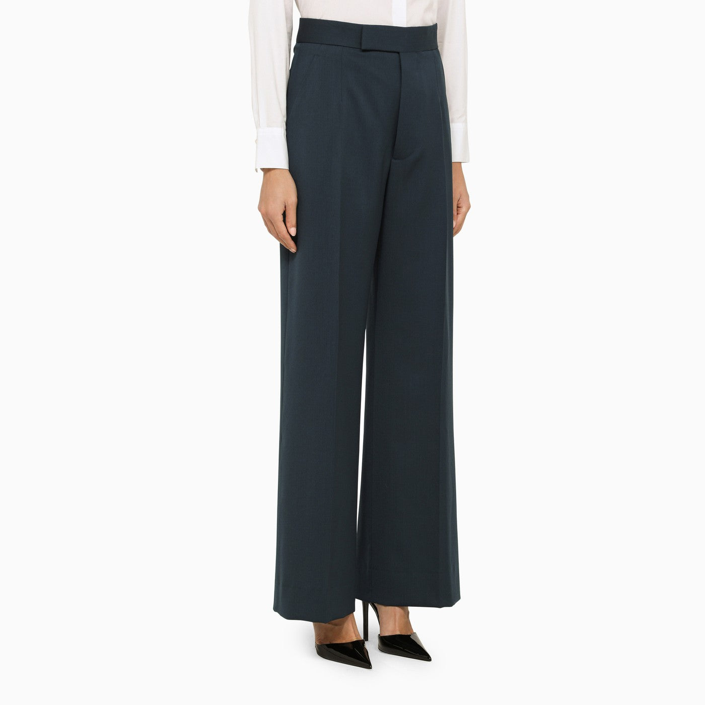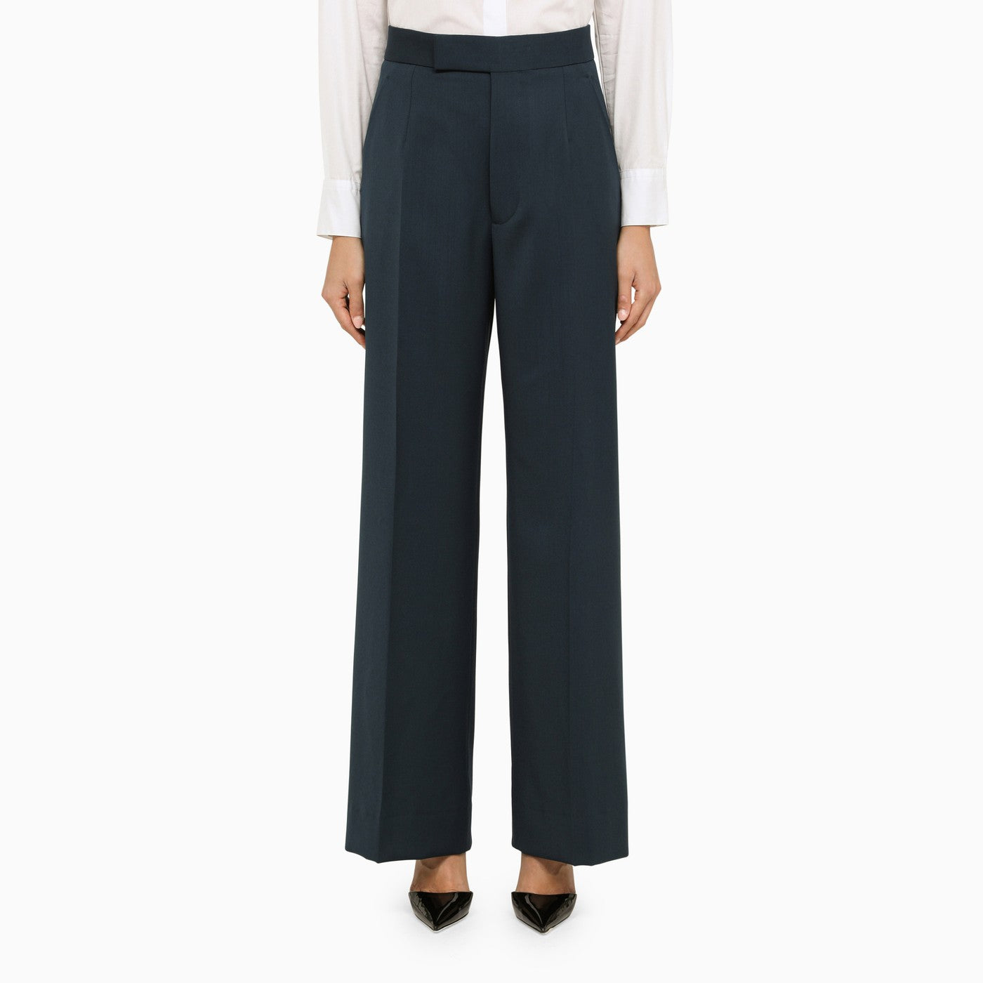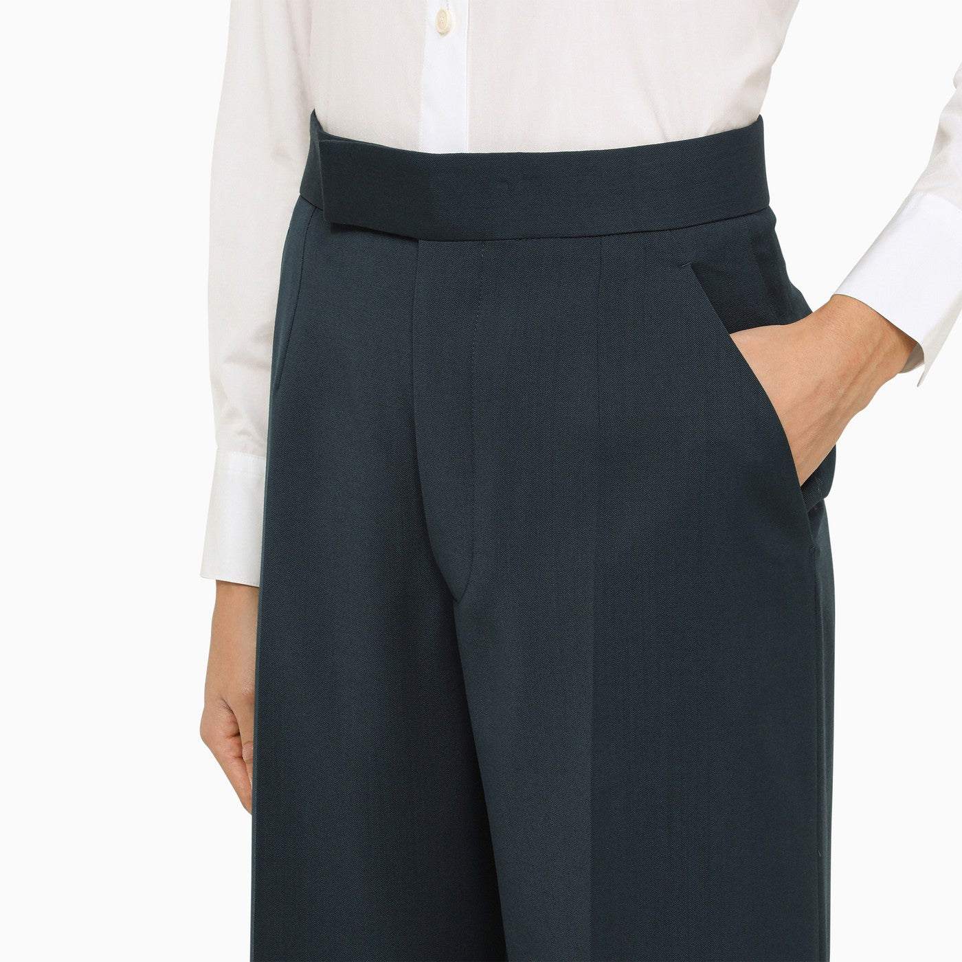 Pantaloni regolari di Vivienne Westwood in lana vergine color petrolio caratterizzati da chiusura nascosta, due tasche laterali e una tasca a filetto sul retro.