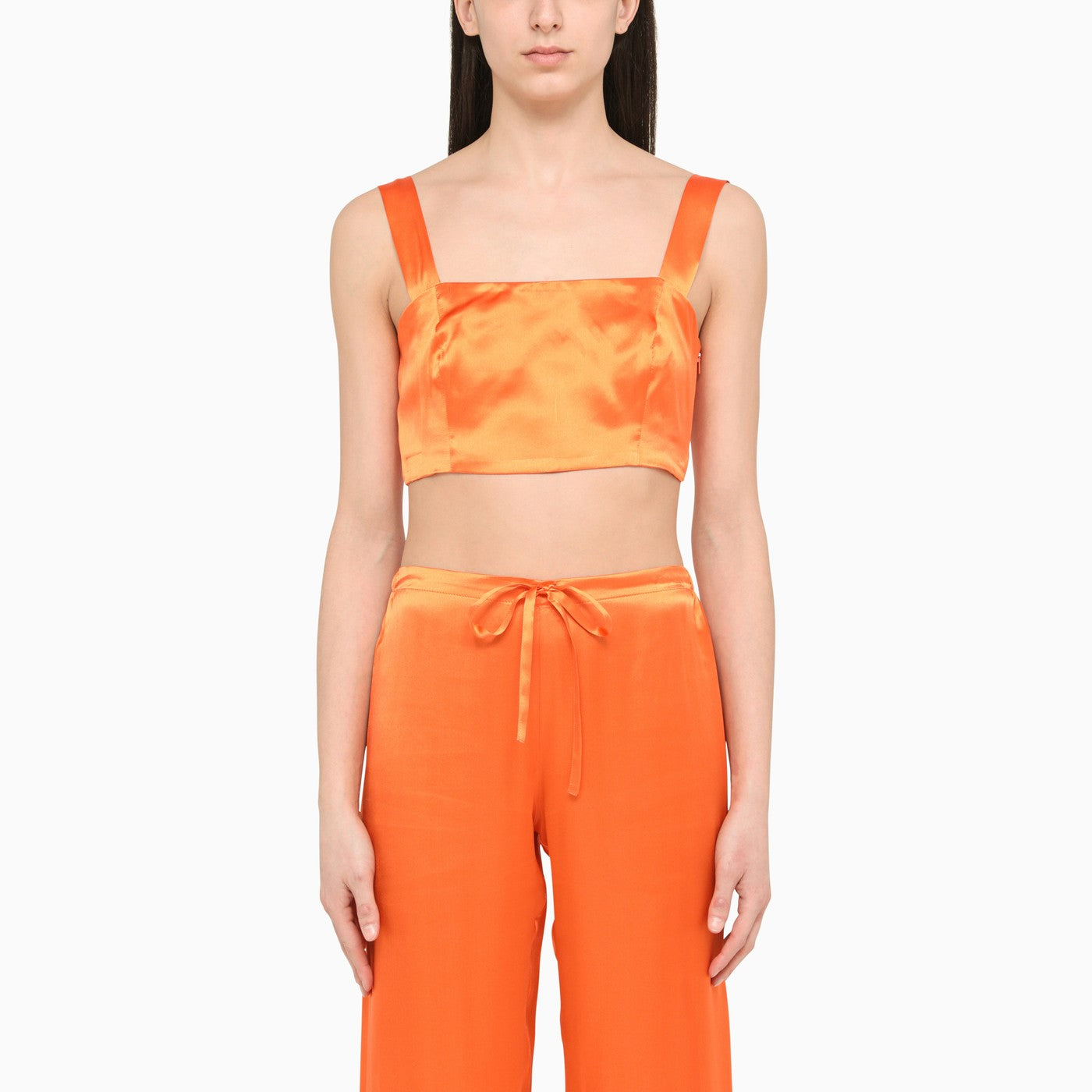 Top corto di Woera in seta arancione satinato.