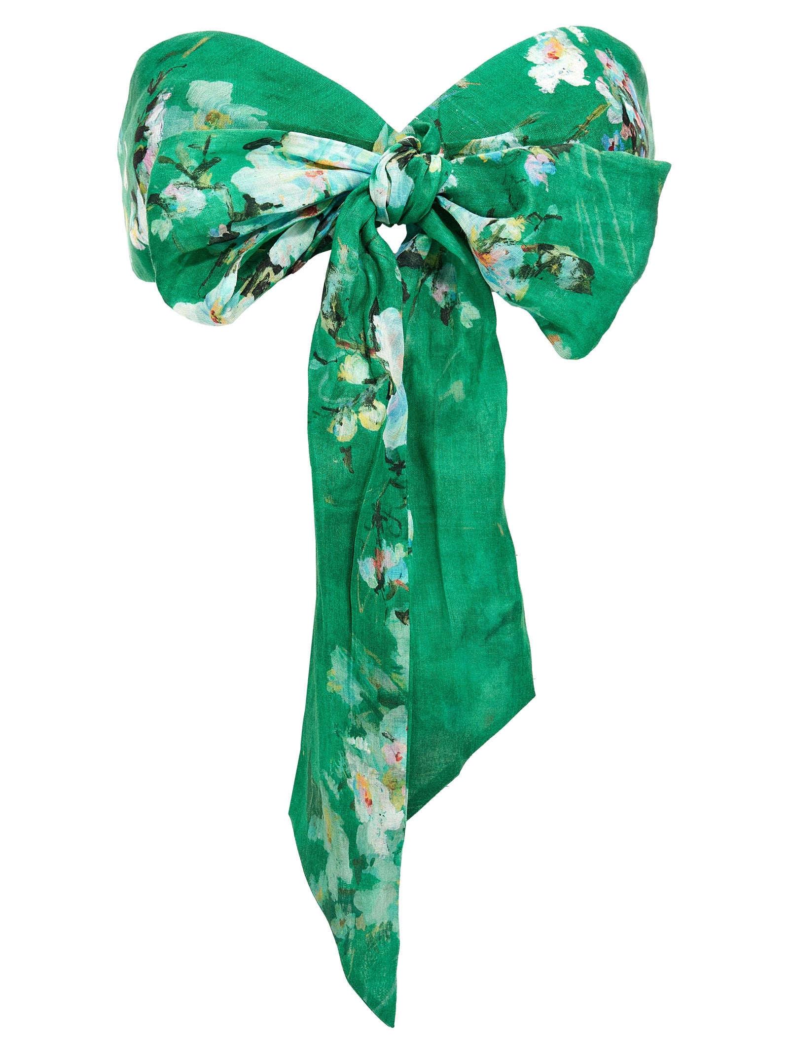 Braraletta di lino con stampa floreale "Everley Draped Bow" con dettagli arco drappeggiati anteriore, spalline regolabili e rimovibili e chiusura del gancio posteriore.