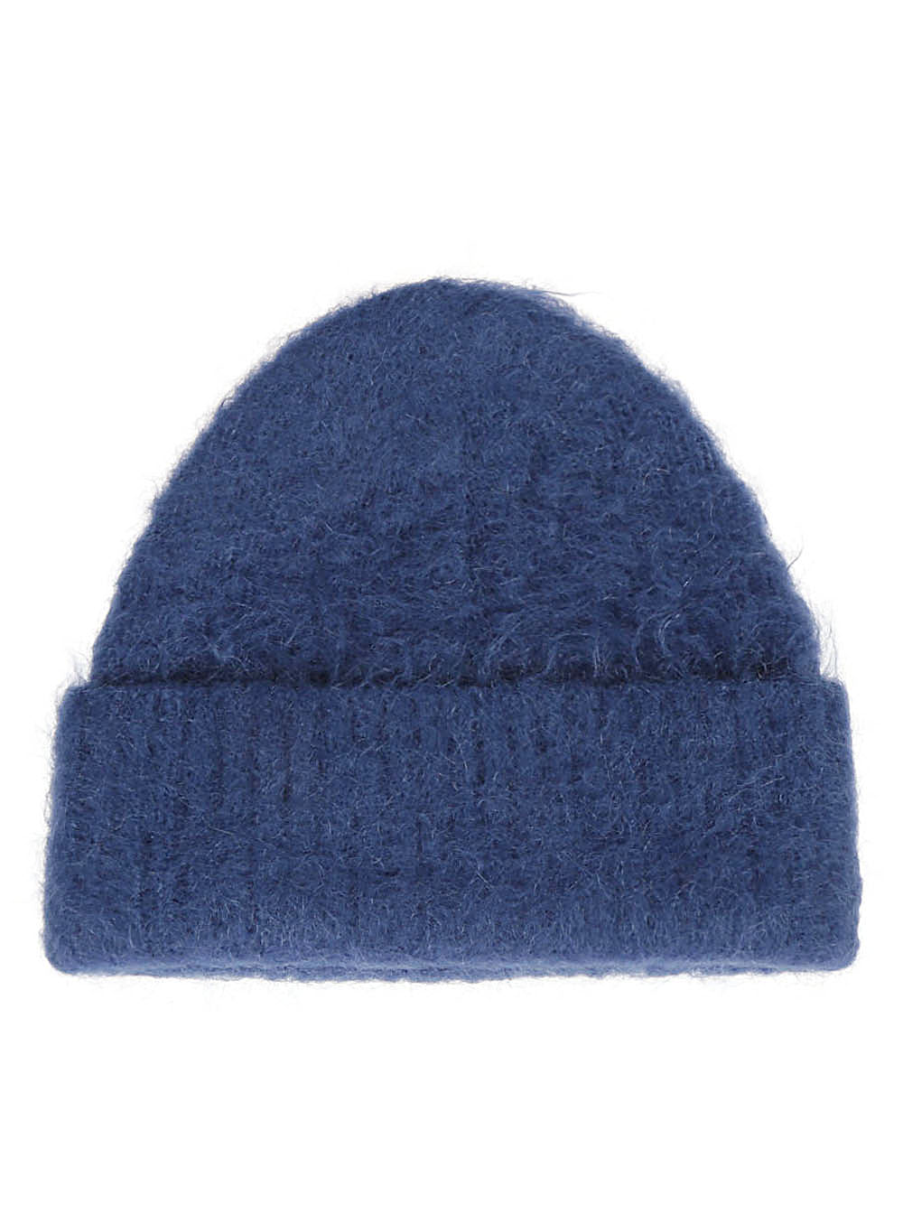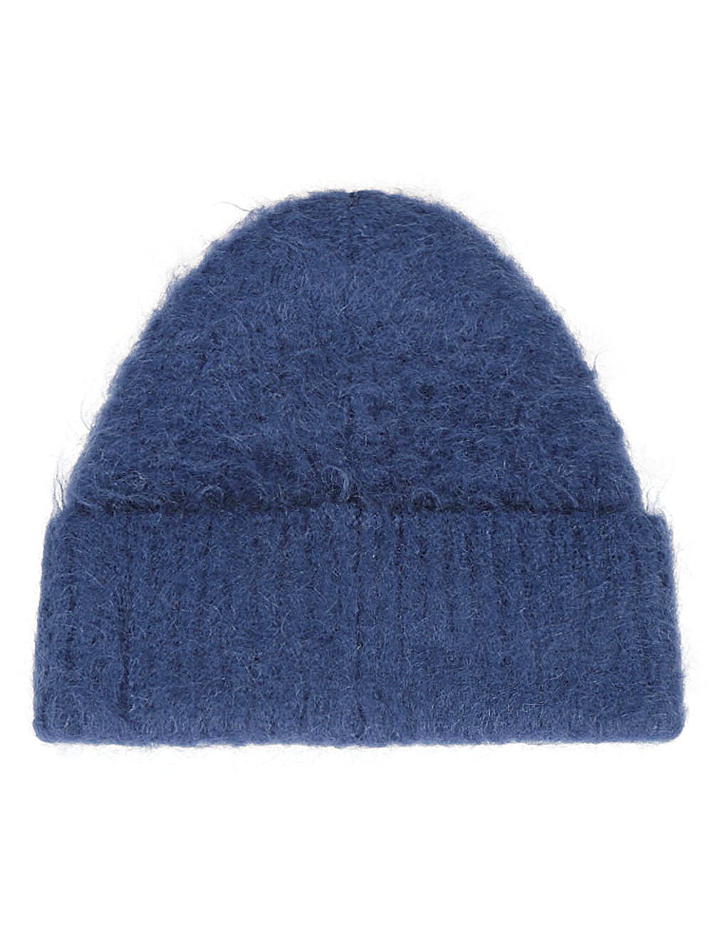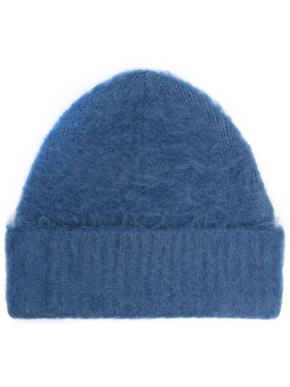 Bernio a costine a maglia da Acne Studios con blu navy, costruzione a maglia, finiture a coste e decning di allungamento.