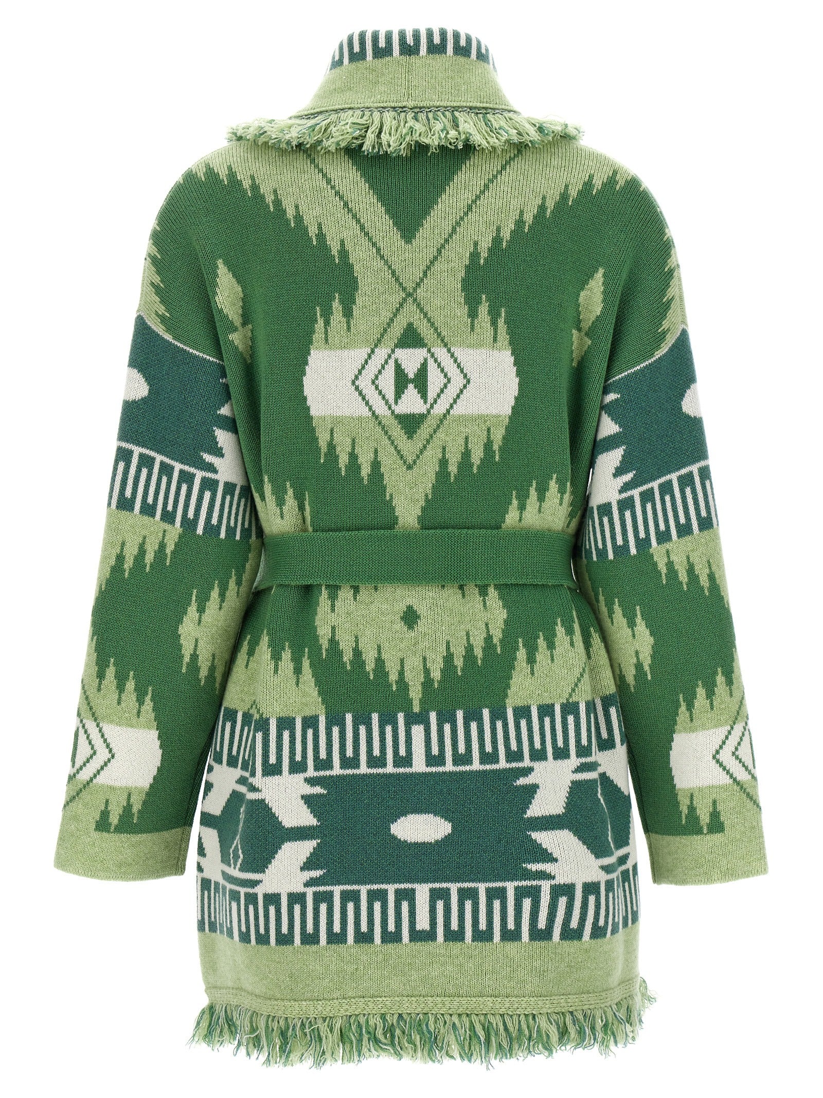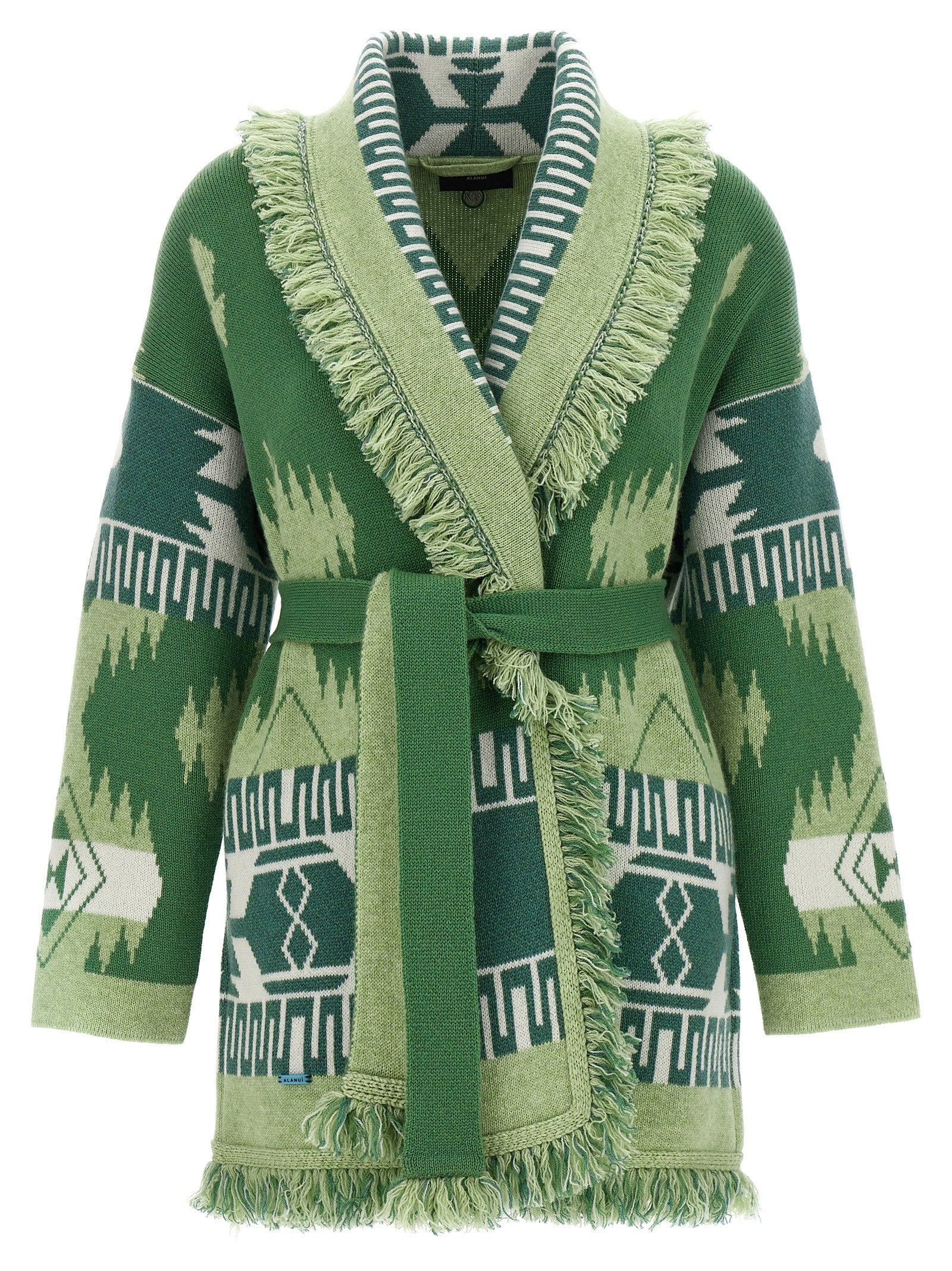Cashmere Cardigan "icona" con motivo jacquard all-over, rifilatura sfrenata, cintura in vita, tasche, maniche lunghe.