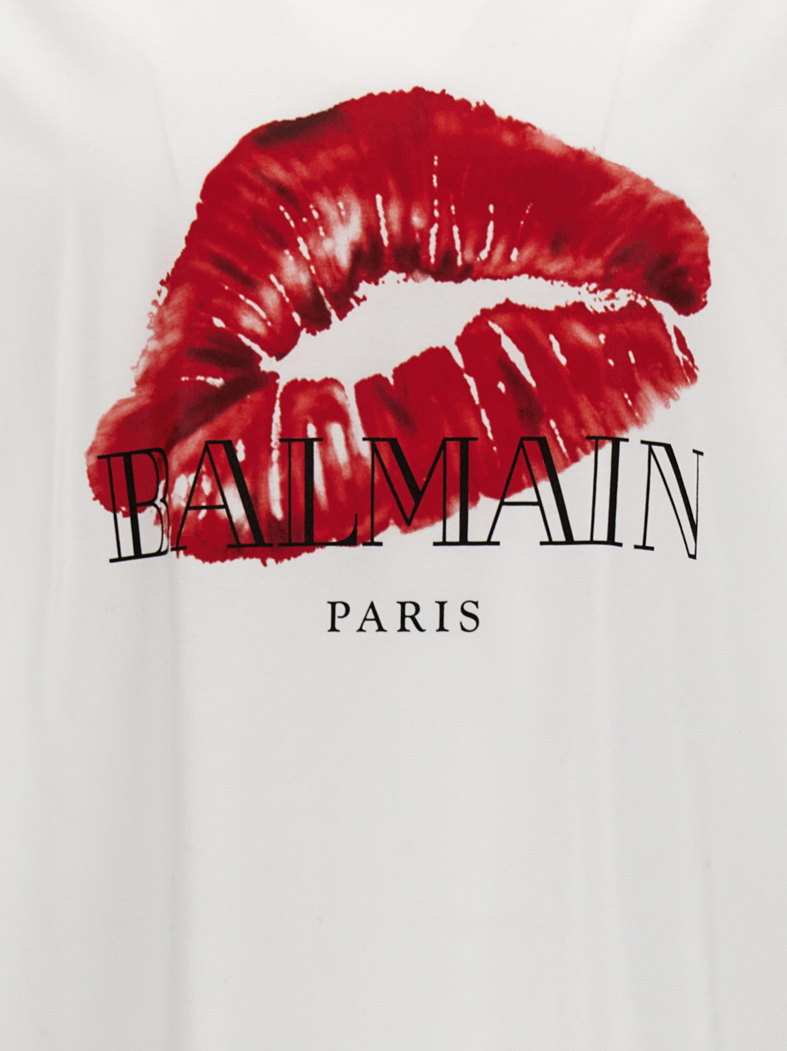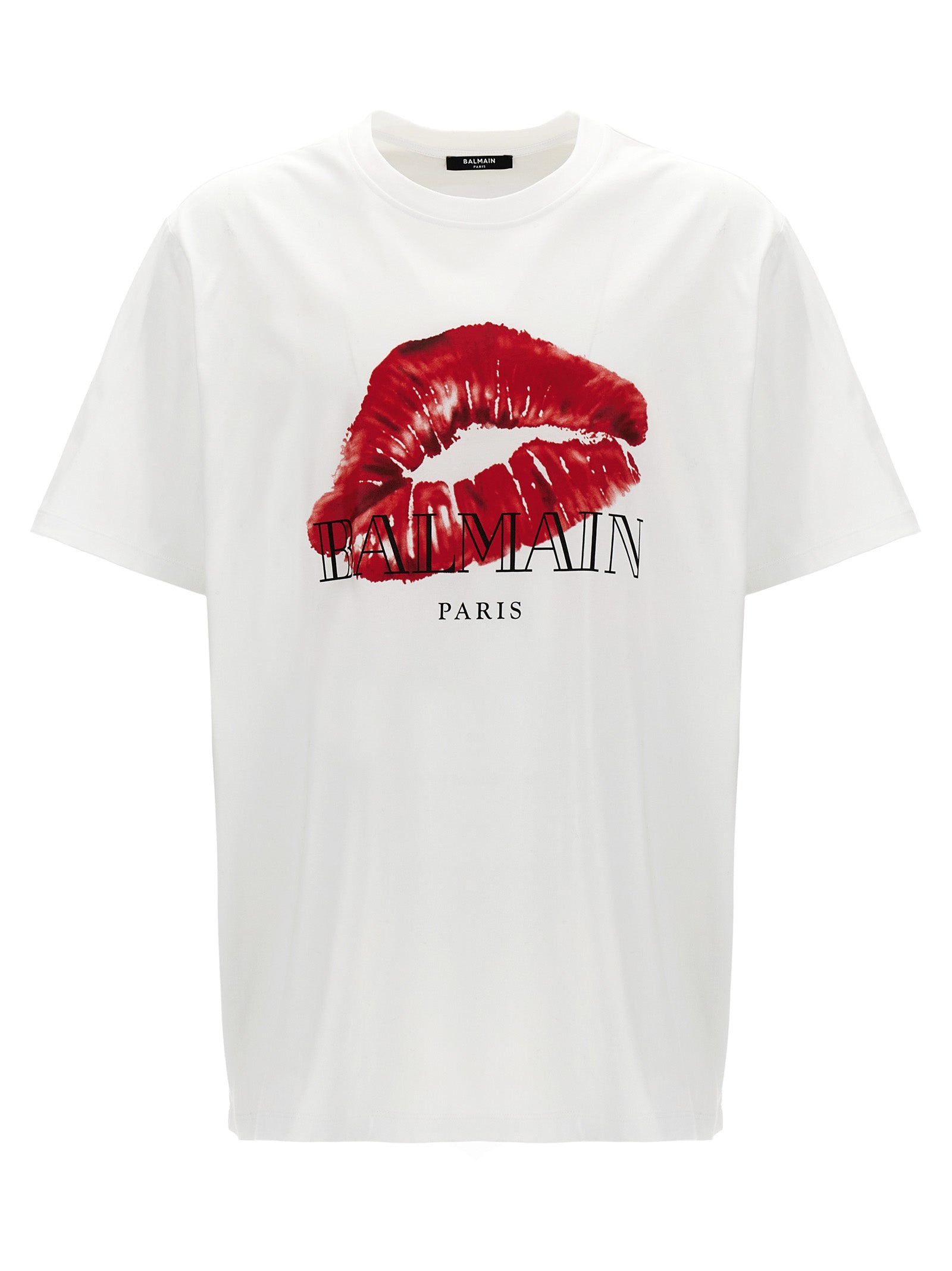 T-shirt "Balmain Kiss" Cotton Crew Neck con stampa anteriore, maniche corte.