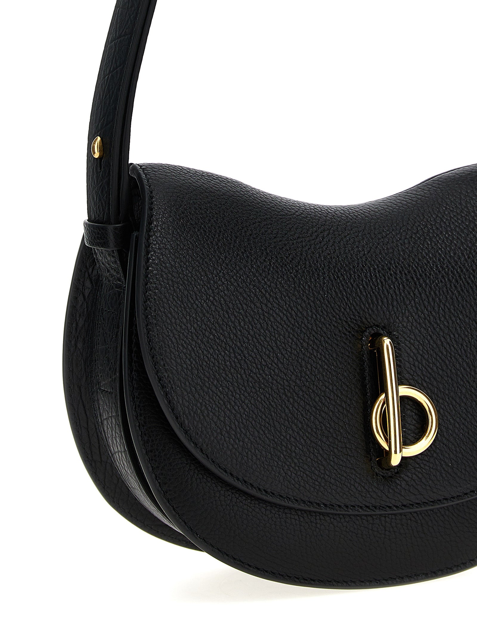 Small 'Rocking Horse' shoulder bag in grainy leather, flap closure with metal closure, adjustable shoulder strap.