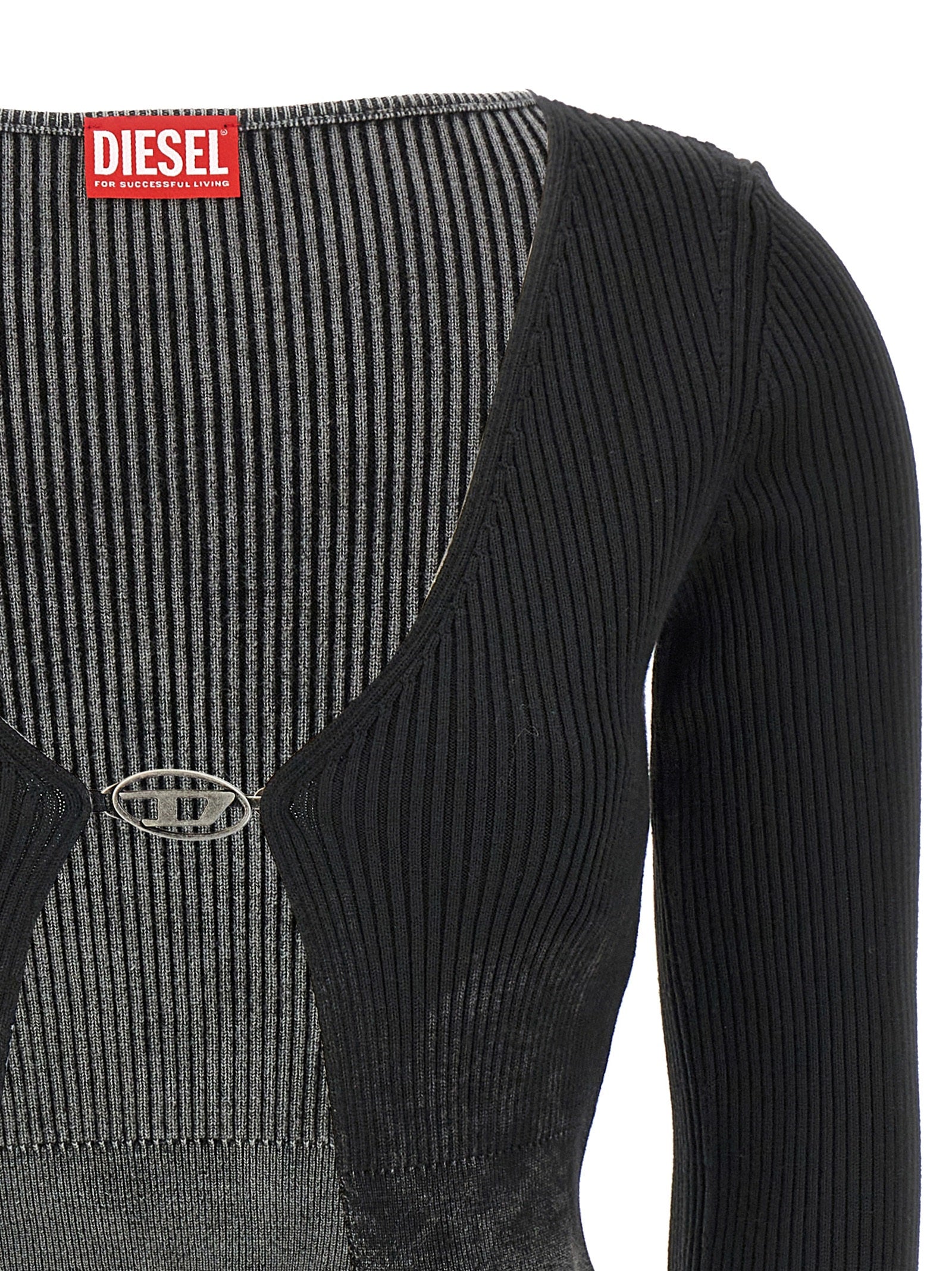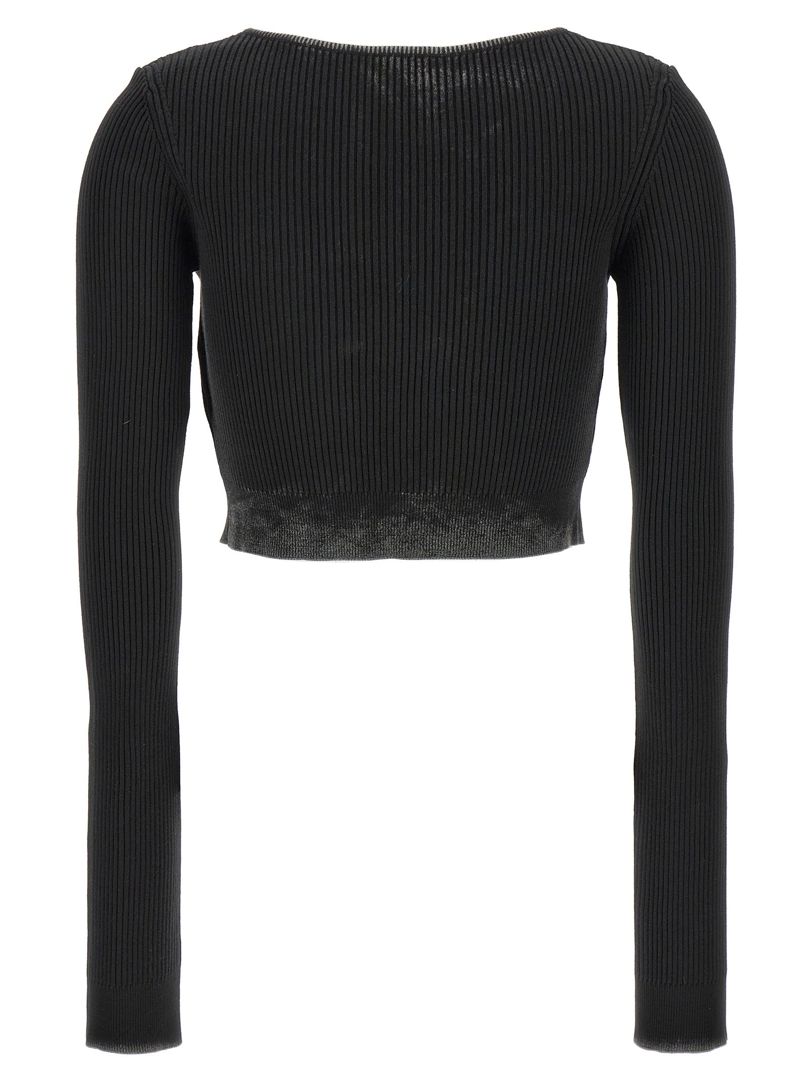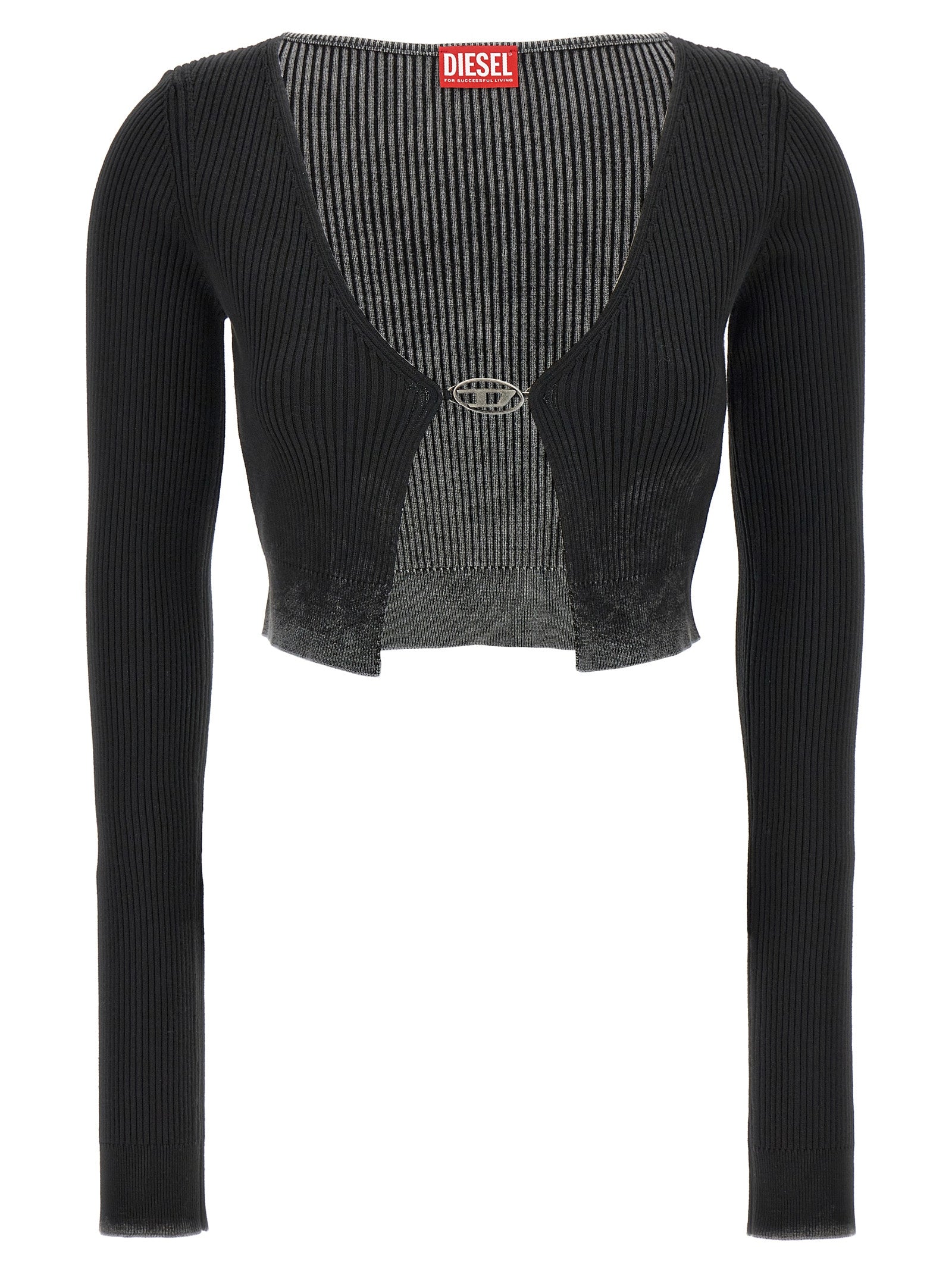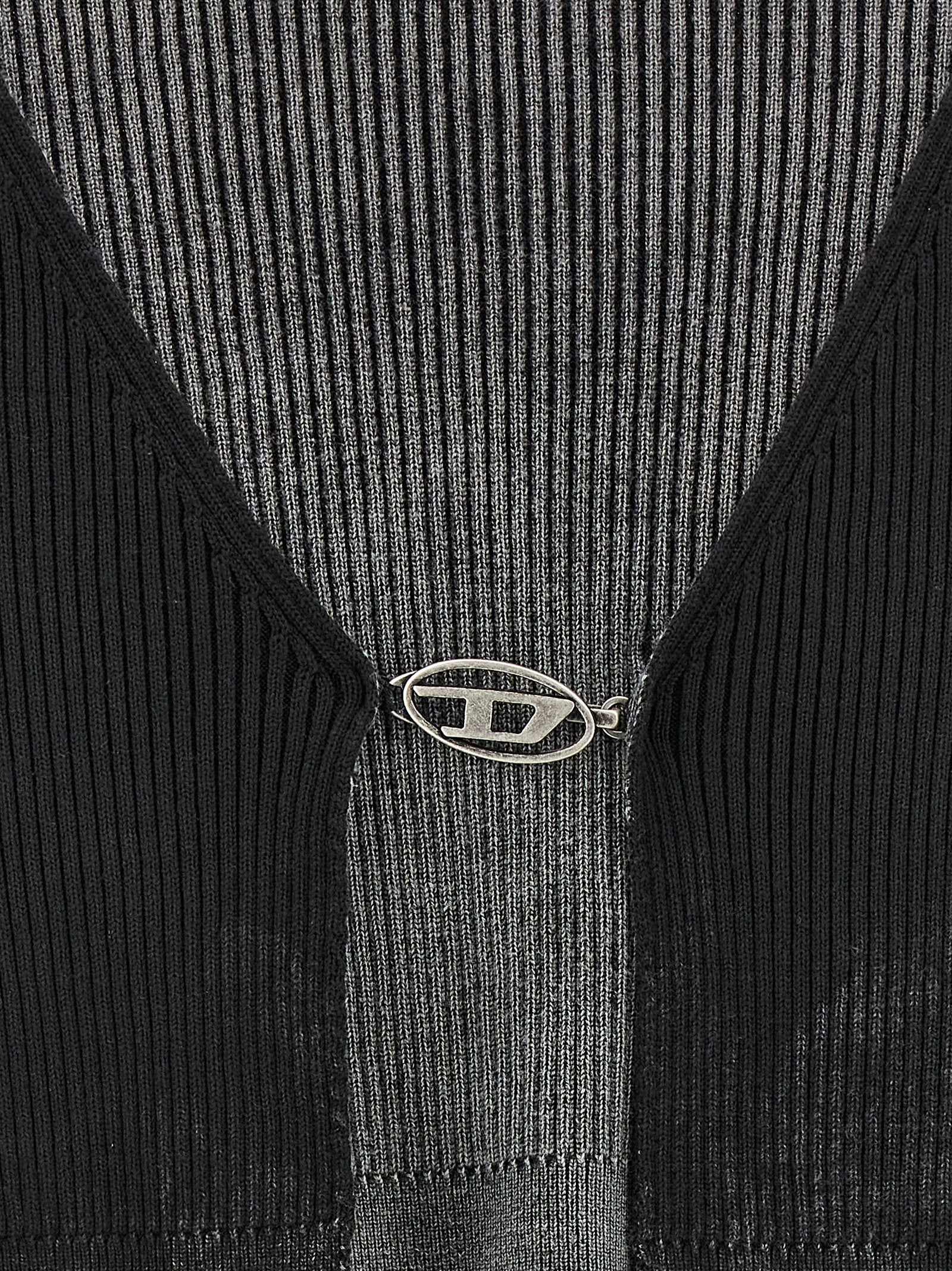 'M-Latina 'Cardigan a costola in cotone a coste con chiusura anteriore con placca a D in metallo, maniche lunghe.
