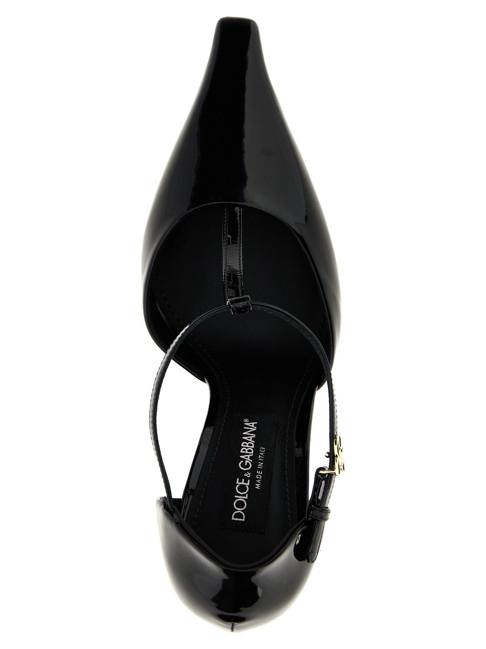 Pompe in pelle di brevetto 'T-bar' con cinturino alla caviglia regolabile con mini logo in metallo, tallone.