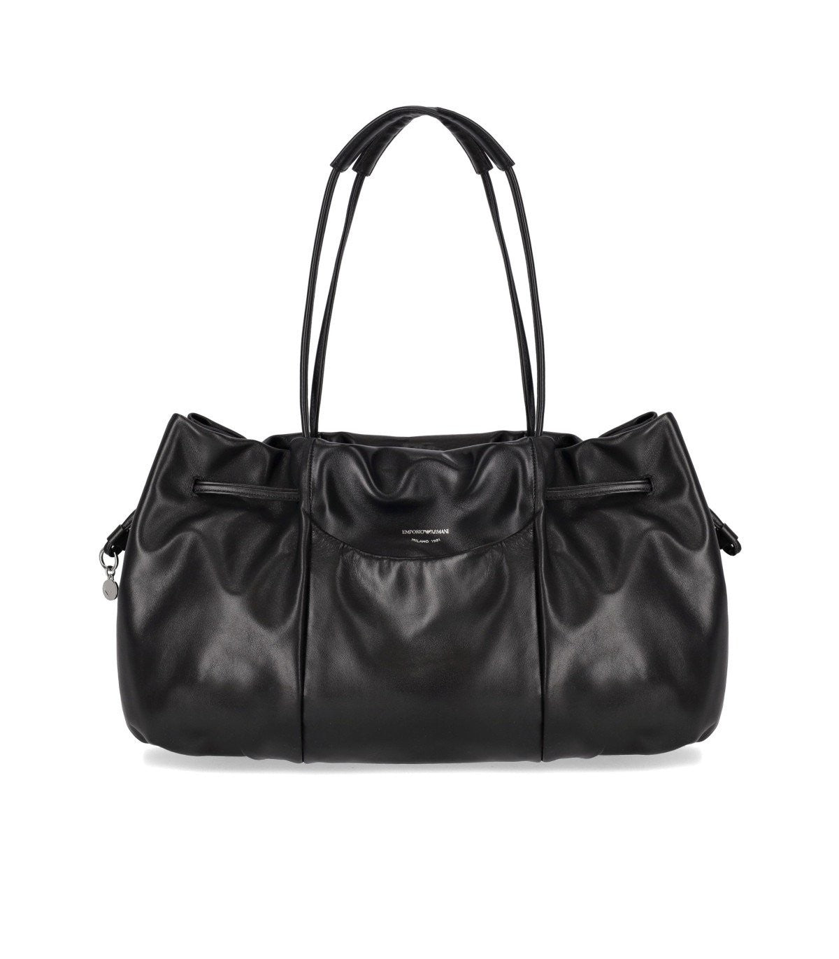 Borsa a tracolla Emporio Armani realizzata in pelle di nappa morbida con una tasca anteriore e logo a contrasto. Elegante e versatile, presenta una chiusura pratica con il fascino del logo e un interno foderato di cotone per una finitura di qualità. Misura 46x28x12 cm. Composizione: pelle di agnello al 100%. Rivestimento: cotone 100%.