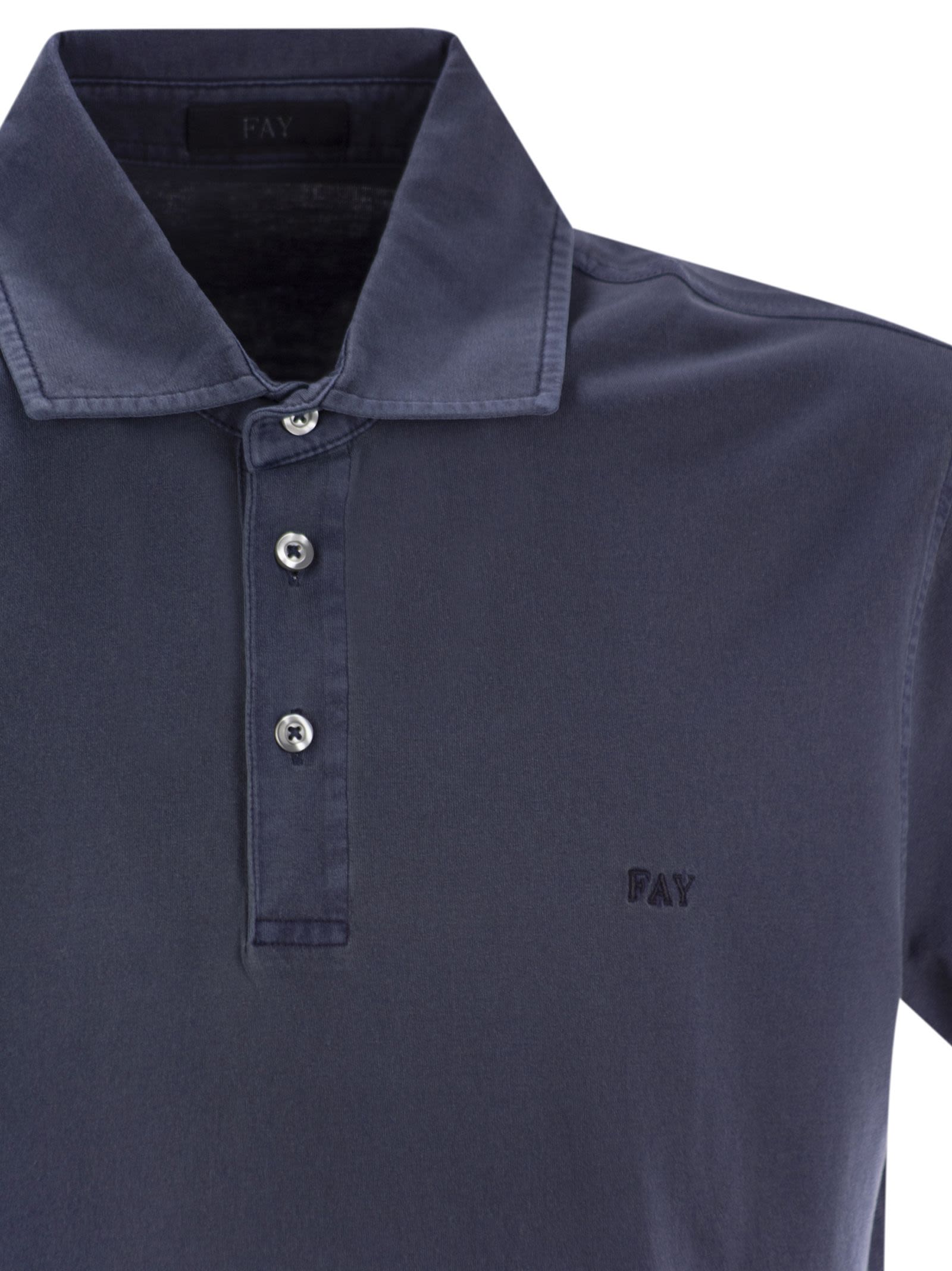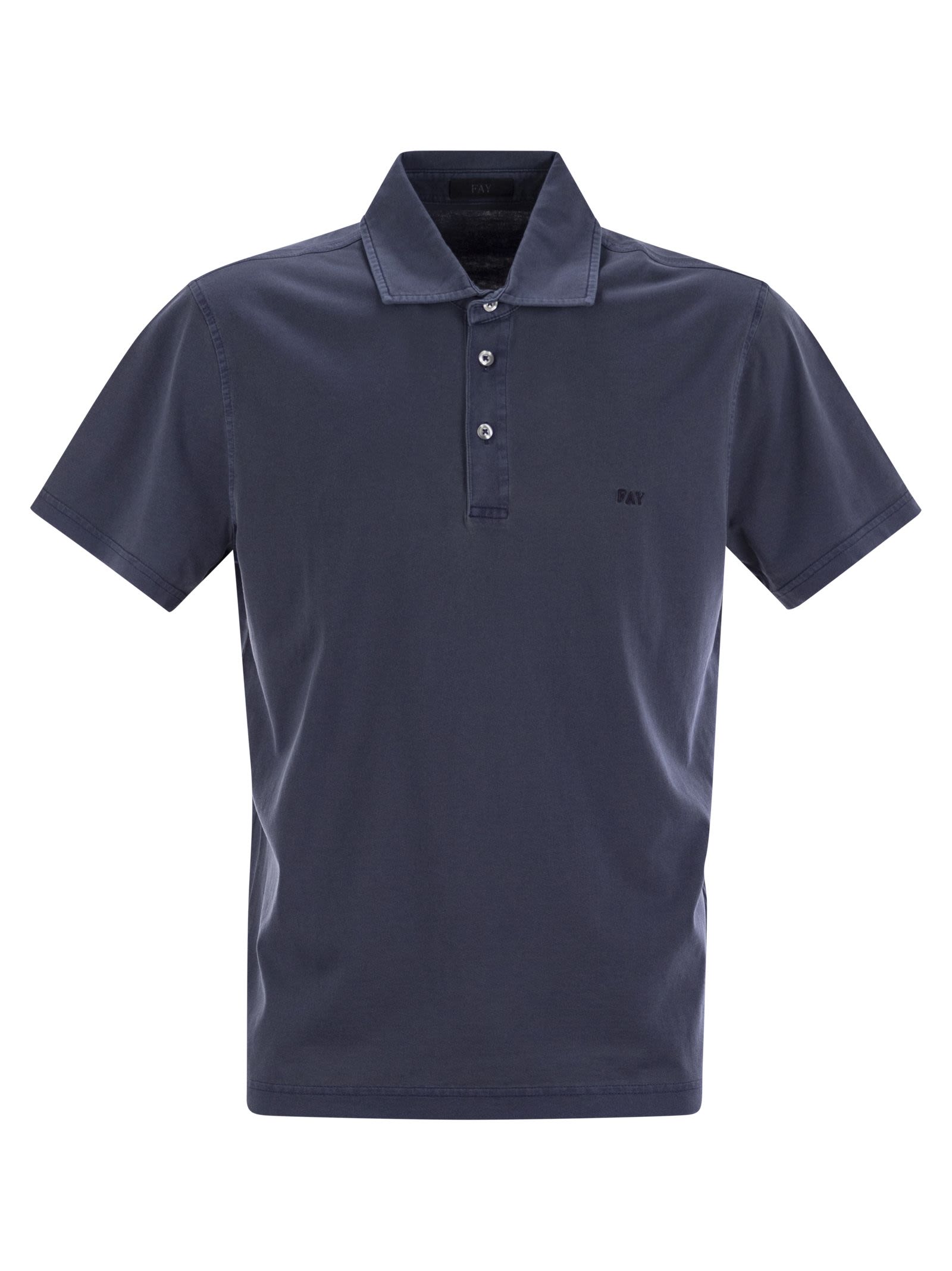 Short-sleeved comfort fit polo shirt made of jersey with a frosted garment dye treatment, with slightly faded profiles. Fitted with a three-button fastening, it is embellished with the Fay logo embroidered on the chest. - Comfort fit - Logo on the chest - Polo neck DESIGNER ID: NPMB250143TUY1U811