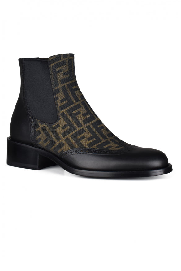 Stivali alla caviglia in pelle nera Fendi.
