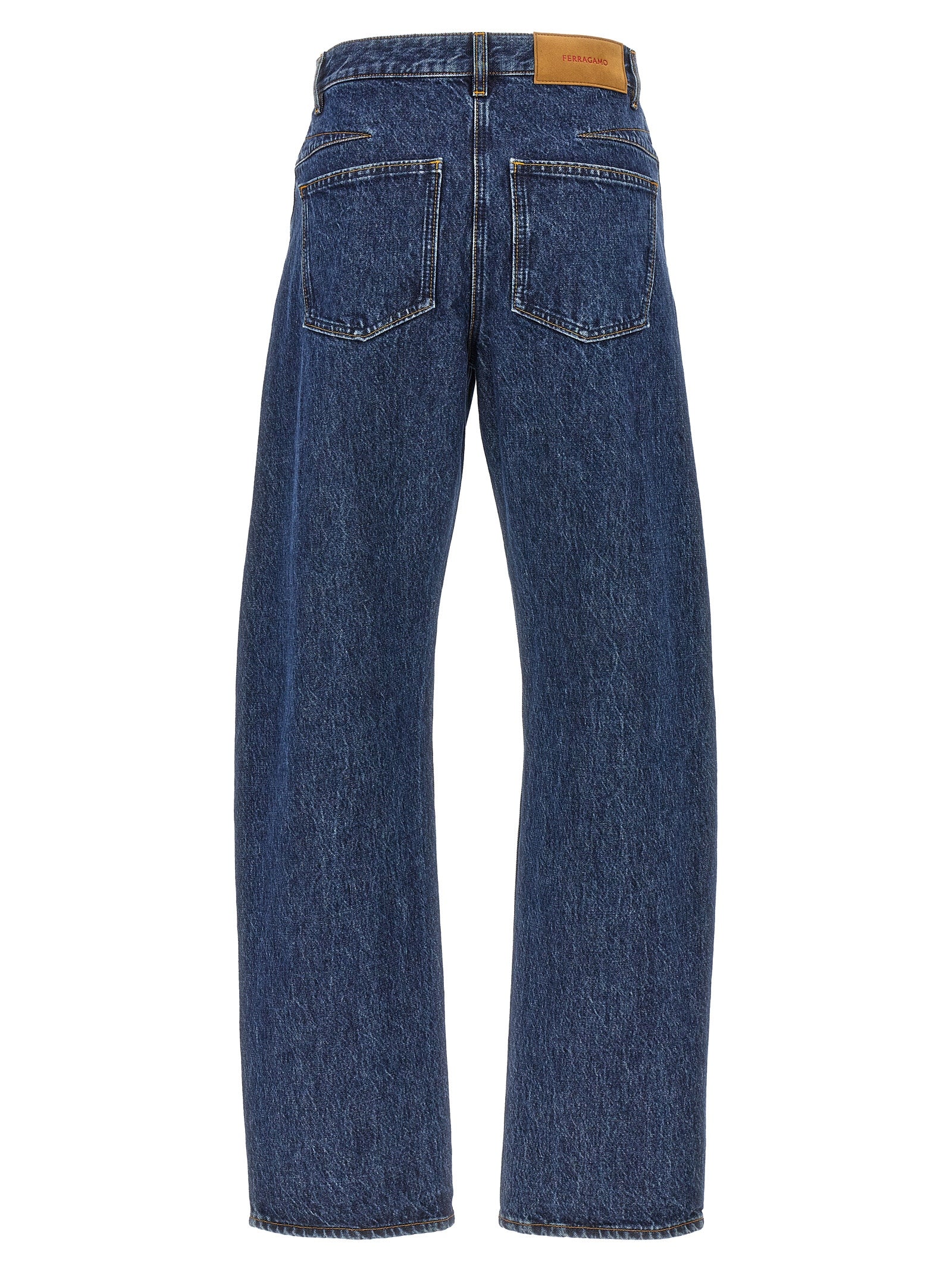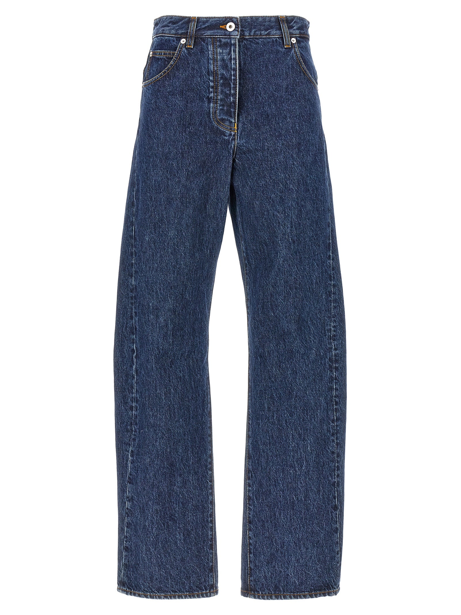 Jeans in denim in cotone "Marmorizzato" con chiusura a bottone, cinque tasche, tag logo in pelle scamosciata.