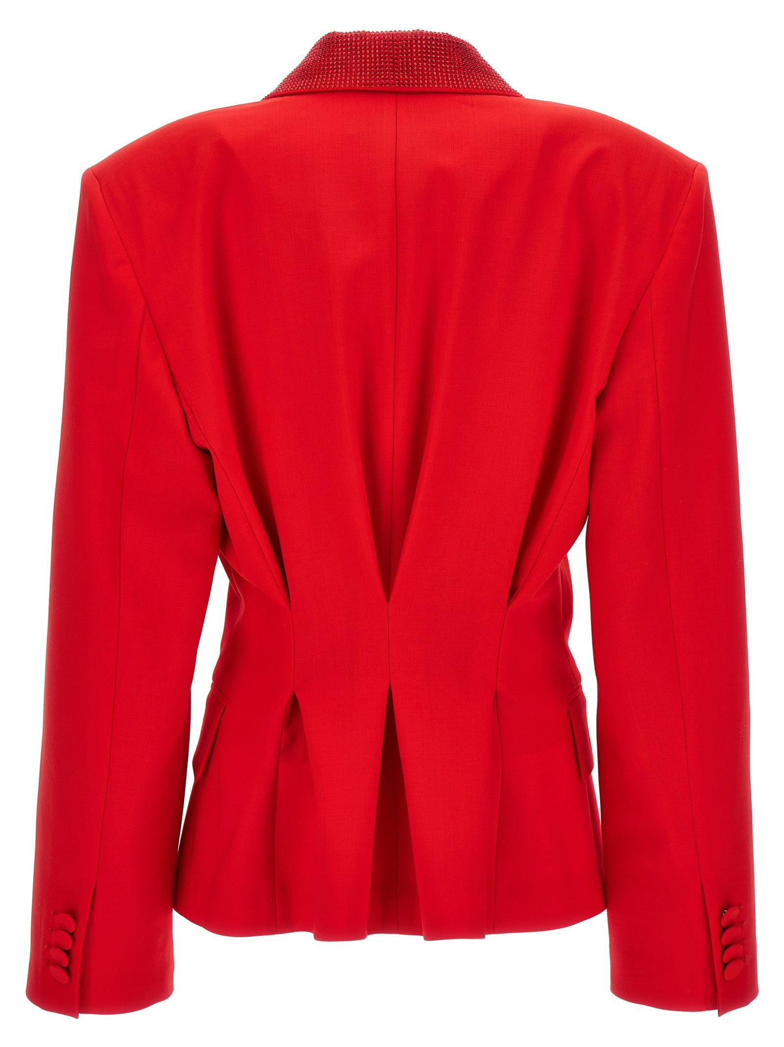 Blazer di lana a petto singolo con fodera per viscosa, chiusura a bottone singolo, battiti impreziositi da cristalli all-over.