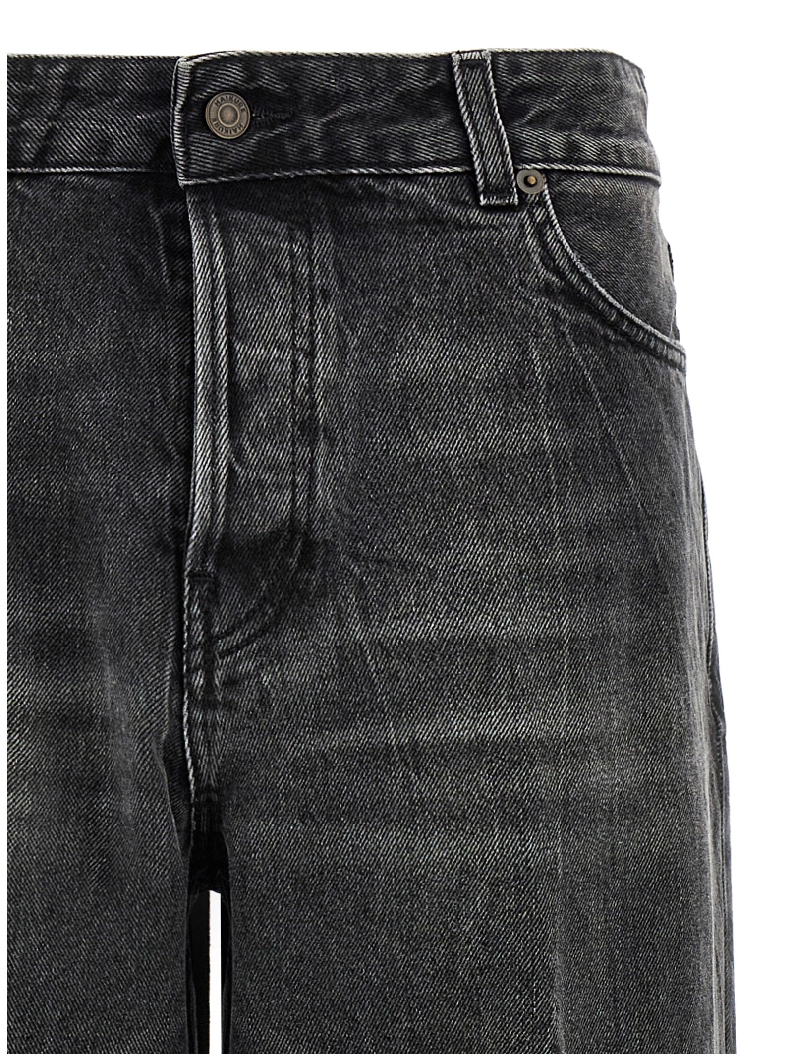 Jeans in denim in cotone "Betty Spider Black" con chiusura dei bottoni, cinque tasche, stile a basso contenuto di vita con piega con ferro.