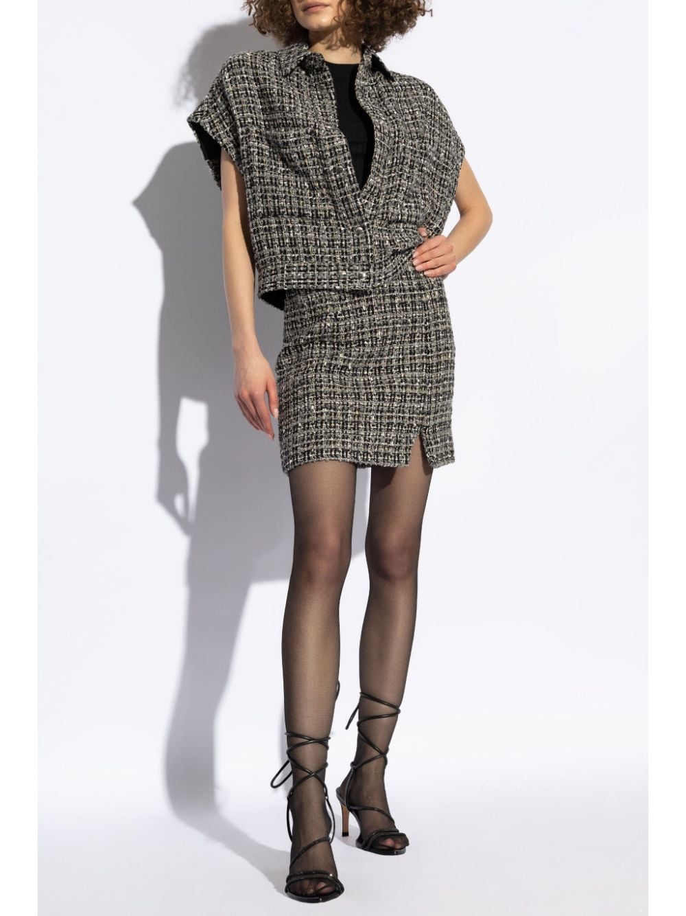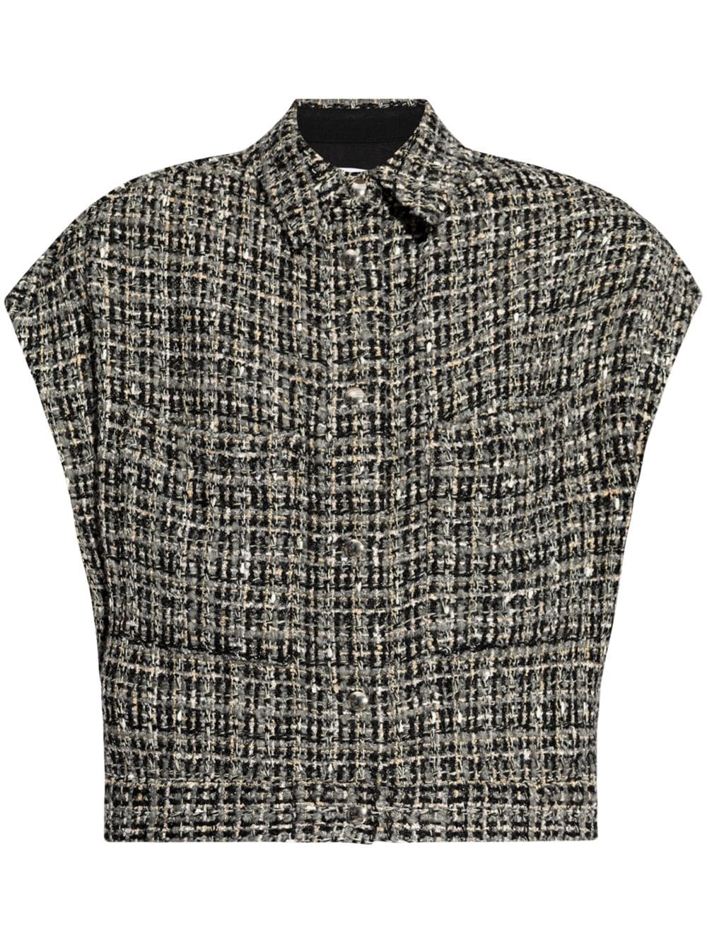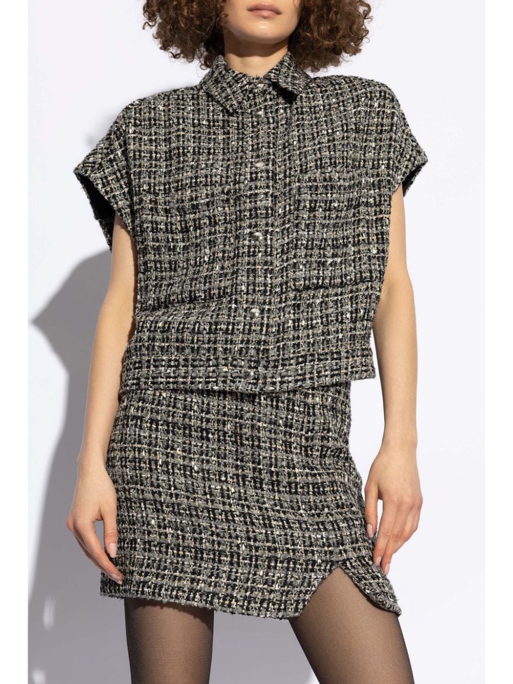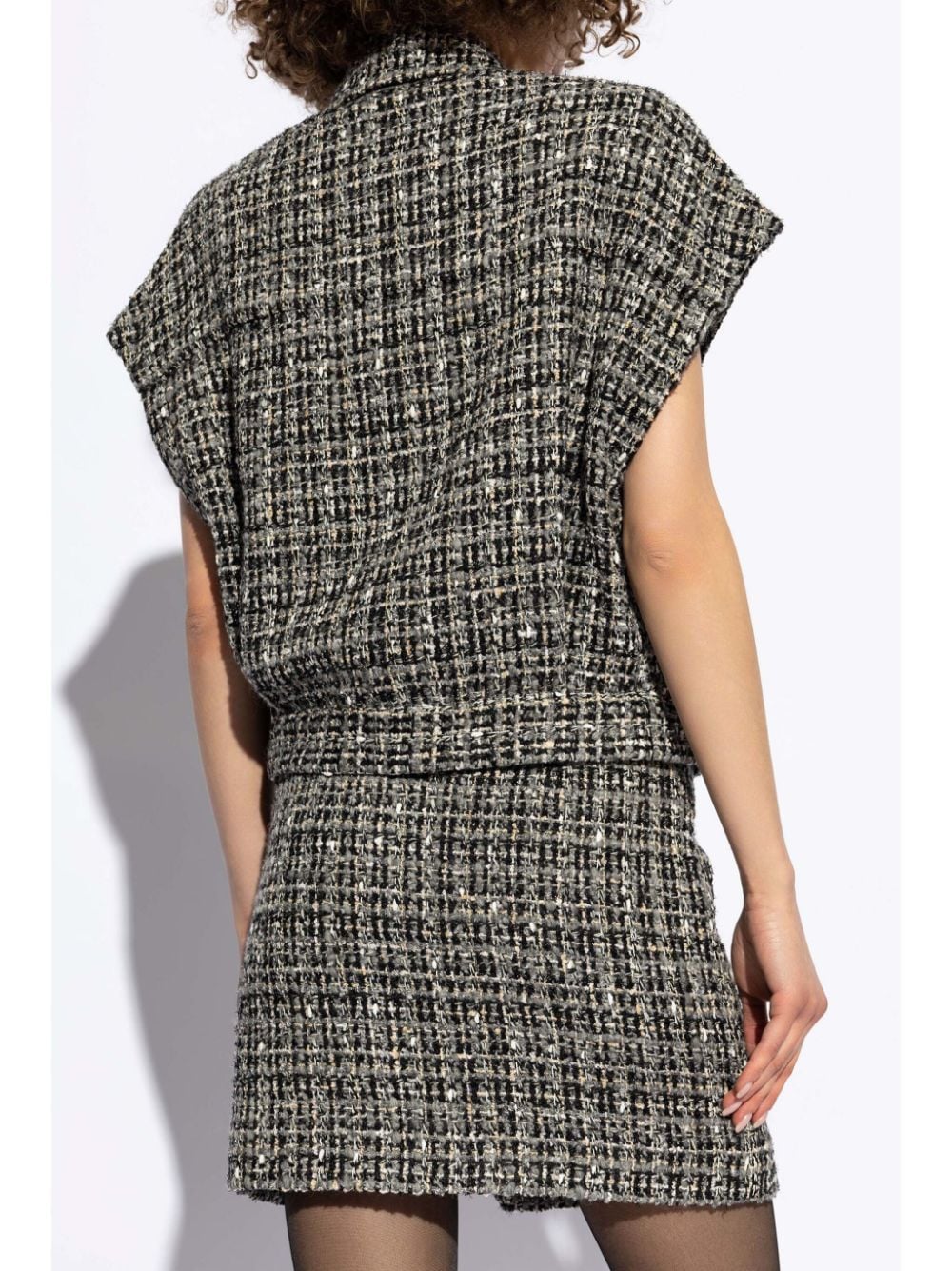 Bullone in tweed nero/nero fissaggio anteriore orlo asimmetrico
