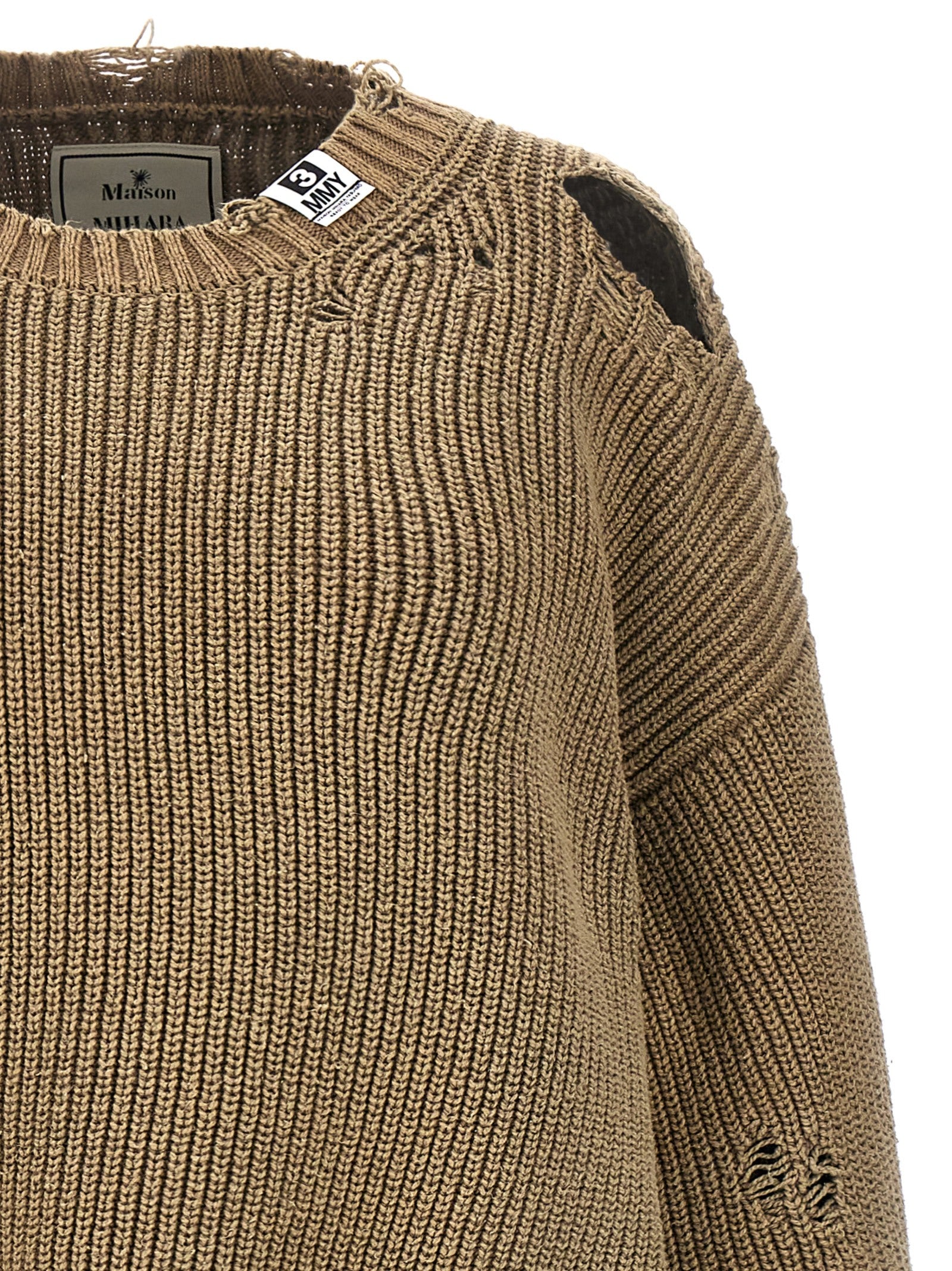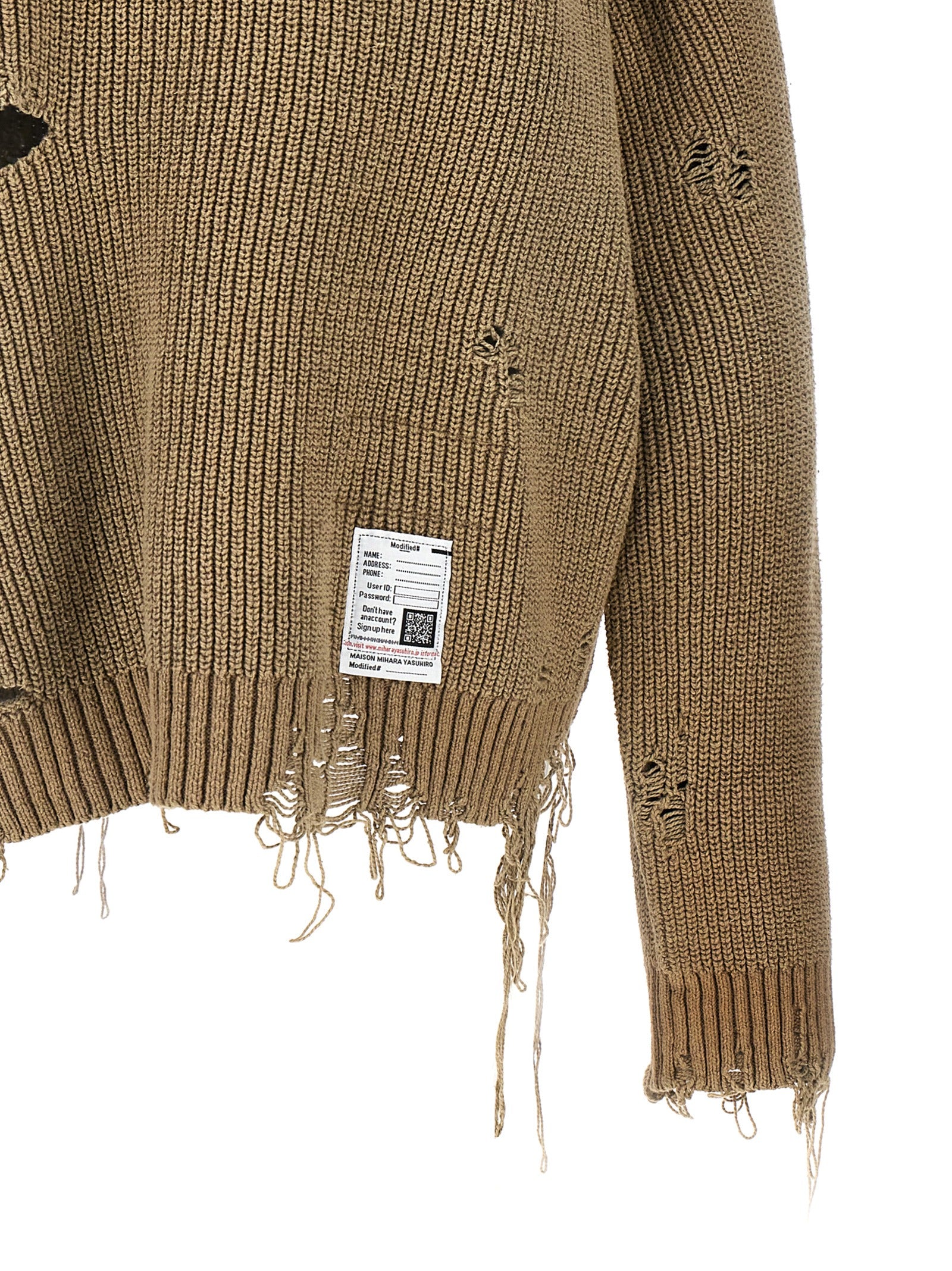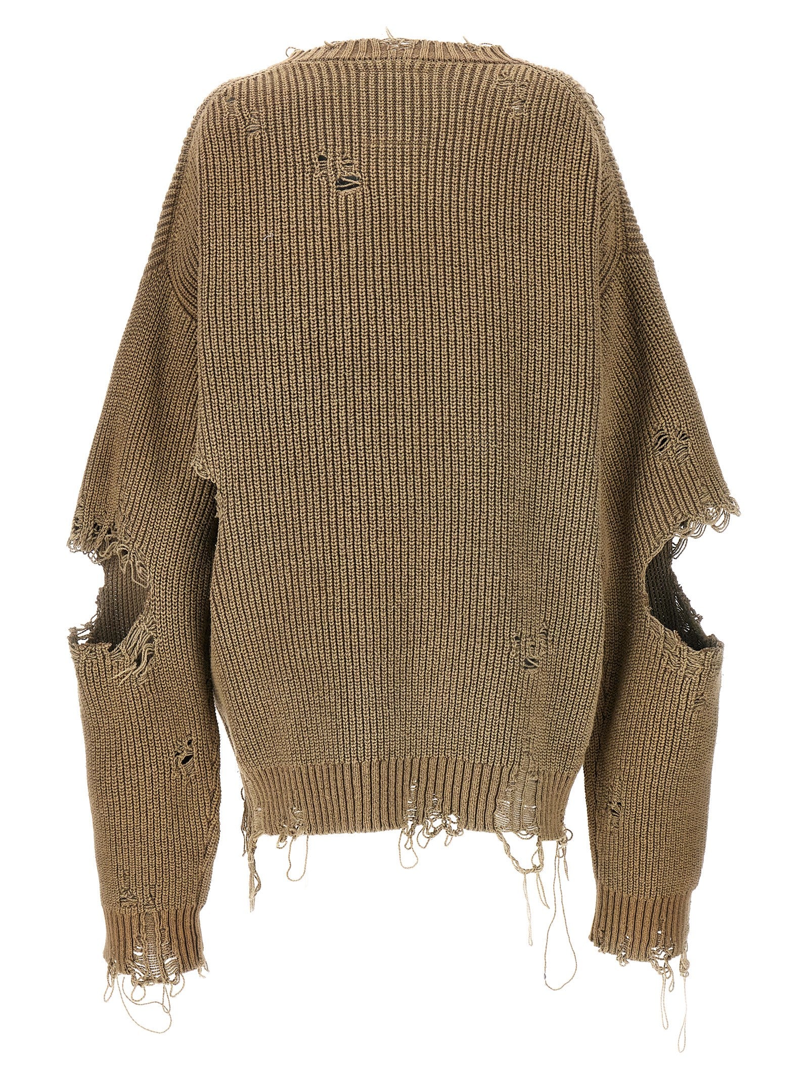 Effetto distrutto maglione di cotone con collo dell'equipaggio e maniche lunghe.
