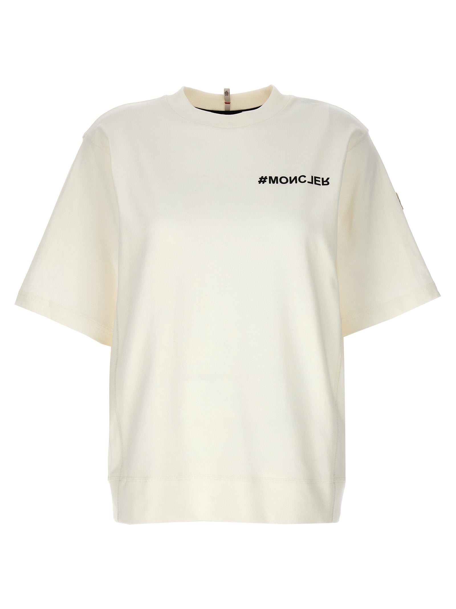 T-shirt di cotone con stampa a logo frontale, collo dell'equipaggio, maniche corte.
