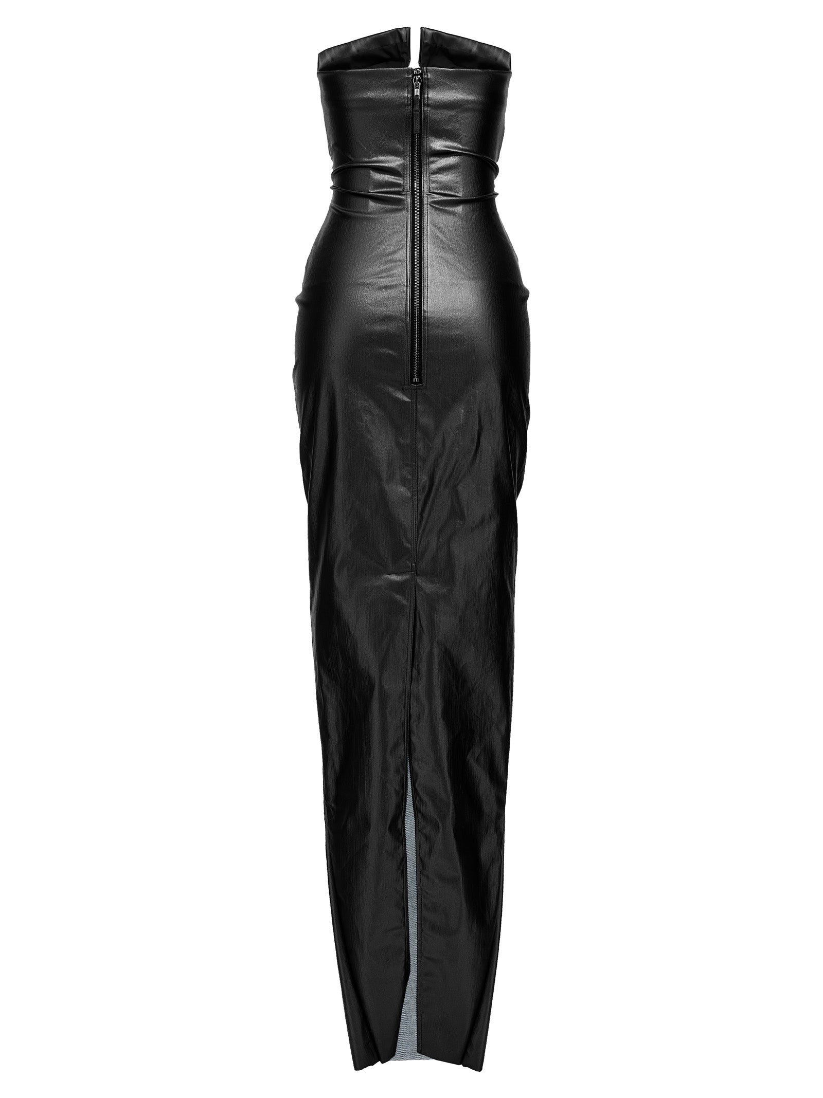 Abito di cotone allungato senza spalline "abito a punta" con scollo sagomato e stile di ritaglio frontale, modello lungo.