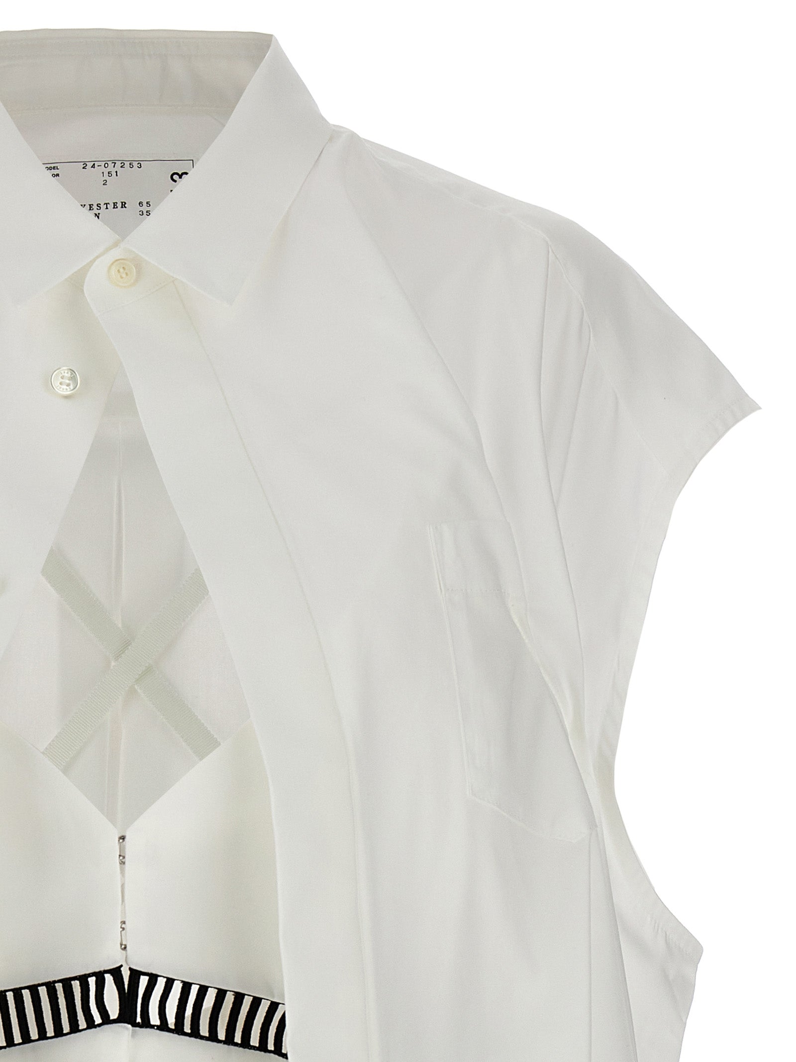 Camicia senza maniche con ricamo a contrasto, chiusura del gancio anteriore, dettagli sovrapposti, chiusura dei pulsanti.