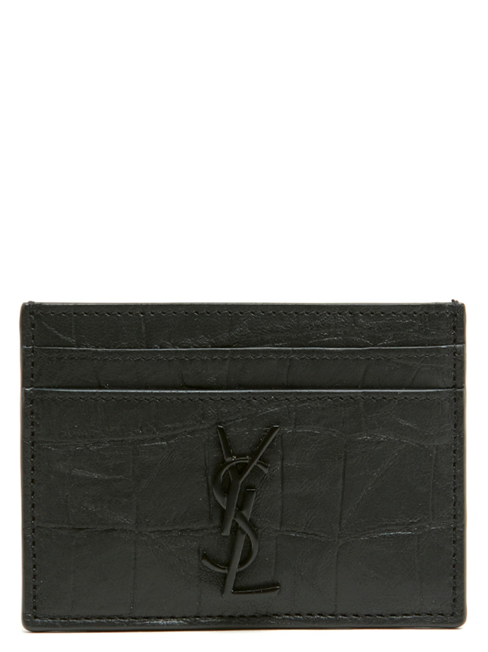 Porta della carta in pelle di coccodrillo "Cassandre" con logo in metallo tono su tono.