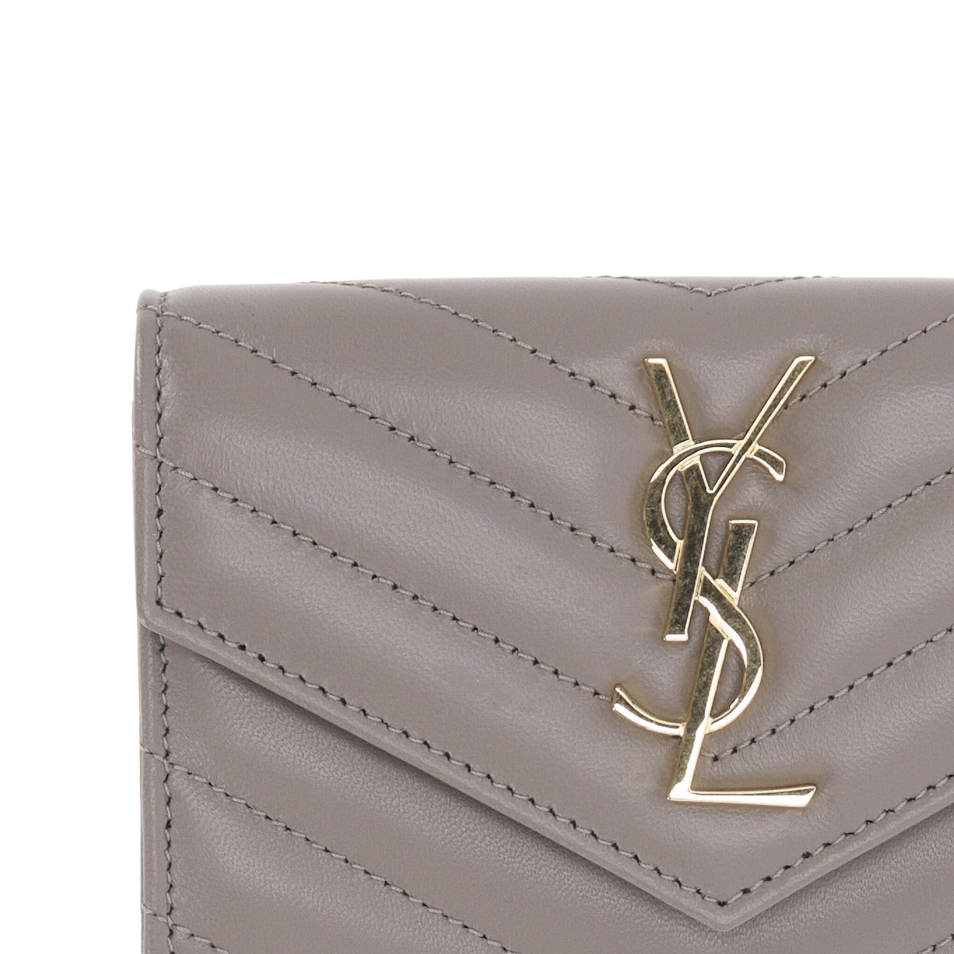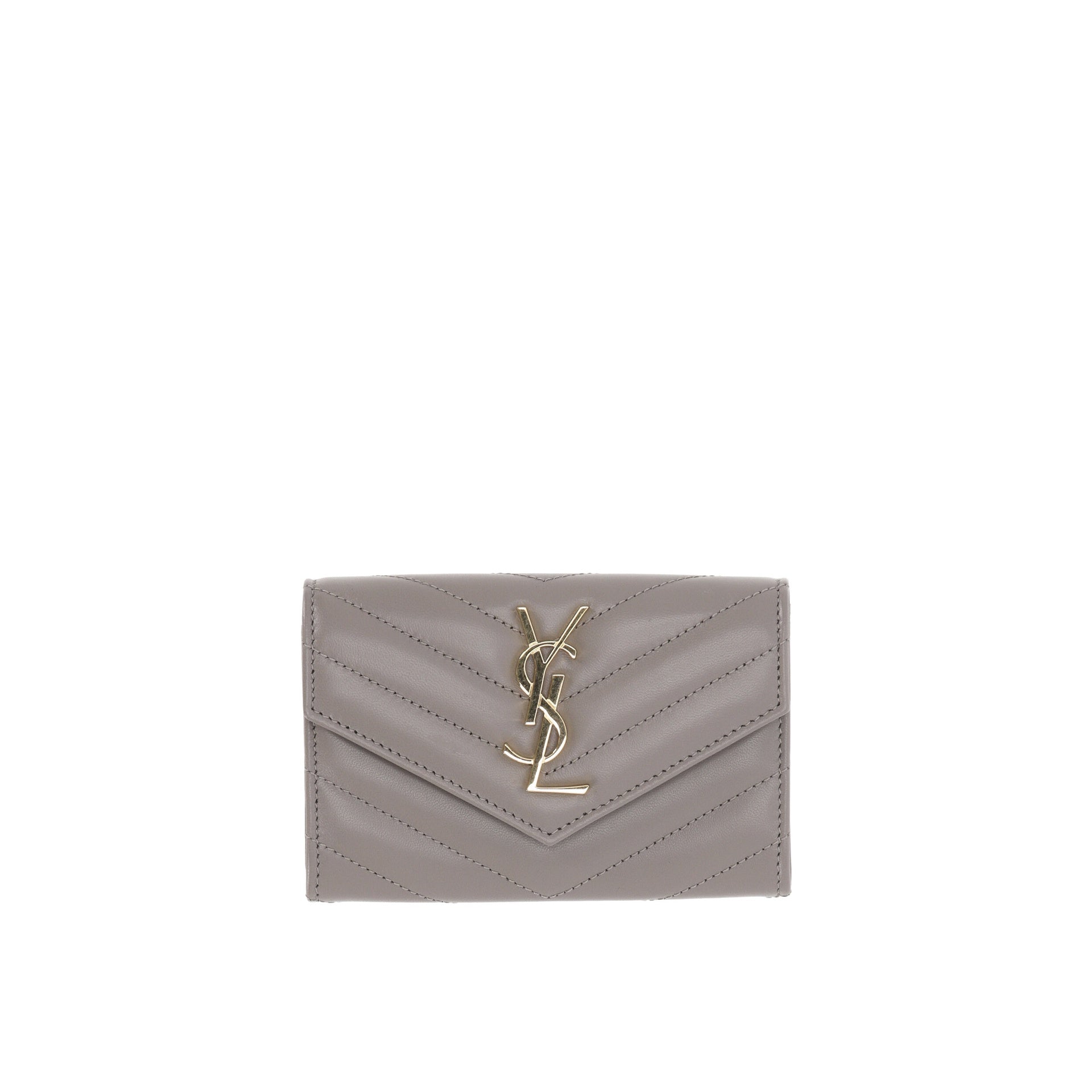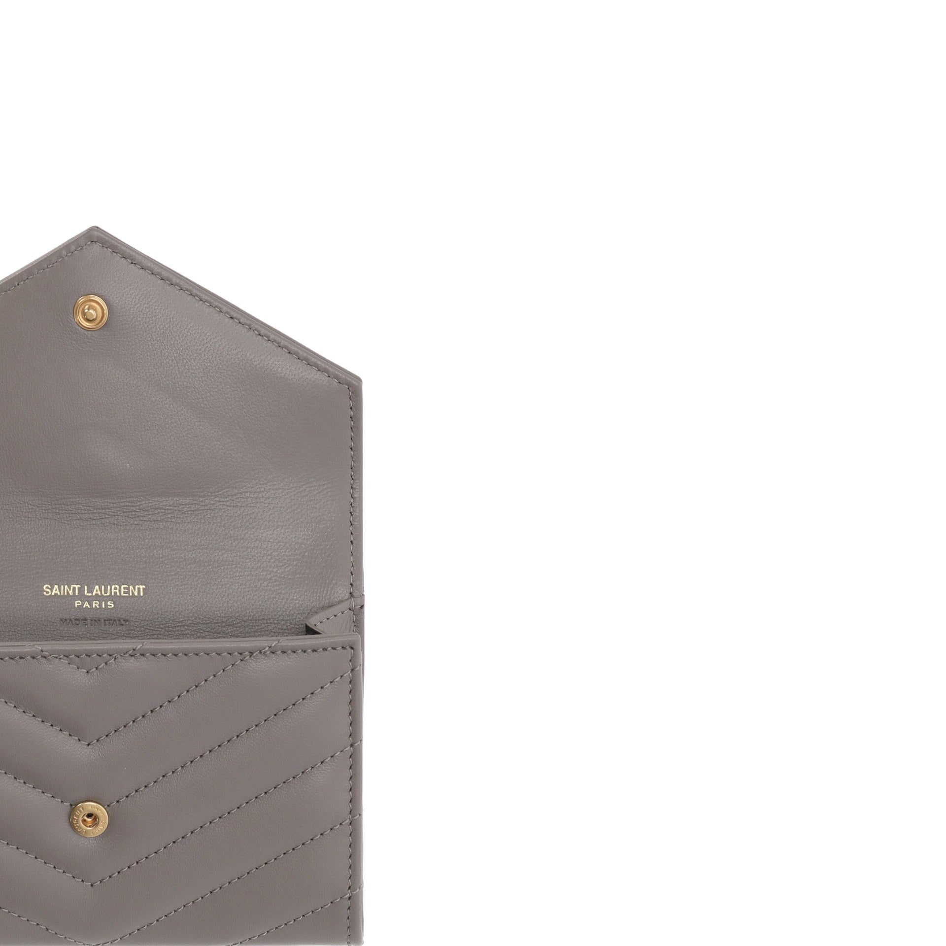 - Composizione: 100% in pelle di agnello - Effetto matelassé - lunghezza 13 cm - altezza 8 cm - larghezza 2,5 cm - imbottitura Chevron - Placca distintiva del logo YSL - lembo nella parte superiore con chiusura magnetica - Compartimento singolo - tasche del soffietto interno - Made in Italia -