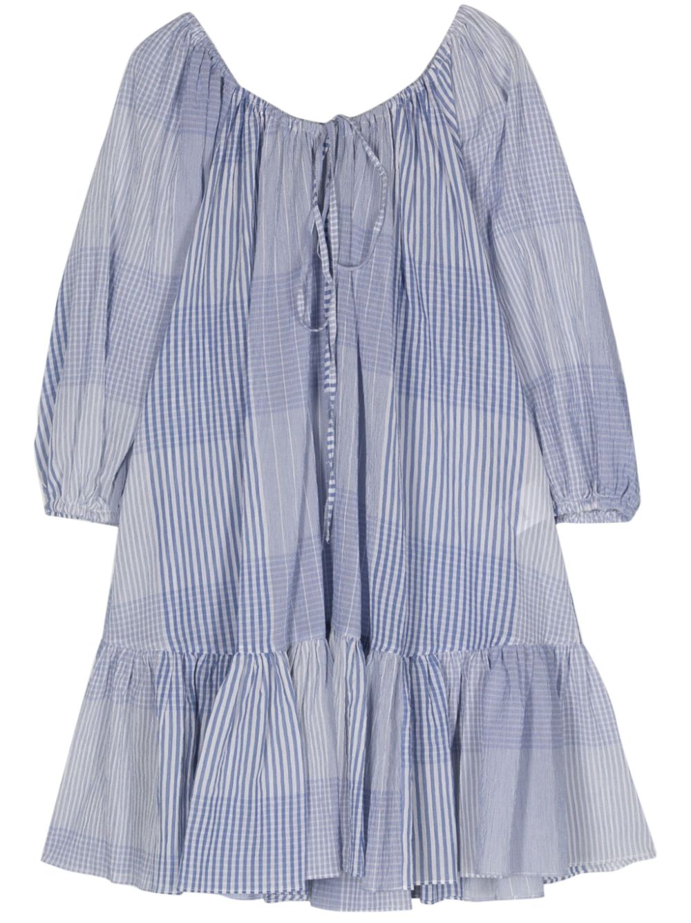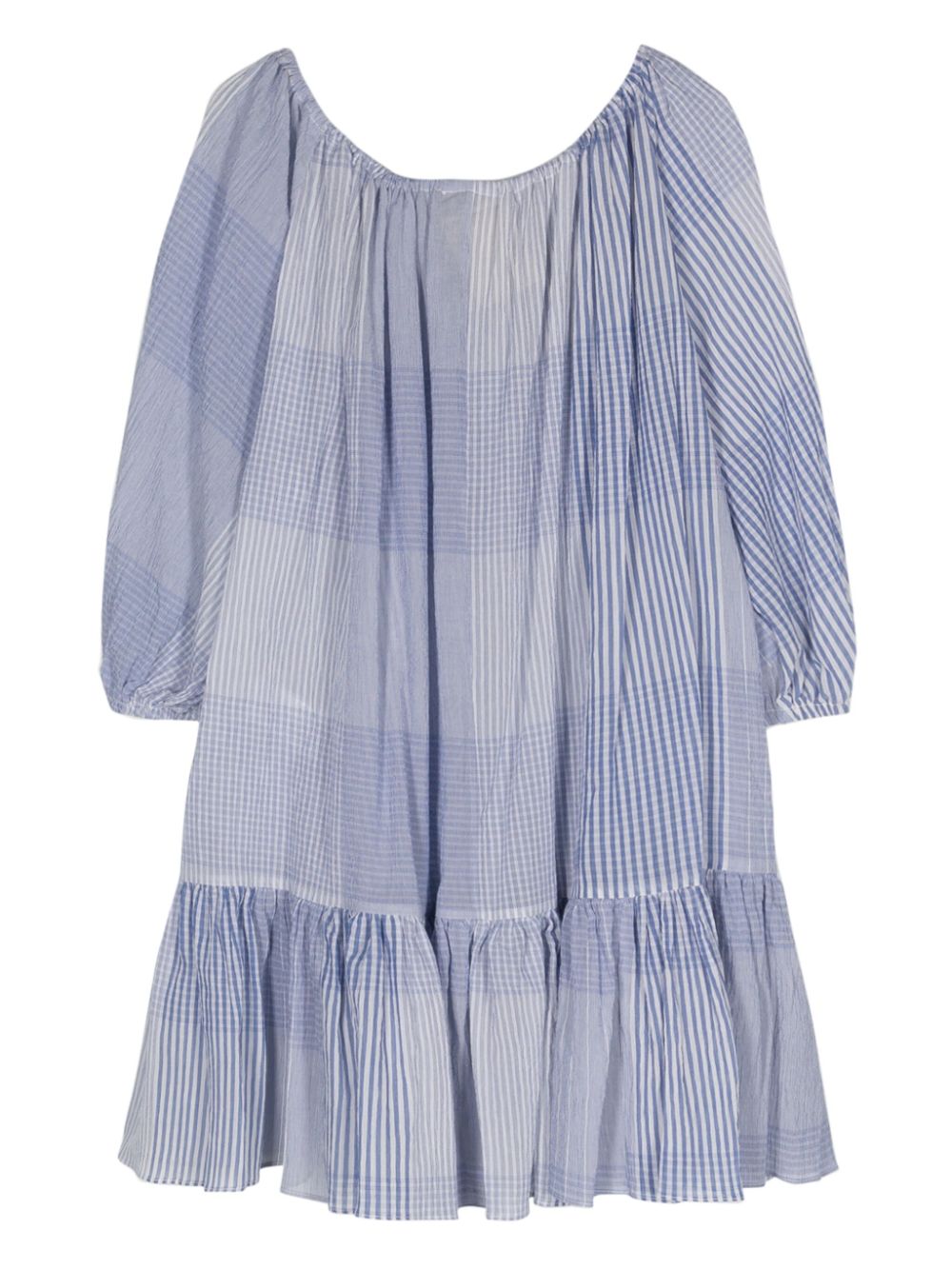 Modello di controllo del cotone blu/bianco Semi-sheer Dettagli arruffato Dettagli rotondo a split a tre quarti maniche a tre quarti polsini elastici