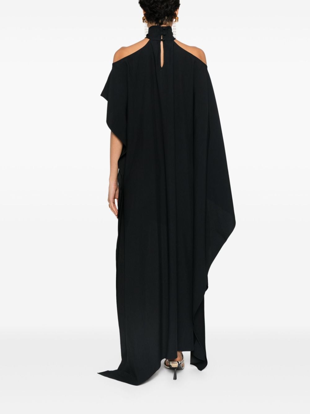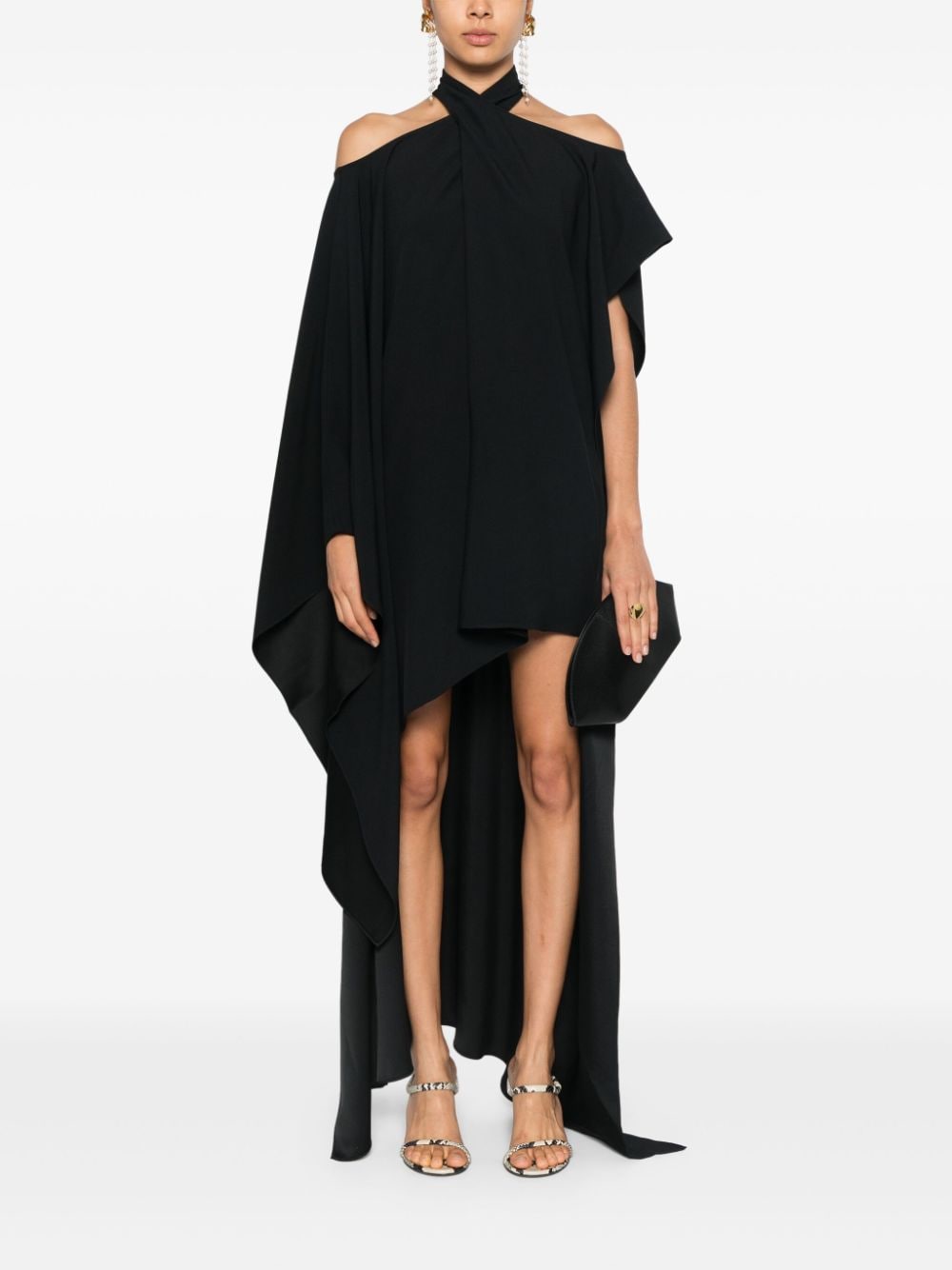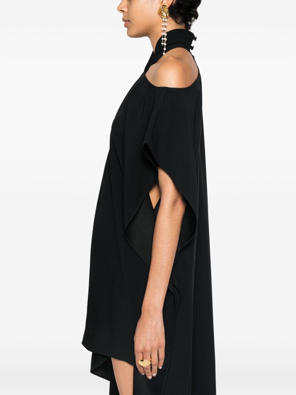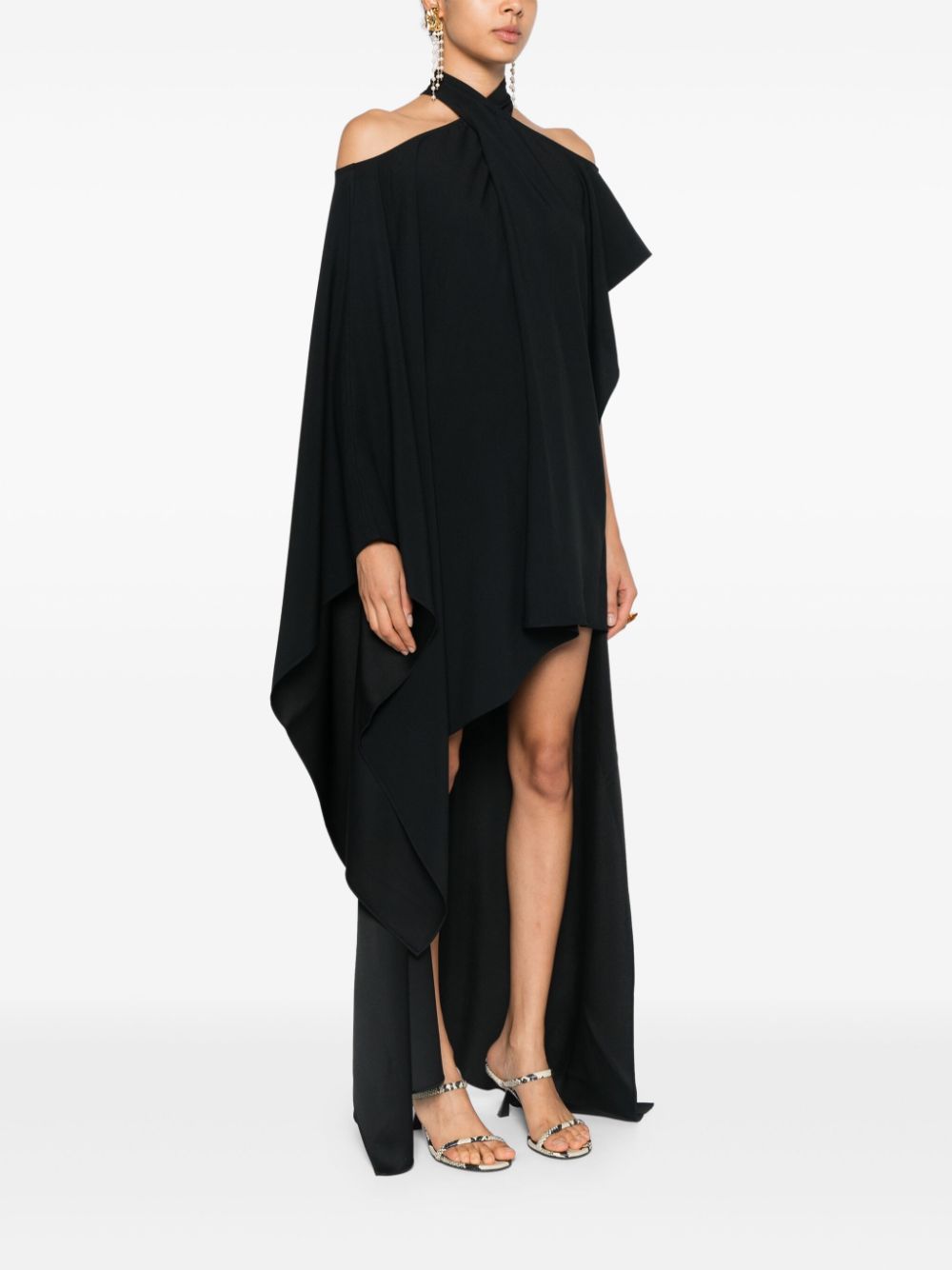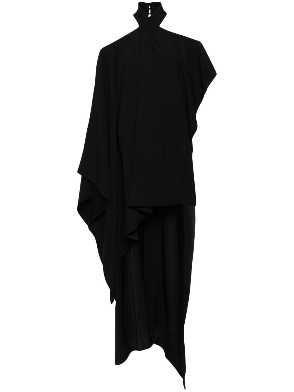 Texture di crepe nere design asimmetrico design drappeggiato Halterneck lacrima posteriore fissaggio di spalline a maniche lunghe a maniche lunghe.
