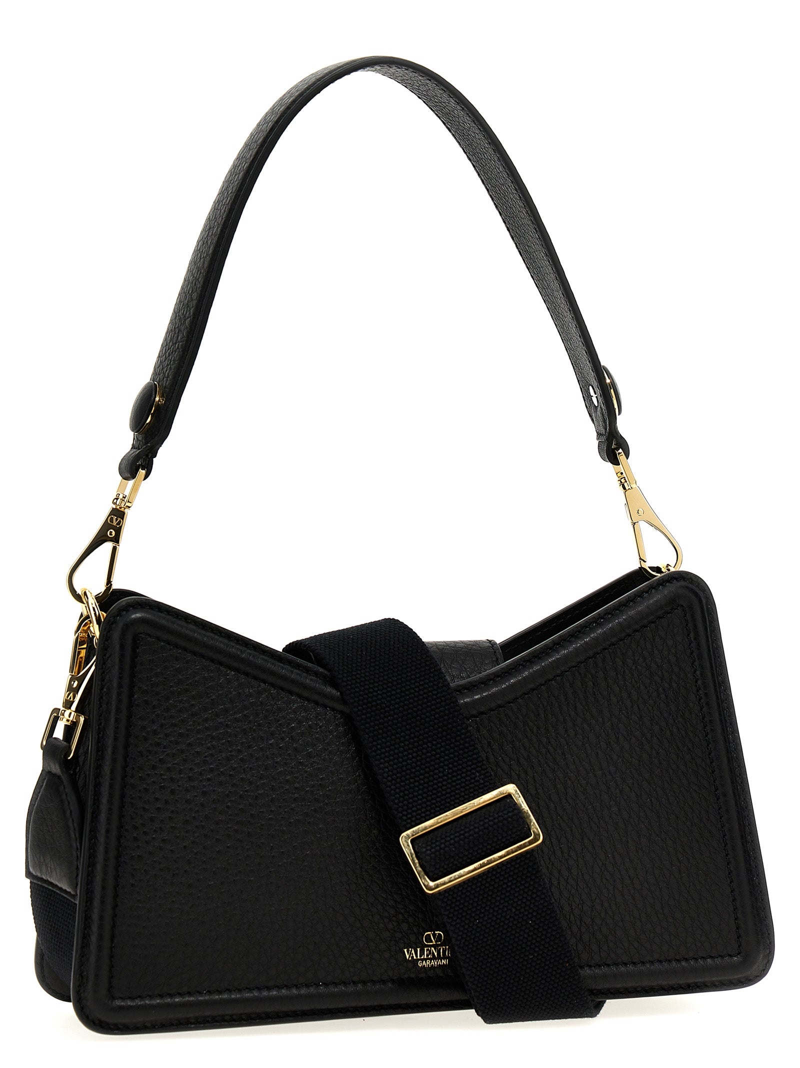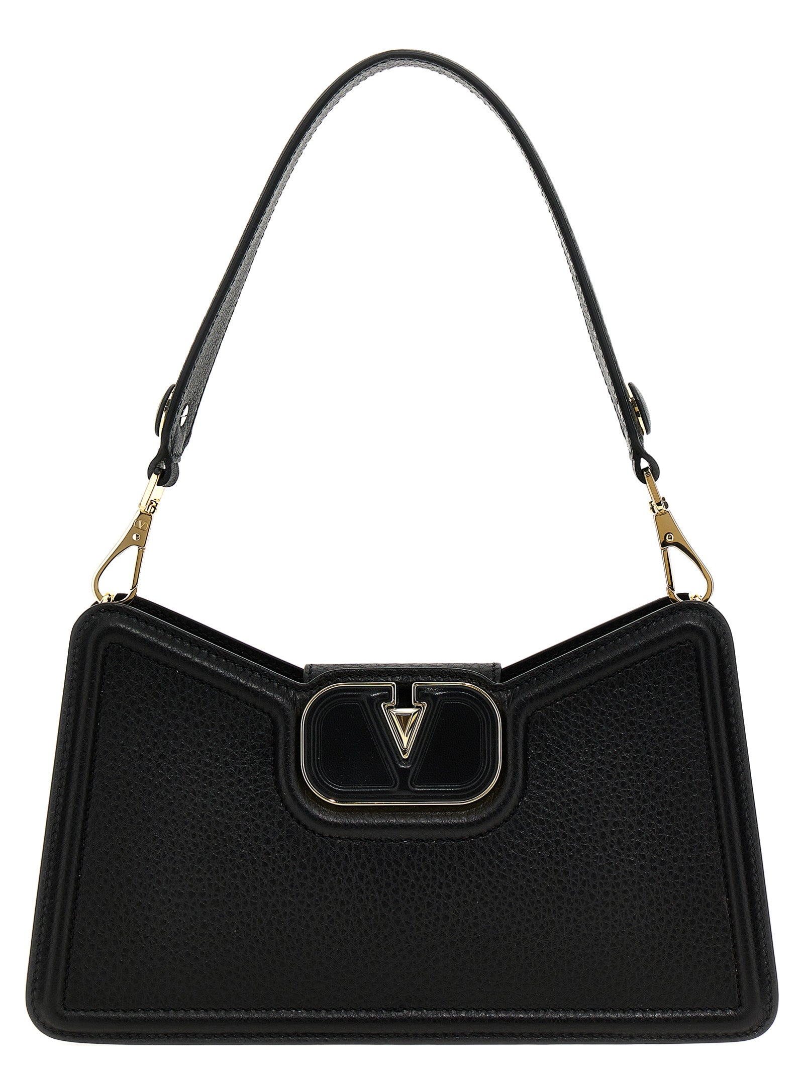 Valentino Garavani 'VLOGO' shoulder bag in grained calf leather with VLOGO Signature closure. Equipped with removable handle and adjustable and removable shoulder strap.