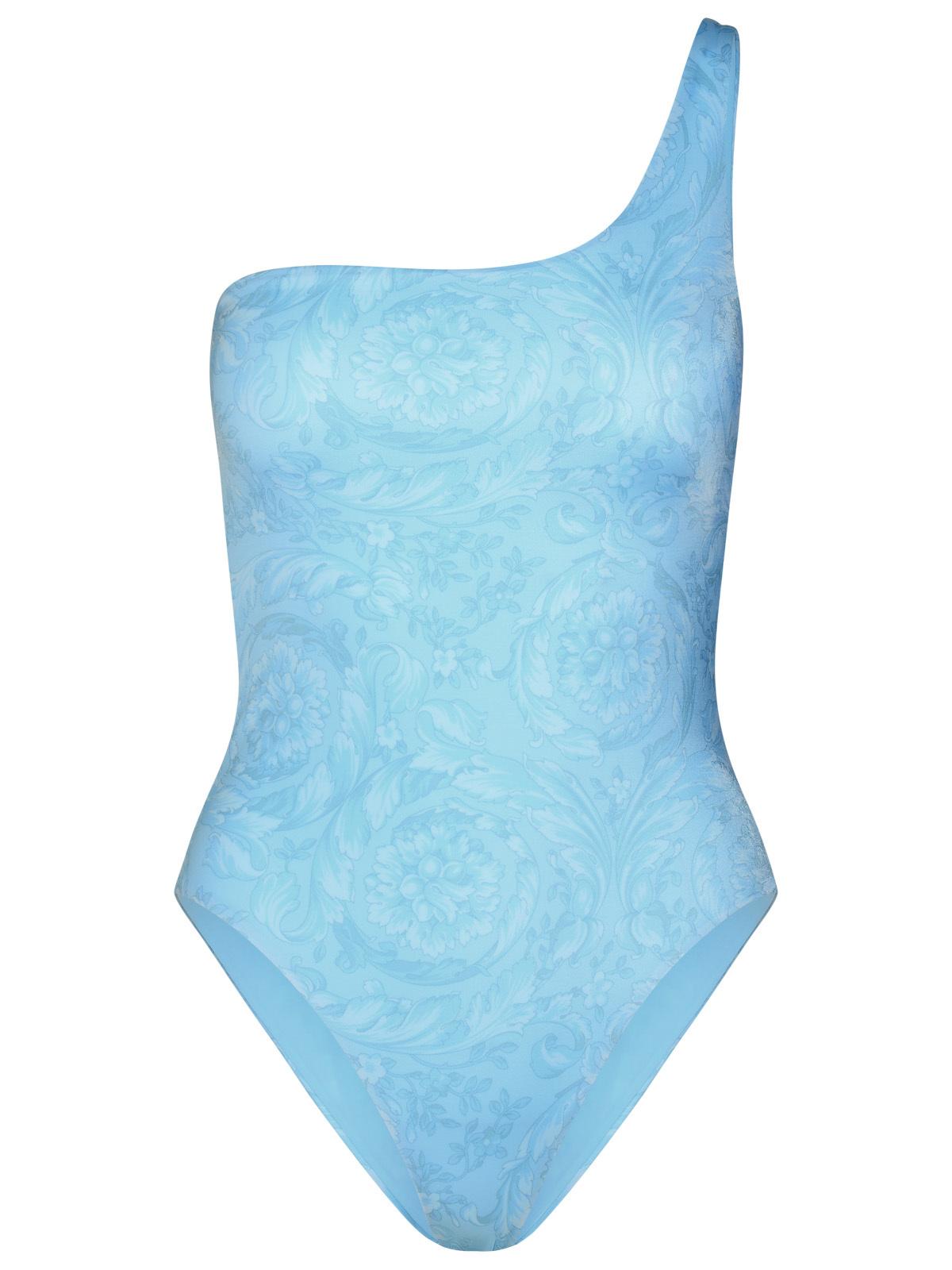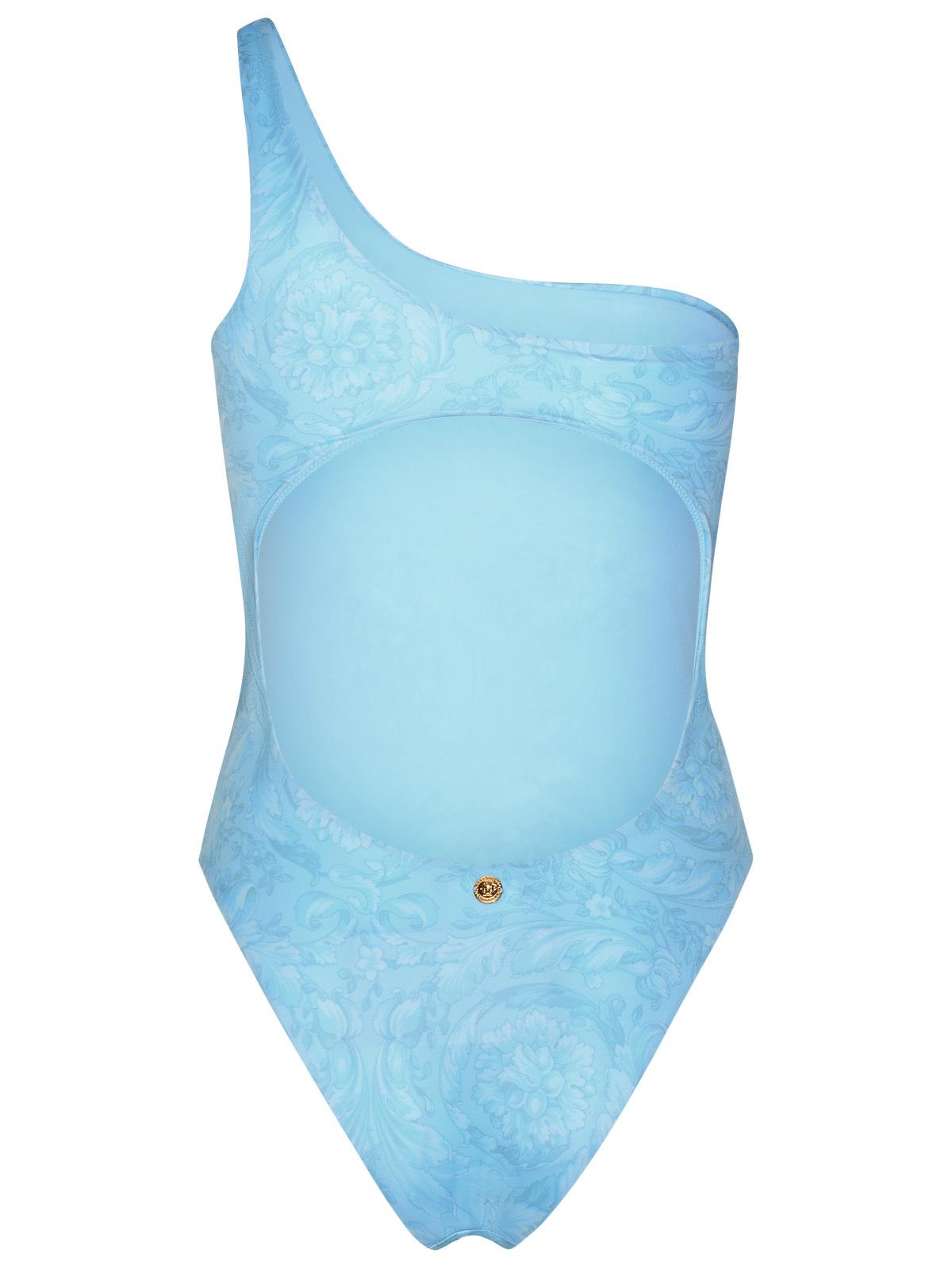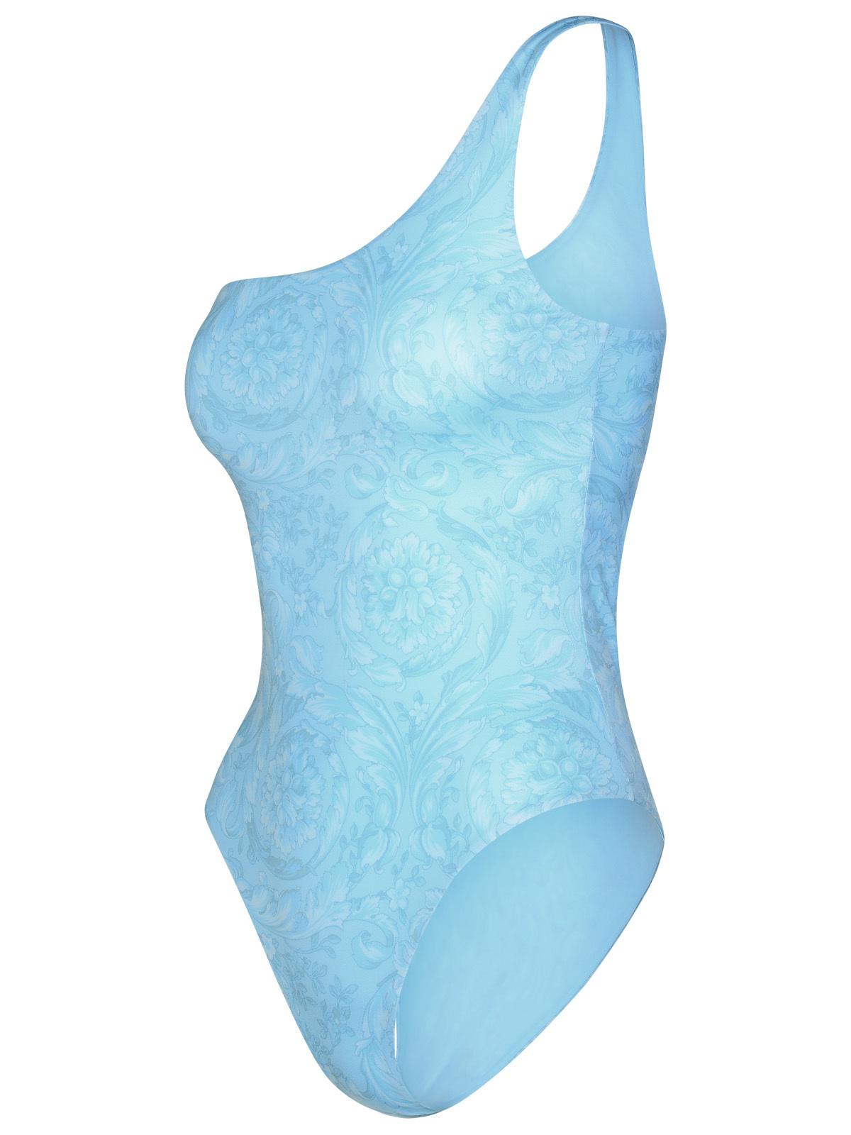 Versace asimmetrico "barocco" da bagno a un pezzo in miscela di poliestere azzurro