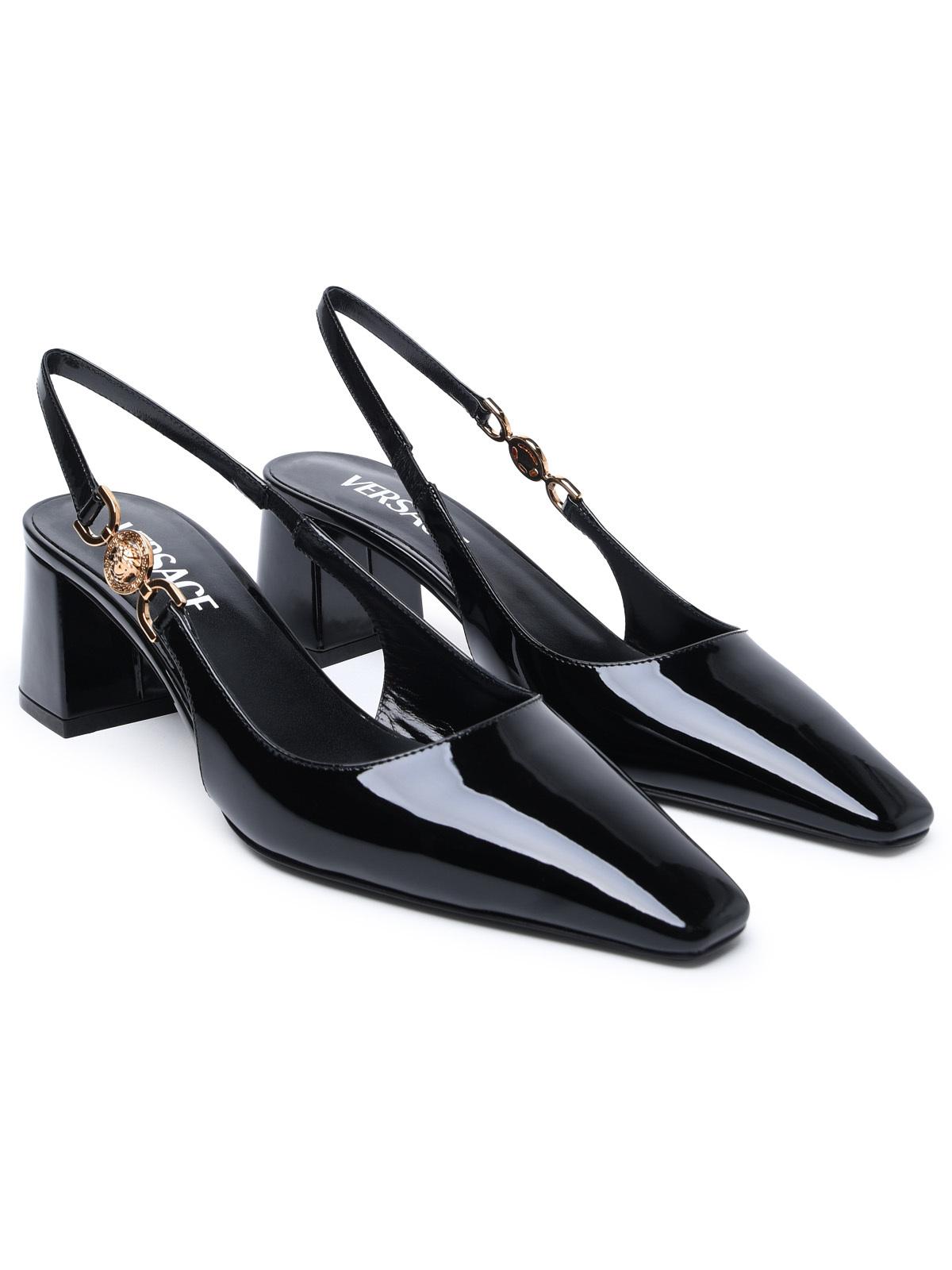 Punta quadrata, cinturino elastico con medaglia "Medusa", tallone quadrato \ Nheel Altezza 5,5 cm