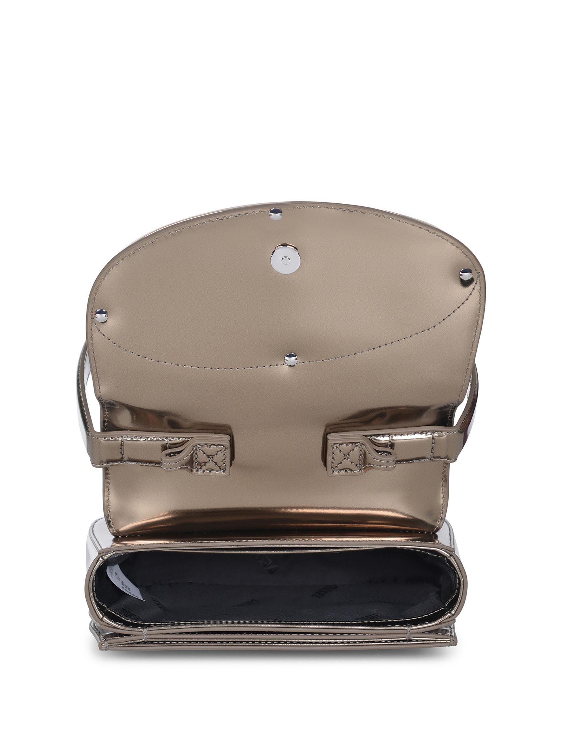 Borsa da diesel "1DR" realizzato in pelle a specchio in bronzo. Inserti in metallo d'argento. Maniglia superiore. Logo di smalto Maxi "Ovald" sul davanti. Chiusura con lembo magnetico. Interno foderato. Compartimento singolo. Tasca da parete. Trovalo regolabile e rimovibile. Può essere usato a mano, sulla spalla e sul cross-body. Dimensioni: altezza 13,5 cm, larghezza 7 cm, lunghezza 20,5 cm, maniglia 19 cm, cinghia di spalla 126 cm. 100% in pelle di mucca.