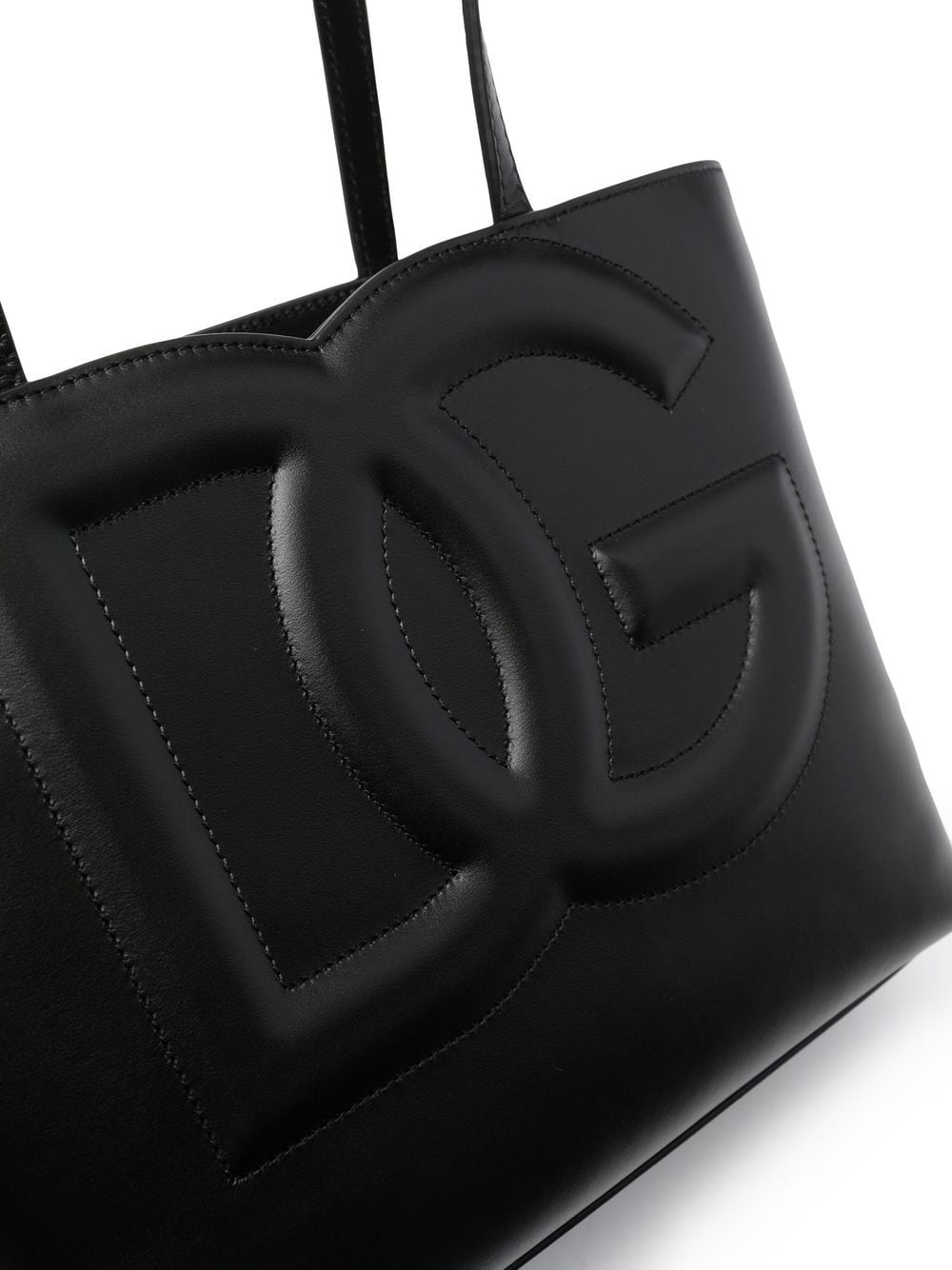 Piccola borsa DG logo di Dolce & Gabbana con il logo nero, in pelle di vitello, in rilievo, due maniglie lunghe, apertura, scompartimento principale e tasca interna a fusteramento con zip. Questo pezzo è completo con una sacca per polvere protettiva ..