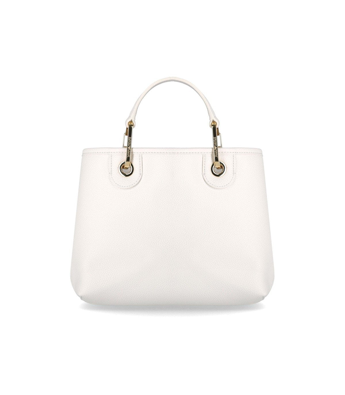 Myea Handbag di Emporio Armani realizzato in finta pelle bianca. Contrasto di interni, dotato di un sacchetto rimovibile con zip. Dettagli in metallo dorato, maniglie superiori e spalla in tessuto logod, regolabili e rimovibili. Chiusura magnetica, misura 26x20x10 cm. Composizione: poliuretano al 100%.