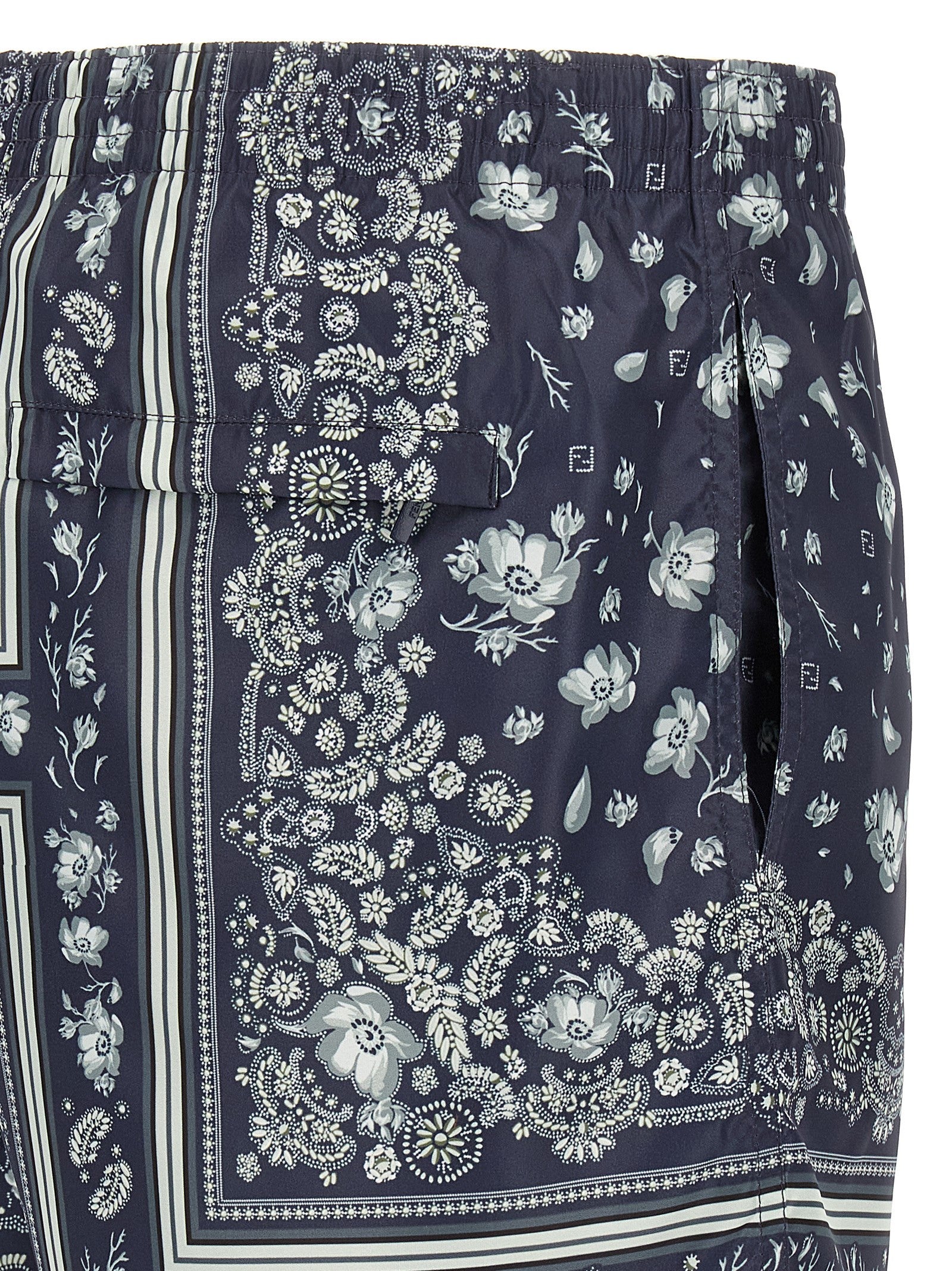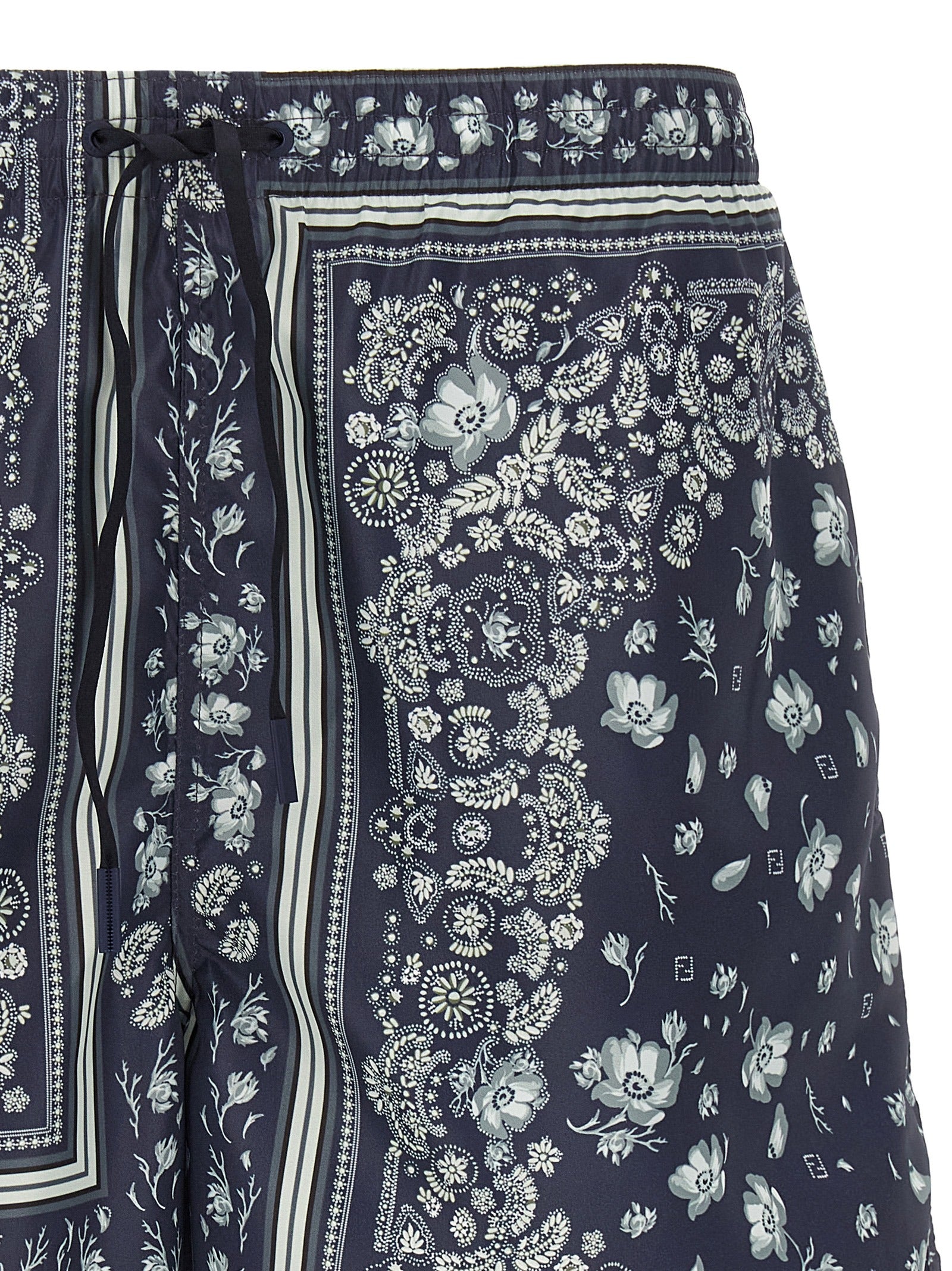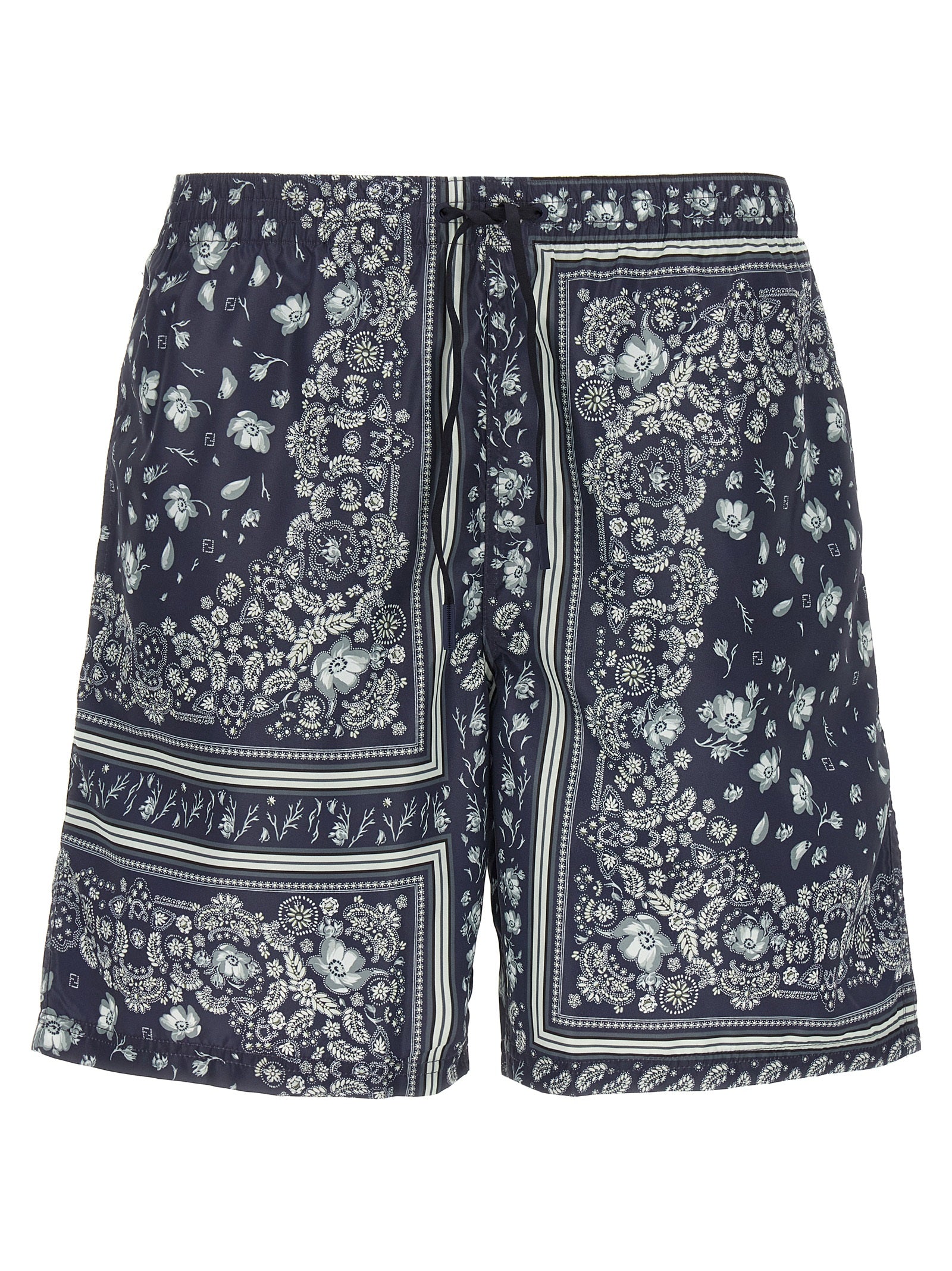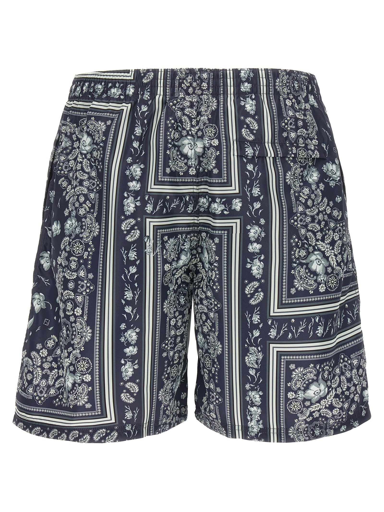 Costume da bagno in nylon a stampa "corallo bandana", cintura elastica regolabile, tasche, brief in mesh interno.