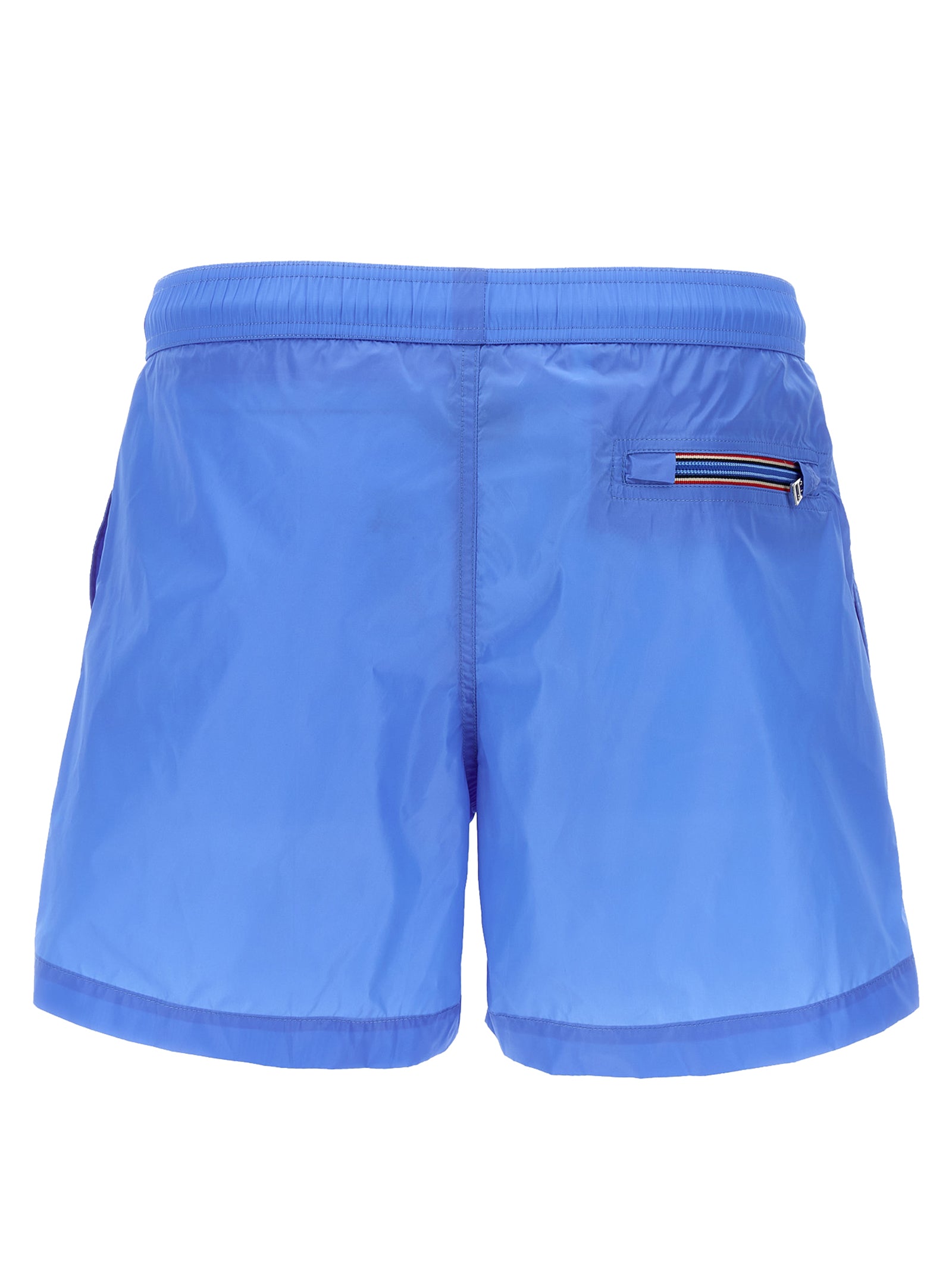 Costume da bagno in nylon tecnico, coulisse elastico e regolabile in vita, patch di logo anteriore, tasche, brief in mesh interno.