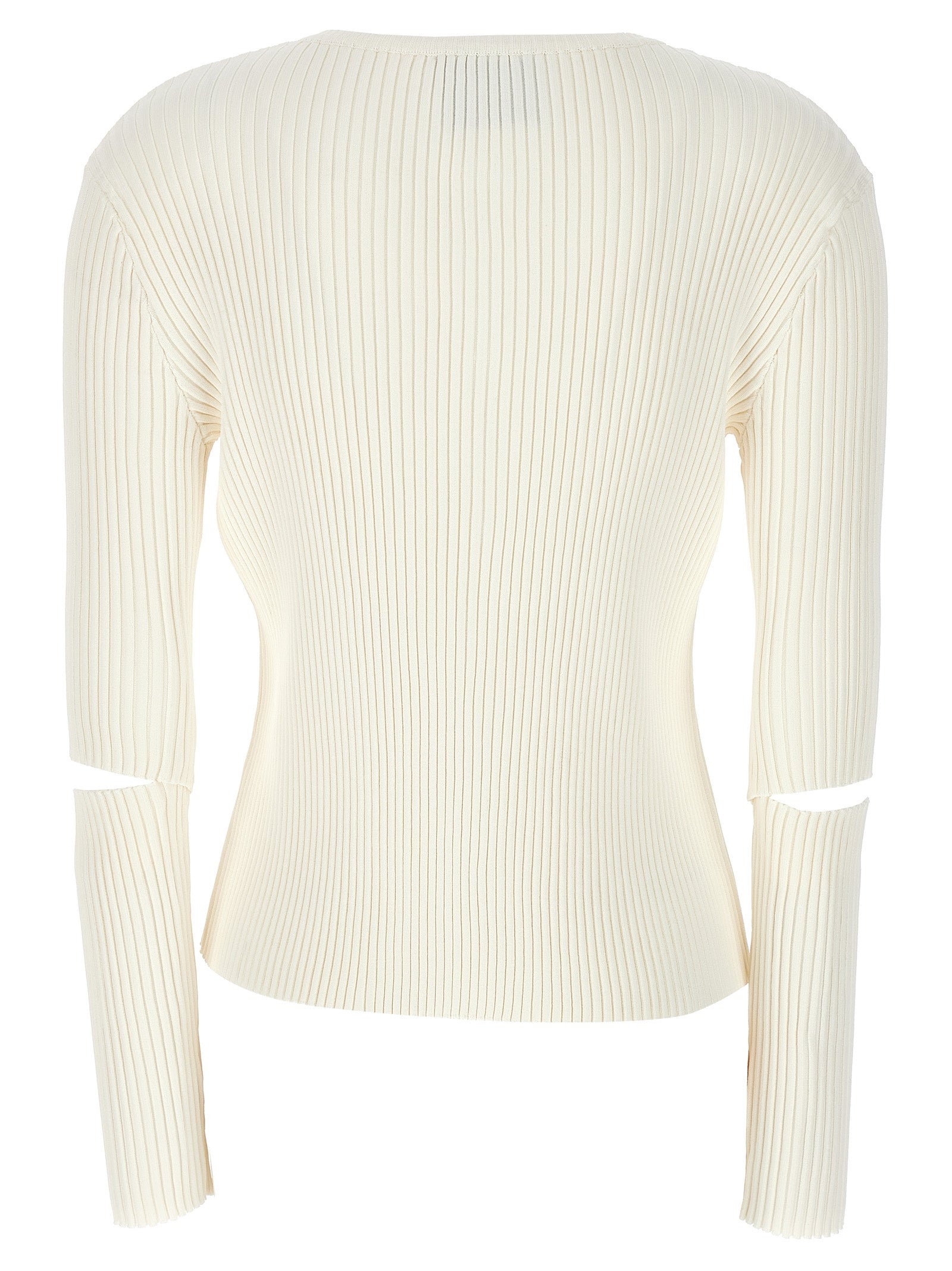 Viscosio a costine Cardigan con miscela con collo dell'equipaggio, maniche lunghe con dettagli ritagliati, chiusura dei pulsanti.